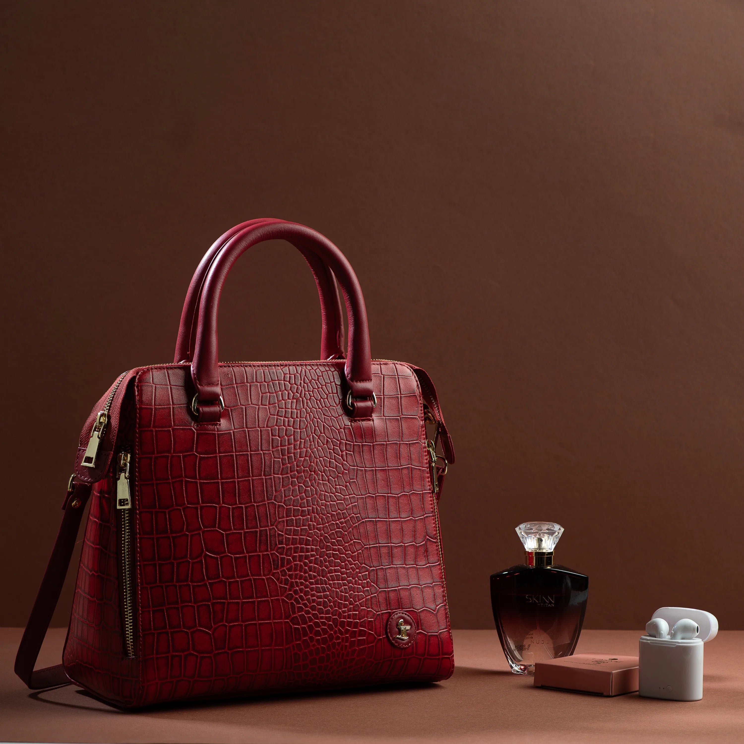 This satchel hand bag is a paragon of functional elegance and sophistication. It is crafted with fine material and designed exquisitely to exude a captivating charm for onlookers. The polished hardware and sleek structure make it appealing and stand out, emitting an outer croc leather luxury. Your essentials are meant to remain in place within an interior that is also lined lavishly.