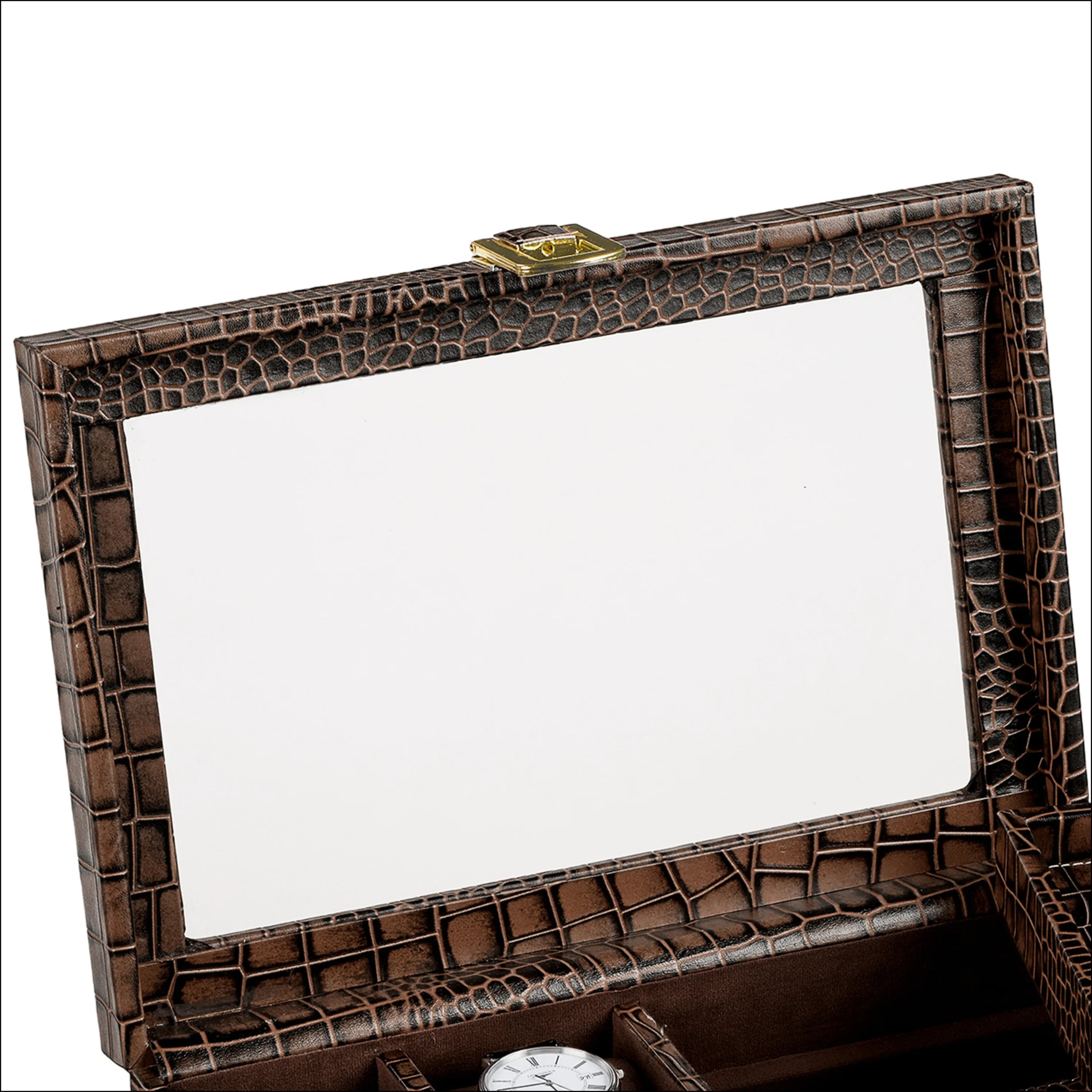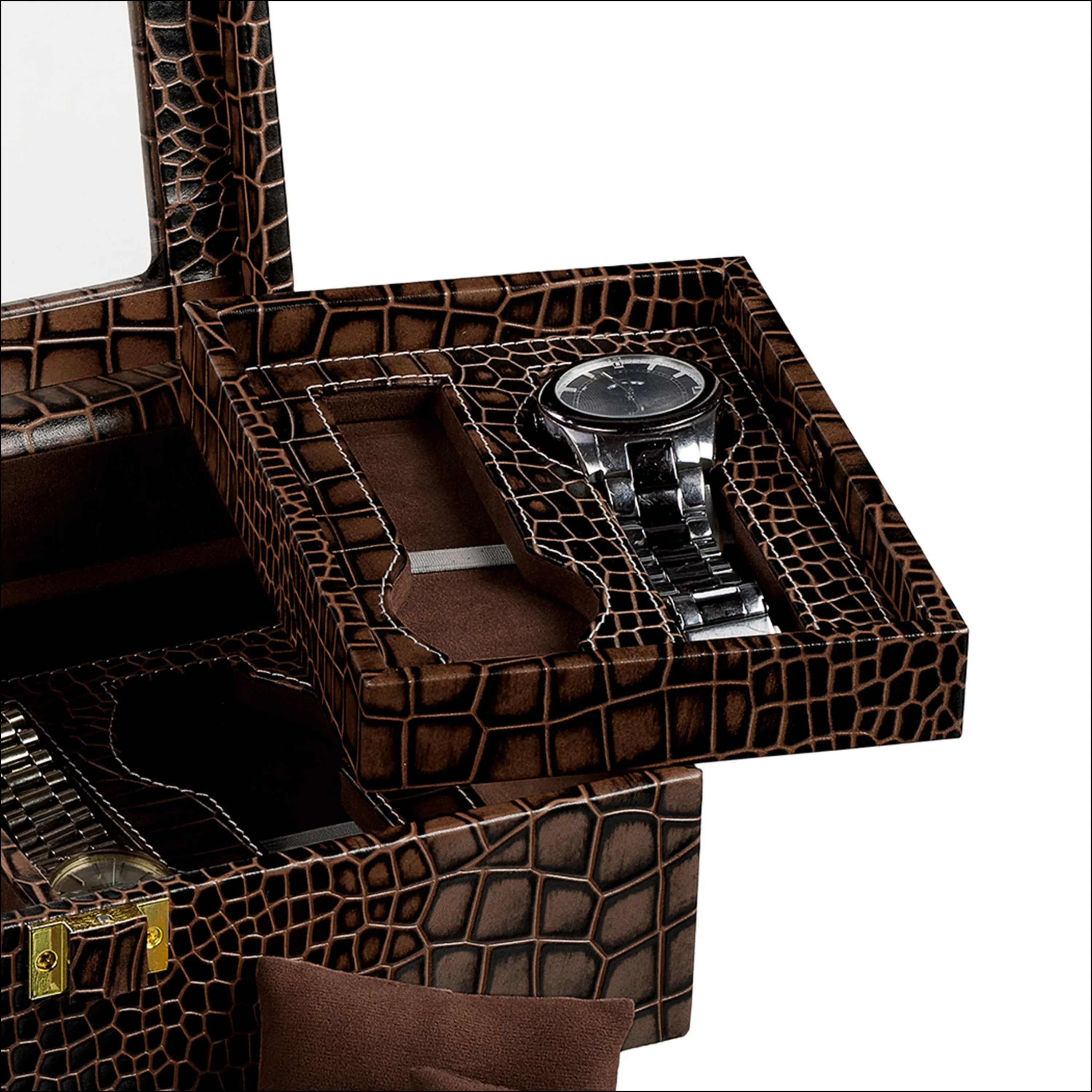 Galio Premium Watch Box 8 Watches | Genuine Leather Watch Storage Case for Men | Color: Croco Brown