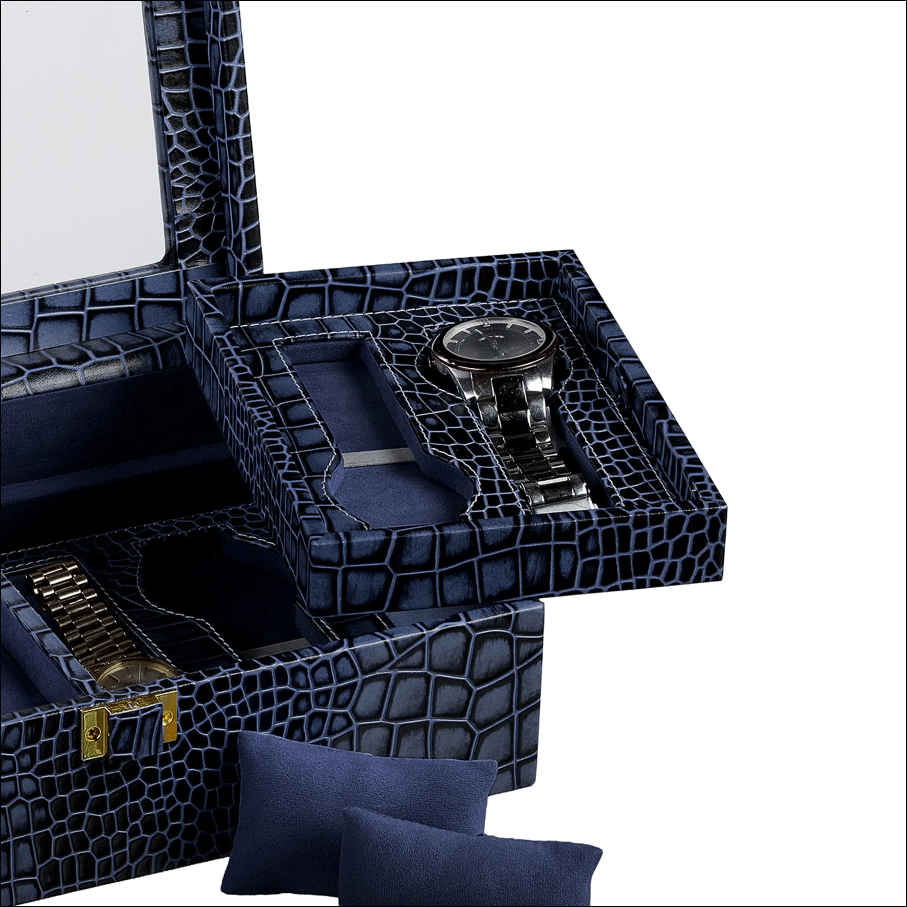 Galio Premium Watch Box 8 Watches | Genuine Leather Watch Storage Case for Men | Color: Croco Blue