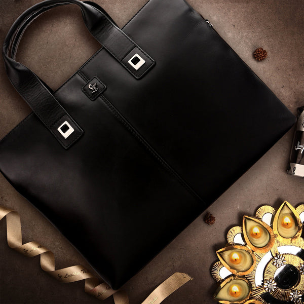 Jacob | Leather Briefcase For Men | 100% Genuine Leather | For Office Use | Colour: Black