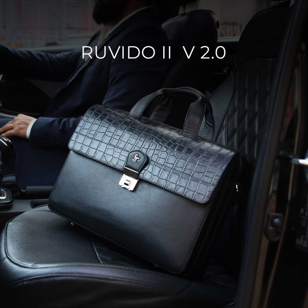 Ruvido II V 2.0 Luxury Leather Laptop and Office Bag for Men, designed to fit 15-inch laptops, offering a stylish and durable storage solution for professional use.