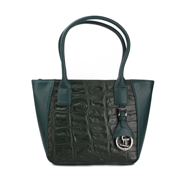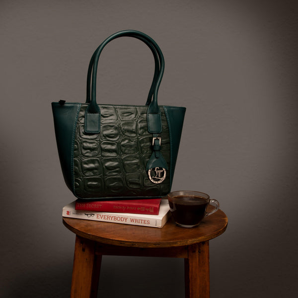 Elvis Tote | Leather Tote Bag For Women | Croco Embossed Genuine Leather | Shoulder Bag | With Trolley Strap | Color: Green