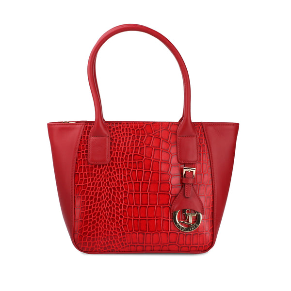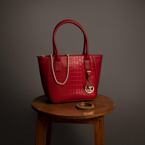 Great Dane Elvis Tote | Leather Tote Bag For Women | Croco Embossed Genuine Leather | Color: Black