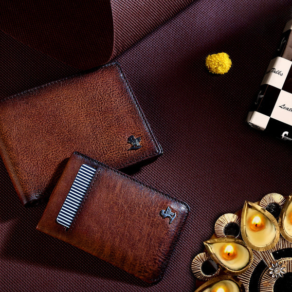 Set of II Gift Set Men's Wallet fab IV& Prime Key Pouch - Premium Leather Accessories | Color- Brown Leather Talks
