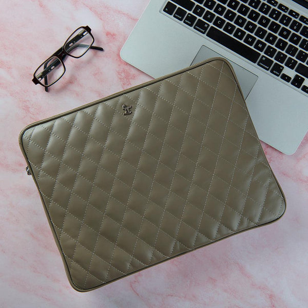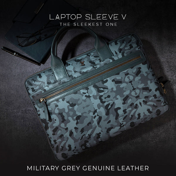 Laptop Sleeve V | Leather Laptop Sleeve | Lifetime Service Warranty | 100% Genuine Leather | Color: Grey