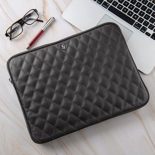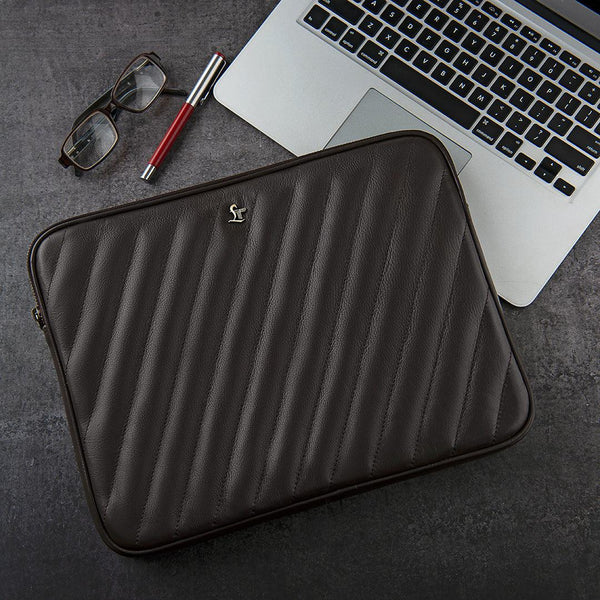 Laptop Sleeve V | 100% Genuine Leather | Color : Black