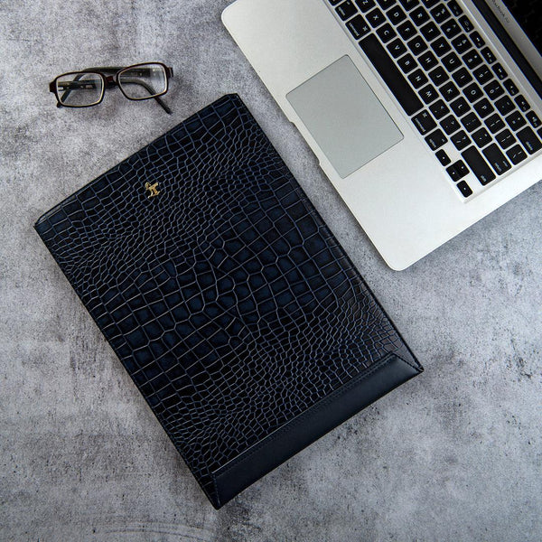 Laptop Sleeve V | Leather Laptop Sleeve | Lifetime Service Warranty | 100% Genuine Leather | Color: Blue