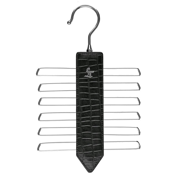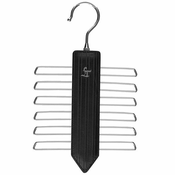 Leather Wooden Tie Hanger | 100% Genuine Leather | Color: Chatai Black & Chatai Cherry