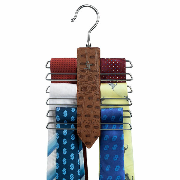 Leather Wooden Tie Hanger | 100% Genuine Leather | Color: Tan & Cherry