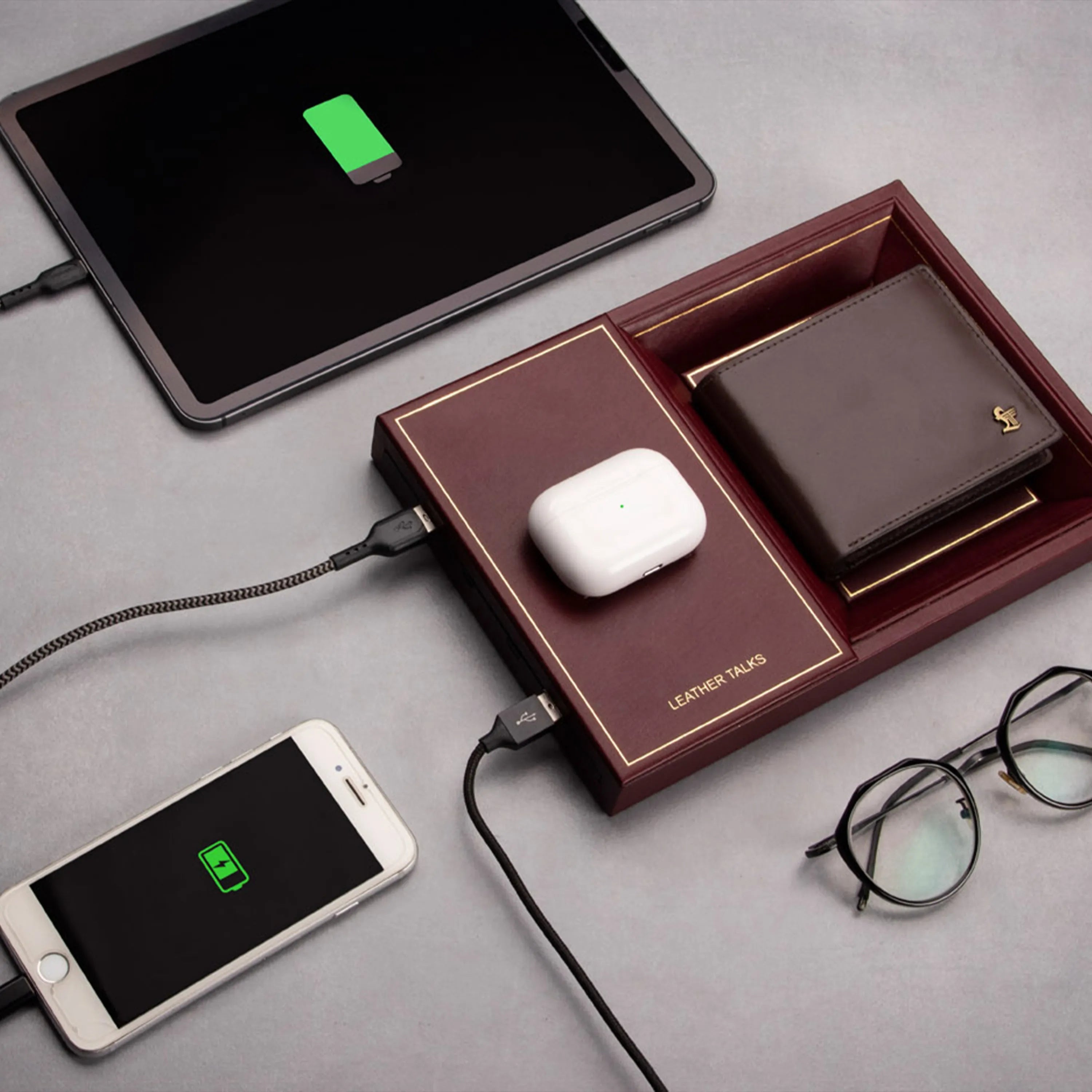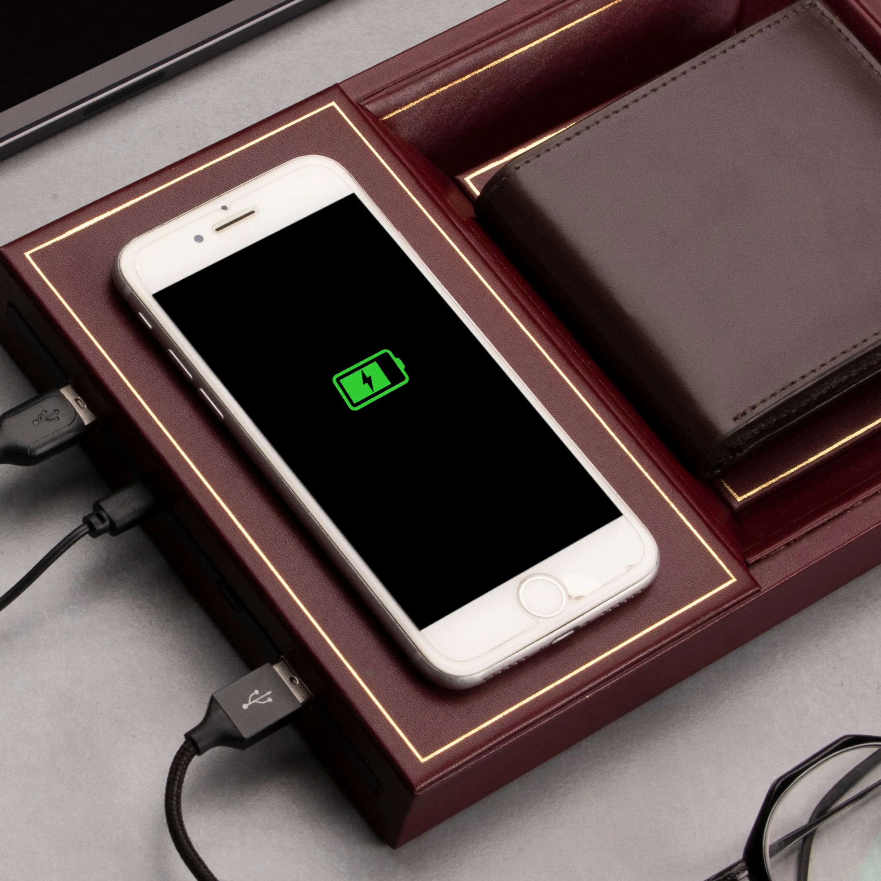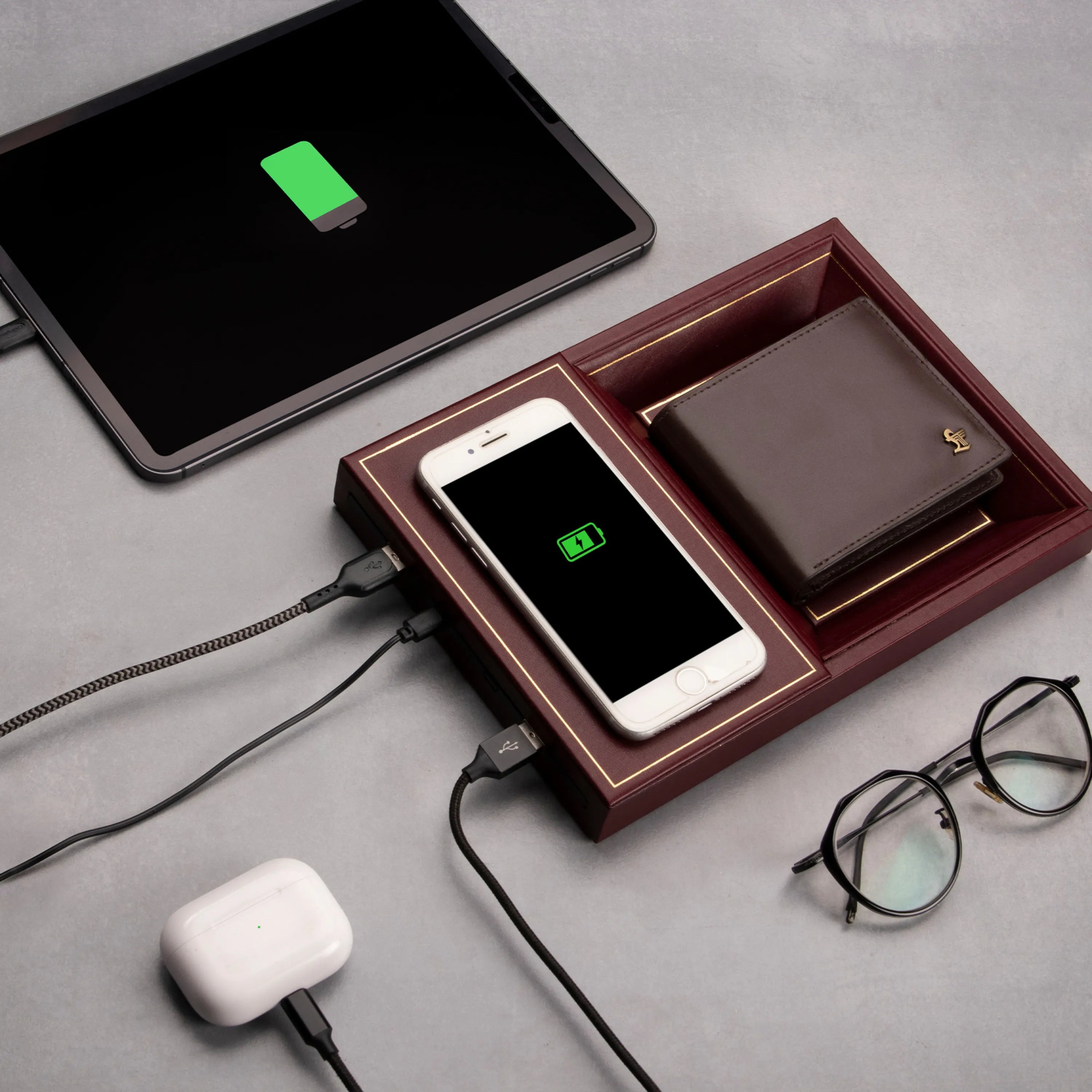 LT Smart Valet Tray 2.0 with wireless charging and power bank 10000 mAh | Color: Cherry