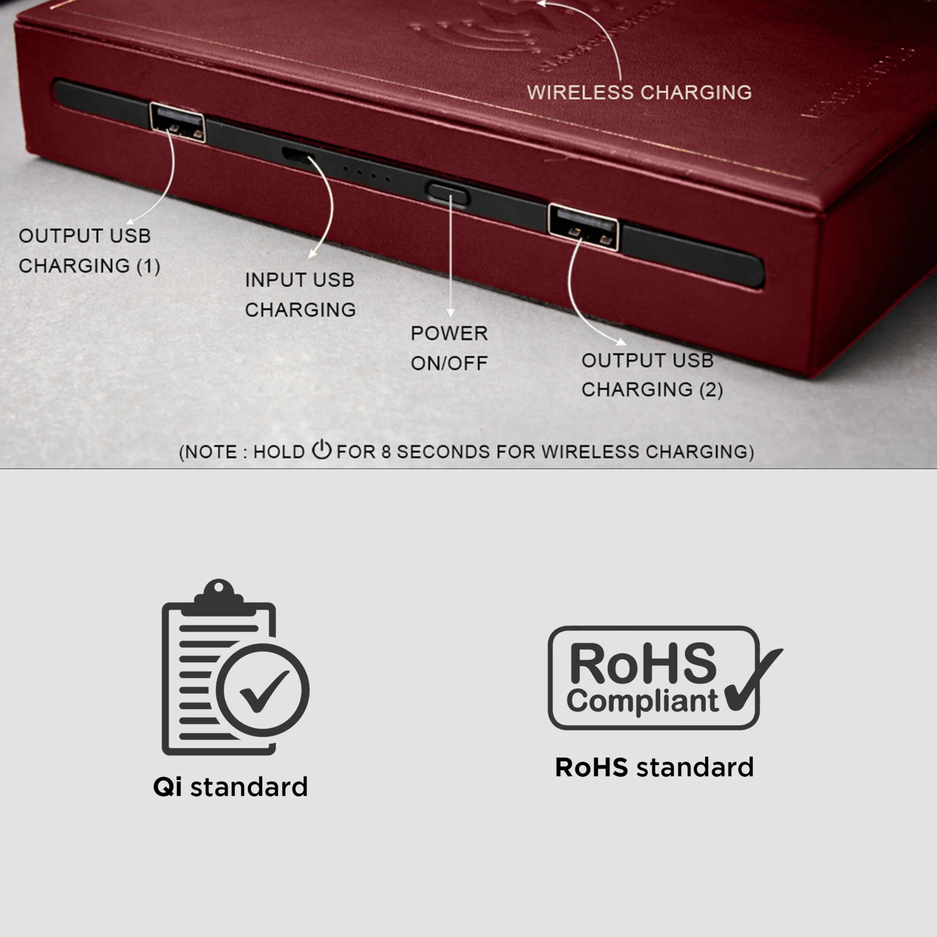 - Safety: Rohs standard, qi standard.