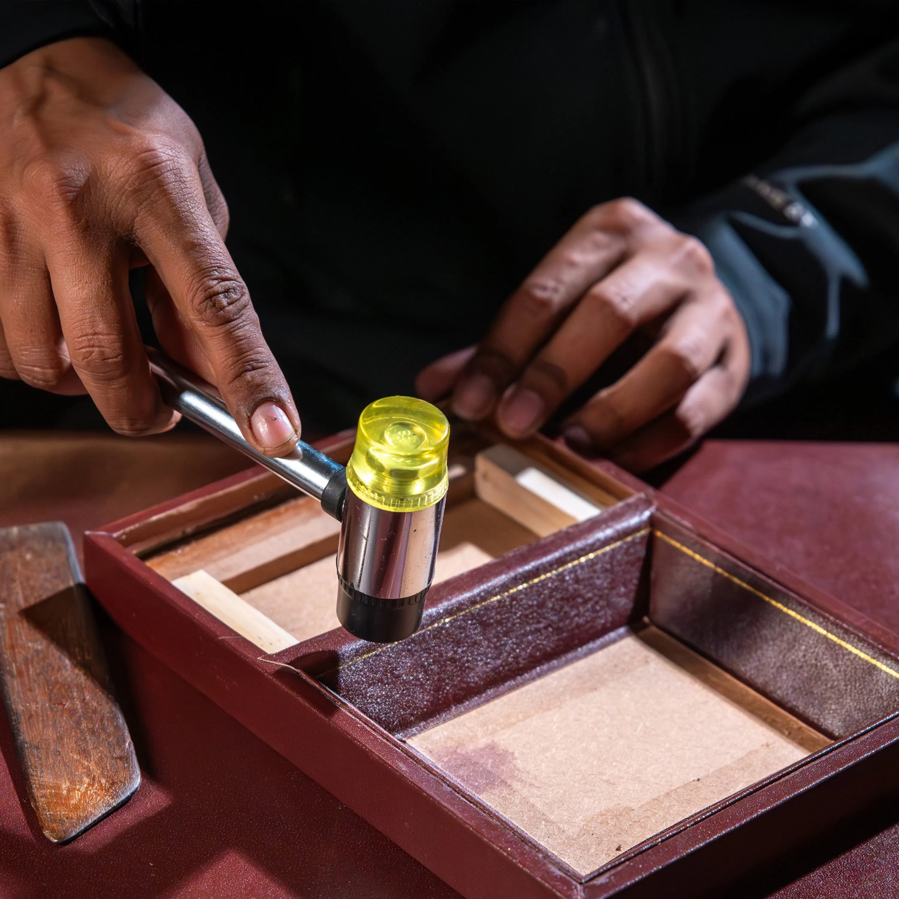 - Don’t spill!- Protect the leather from prolonged exposure to water. If it gets wet, dry it slowly at room temperature and avoid direct heat sources.
