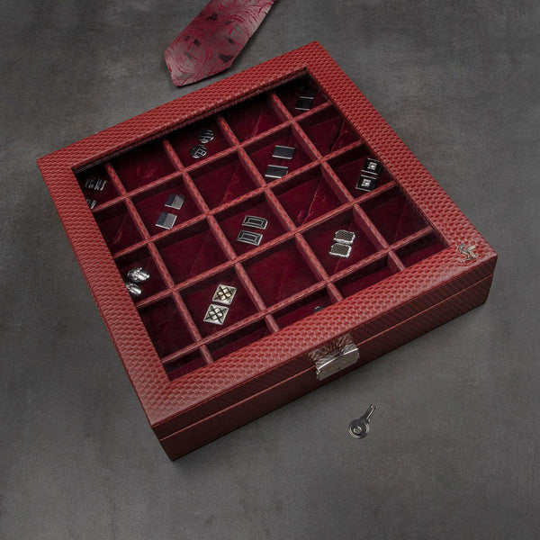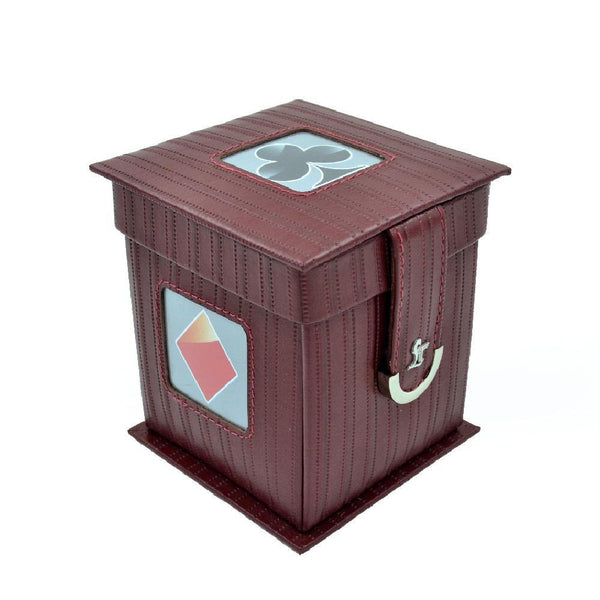 Luxury Genuine Leather Poker Box | Premium Poker Chip & Card Set | Color: Cherry