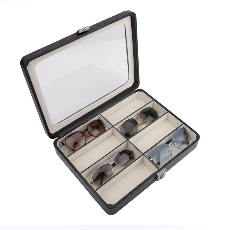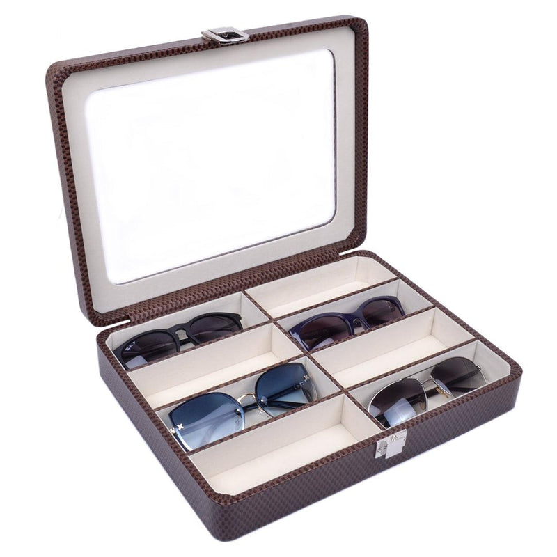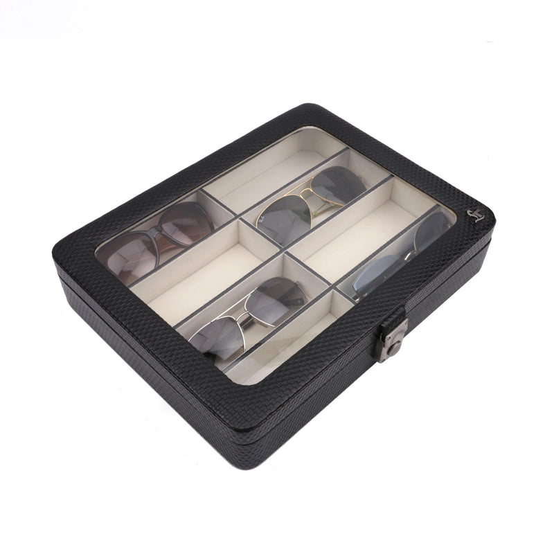 Introducing our Luxury Genuine Leather Multiple Glasses and Sunglasses Storage Organizer Box Holder, a must-have accessory for all eyewear accessory fashion enthusiasts. Crafted with the finest quality Genuine Leather, this organizer box exudes elegance and sophistication. The box features eight individual compartments with soft velvet lining, preventing any scratches or damage to your valuable eyewear. Moreover, the secure lock ensures that your glasses are safely stored and protected from dust, dirt, and accidental falls.. The elegant design and smooth texture of the leather make it a perfect addition to any home or office decor.