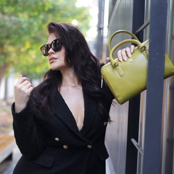 Window Handbag for Women | Satchel Handbags | Genuine Leather Ladies Bag | Color: Lemon Green