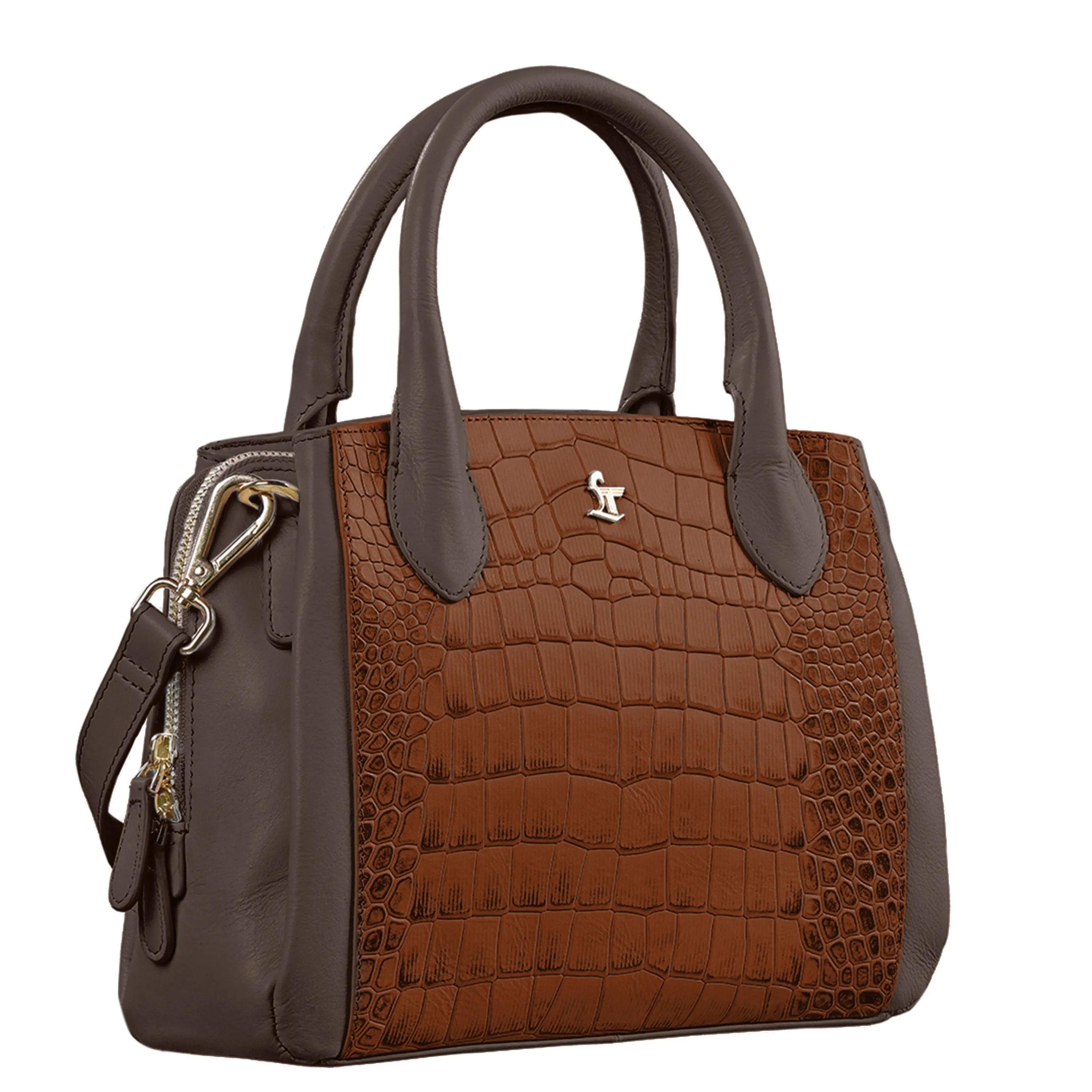 Clara Jr. Leather Handbag for Women | Genuine Brown Croco Embossed Sling Bag | Color: Brown