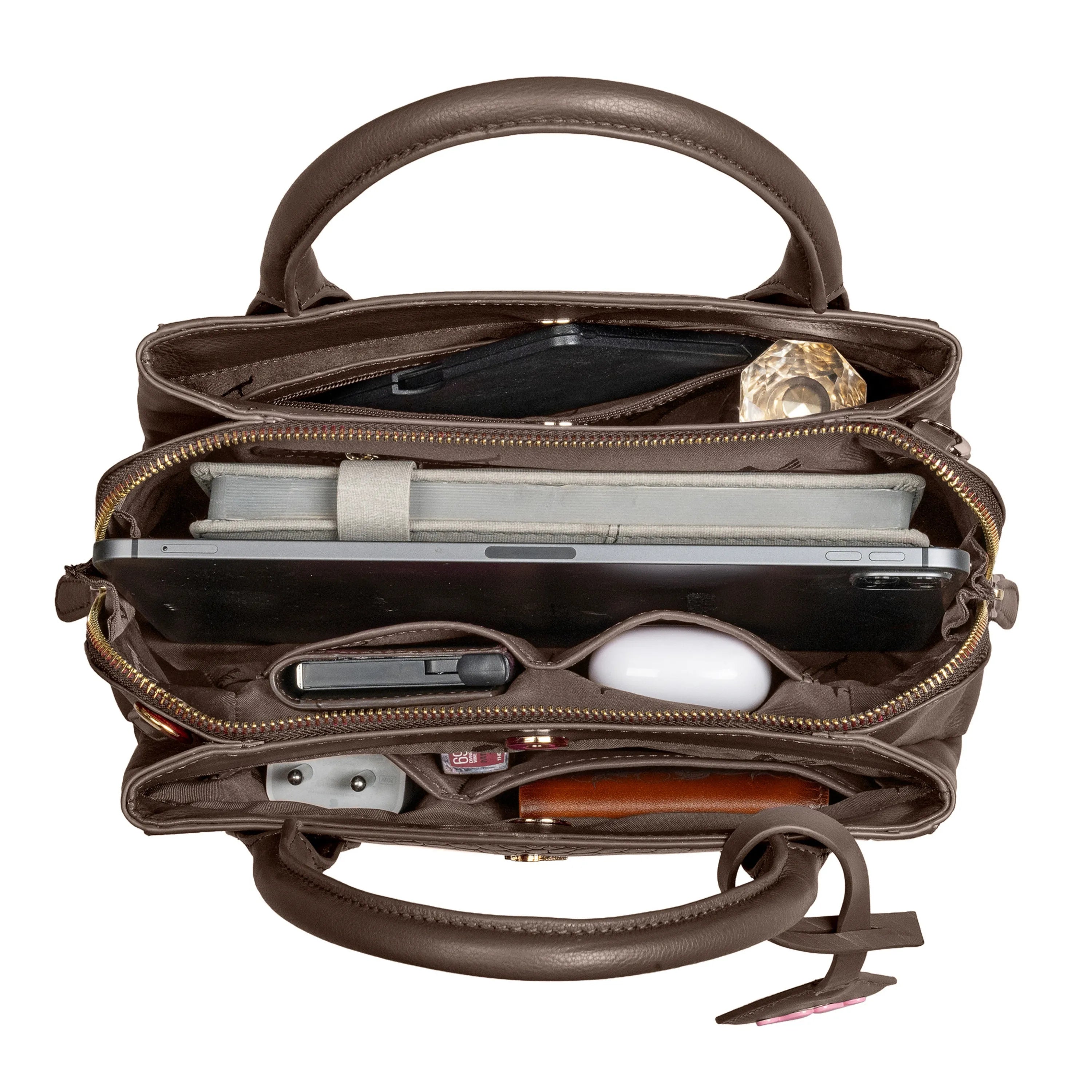 With impeccable craftsmanship and a refined design, the Clara Jr. Handbag is not just a bag, but a statement piece. Its smart compartments and chic silhouette ensure your essentials stay organized and easily accessible, while the versatile carrying options allow you to transition smoothly from day to night.