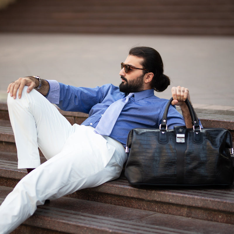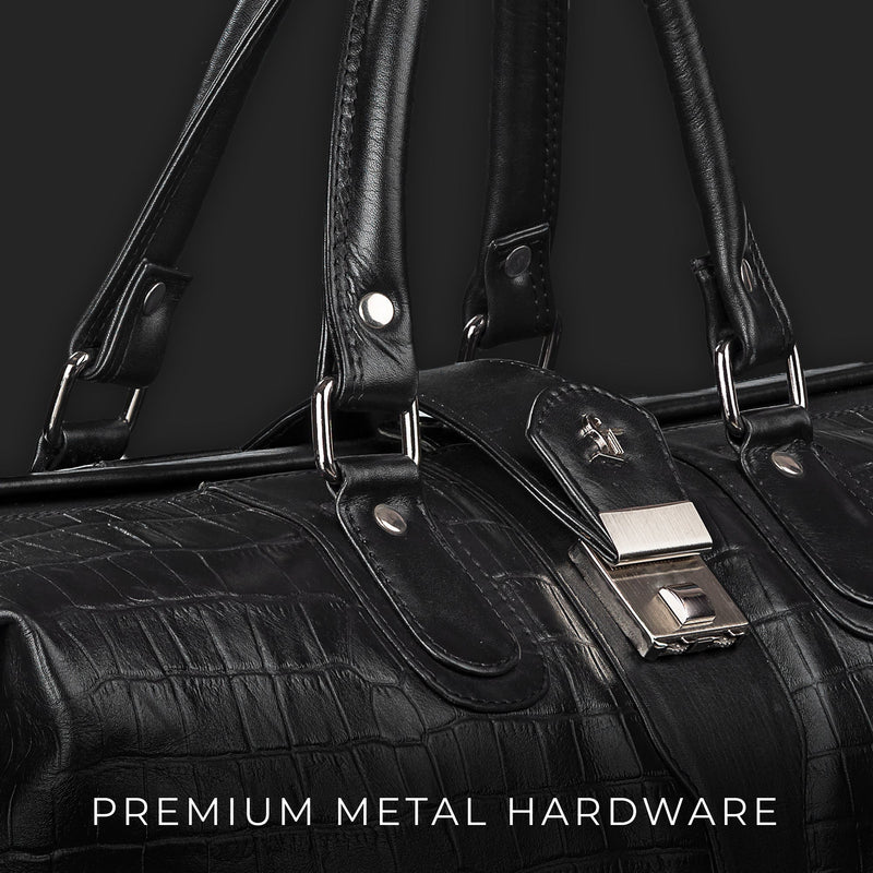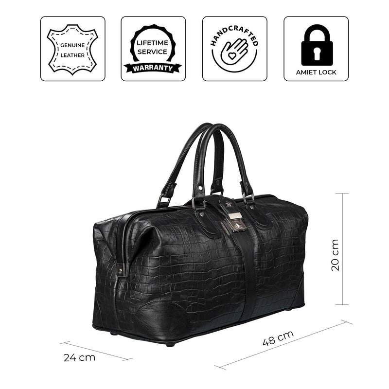 Georgia Collection - Italian Classics 97 Travel Bag | Leather Duffle Bag For Men | Croco Embossed Genuine Leather | Colour : Black