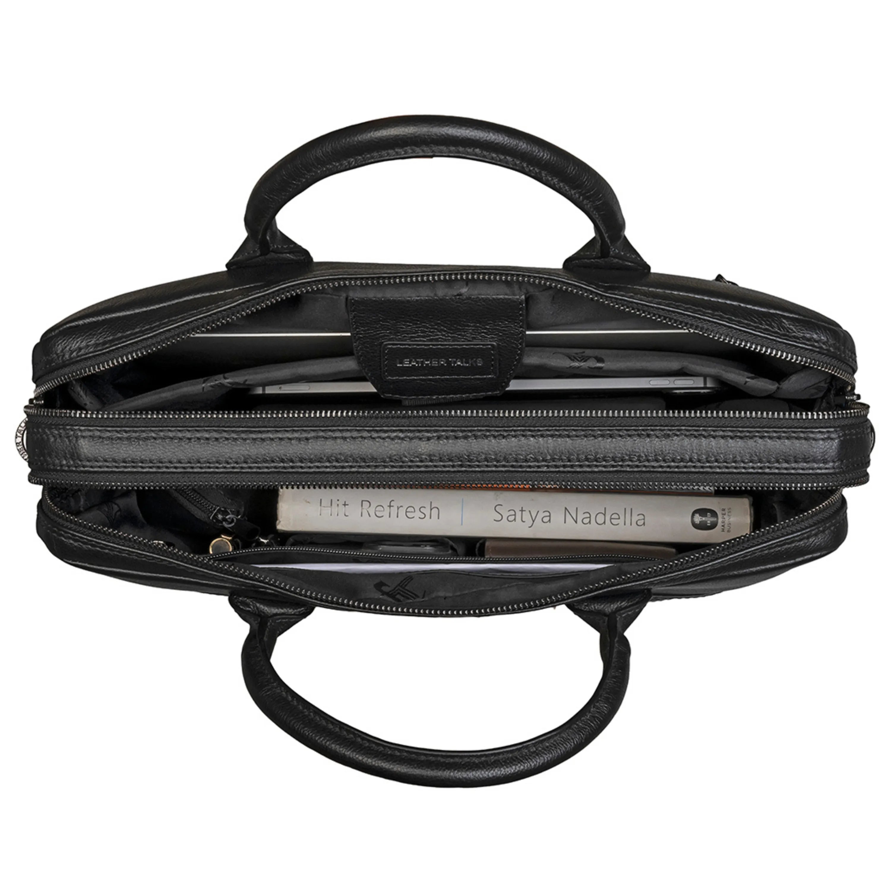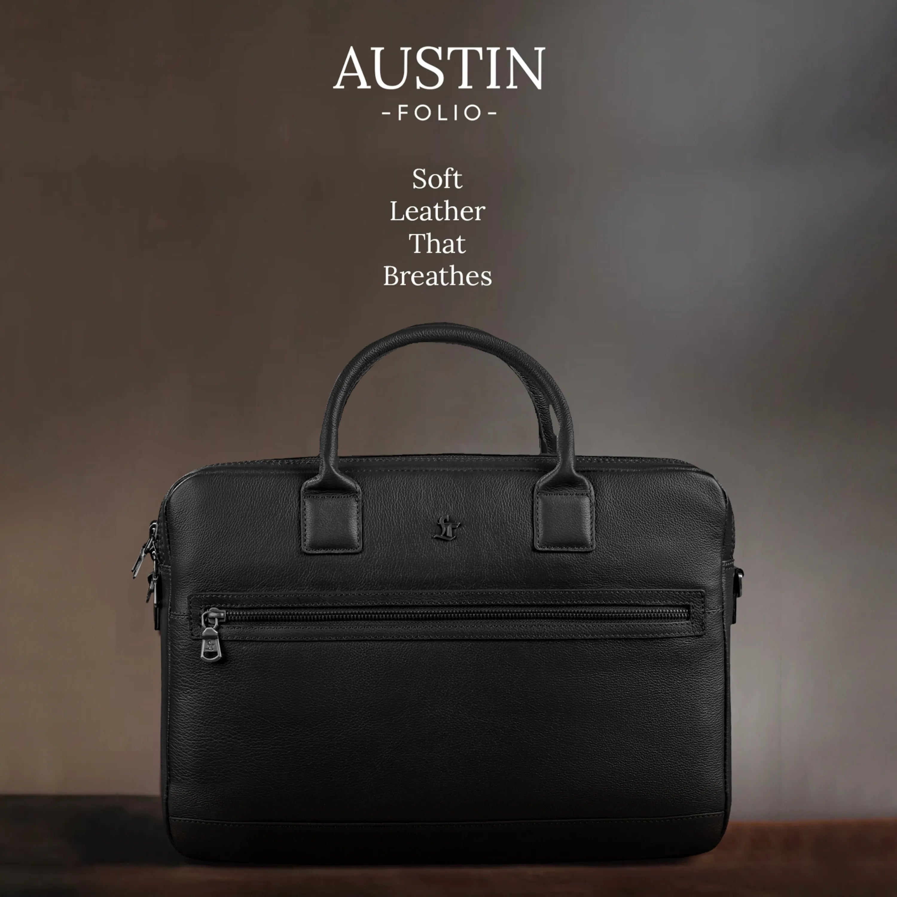 Austin Genuine Leather Folio Bag for Men | Premium Office Laptop Bag | Stylish Business Bag | Color: Black