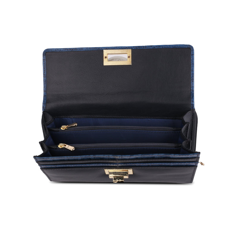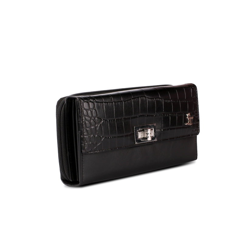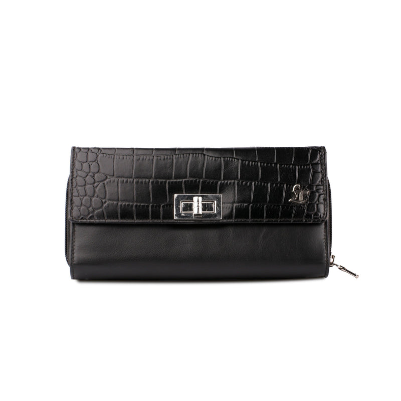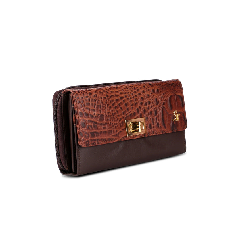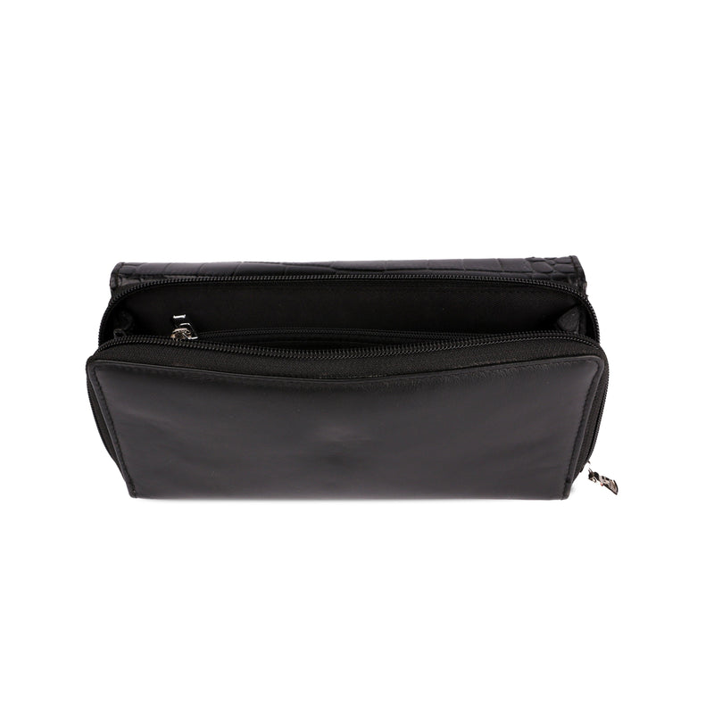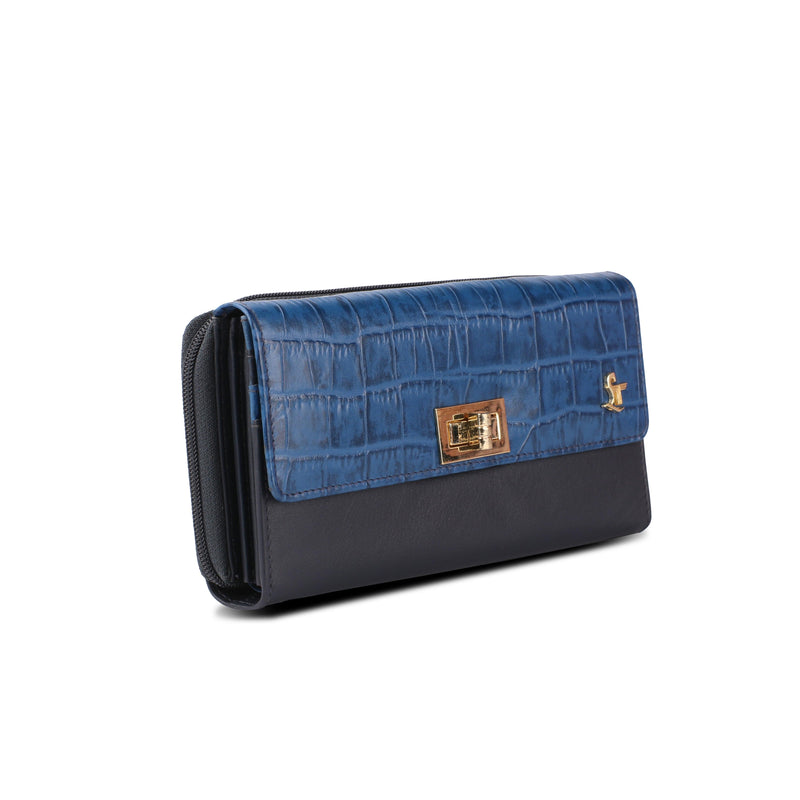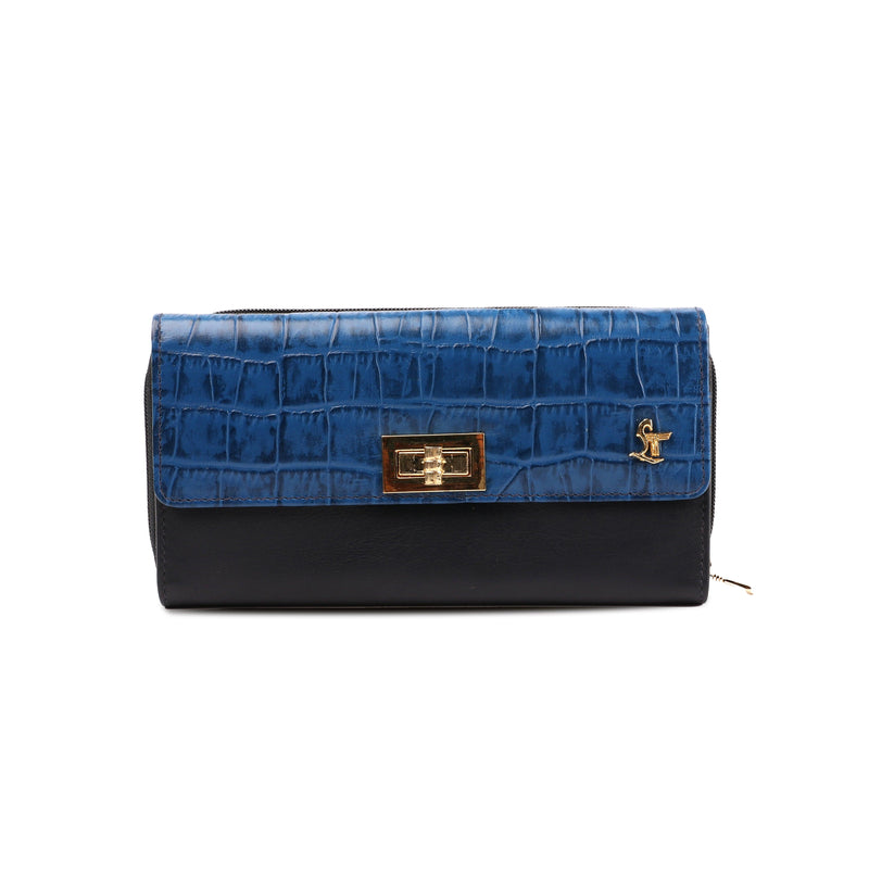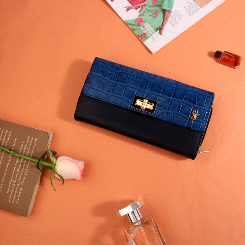 Backzipp - Wallet for Women | Croco Embossed Genuine Leather | Color: Black, Blue & Brown
