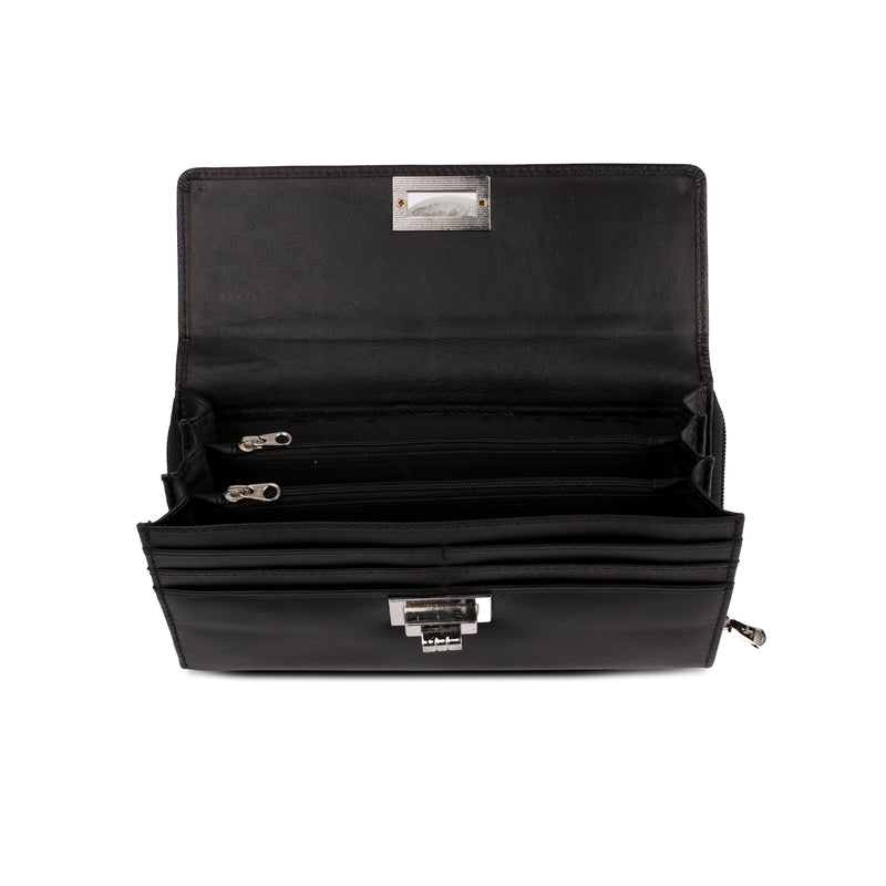 Leather talks brings to you, a Croco black from Backzipp's range of ladies' wallets, which is any girl’s favorite. Two different leather prints add a smart touch to the final look. The wallet opens up to large compartments and it can be easily folded, without any worry about wear and tear along the joints. It is easy to clutch and stack in, whether its your totes or other handbags. Two chained compartments within and one chained compartment at the back along with a couple of compartments make it a huge storage wallet.