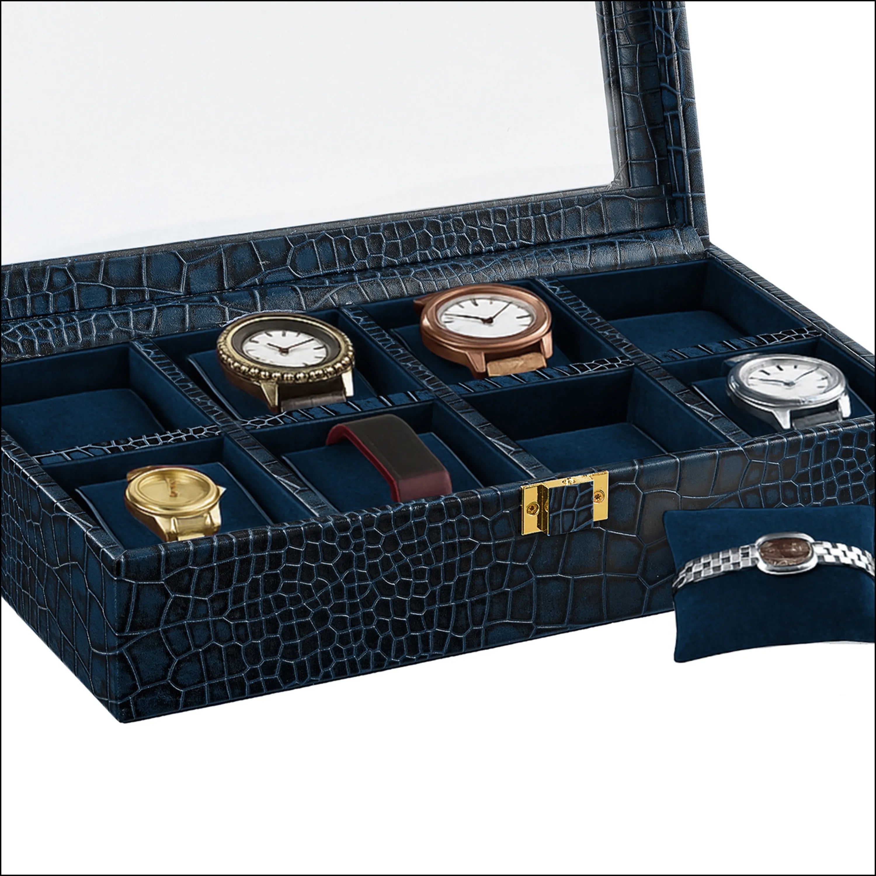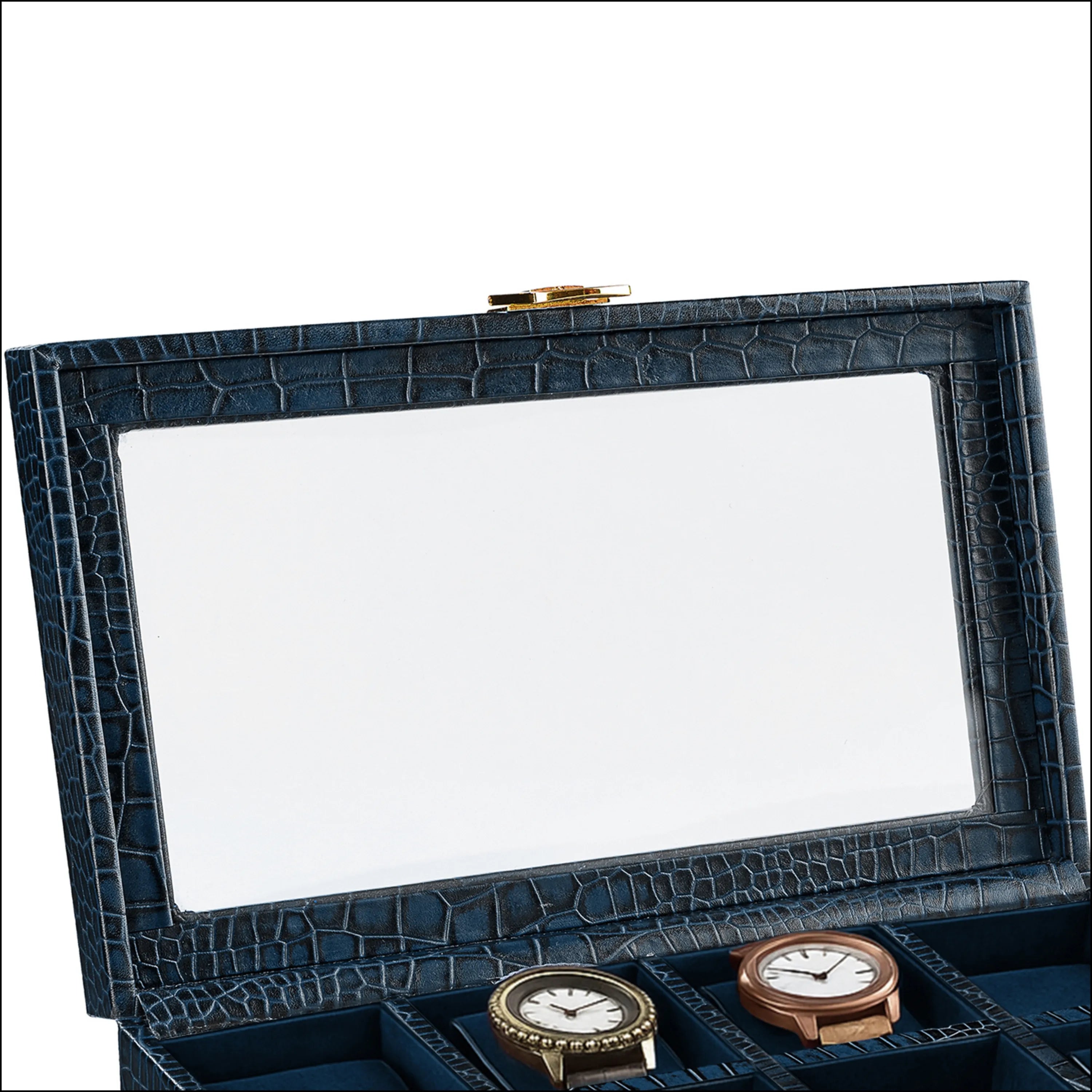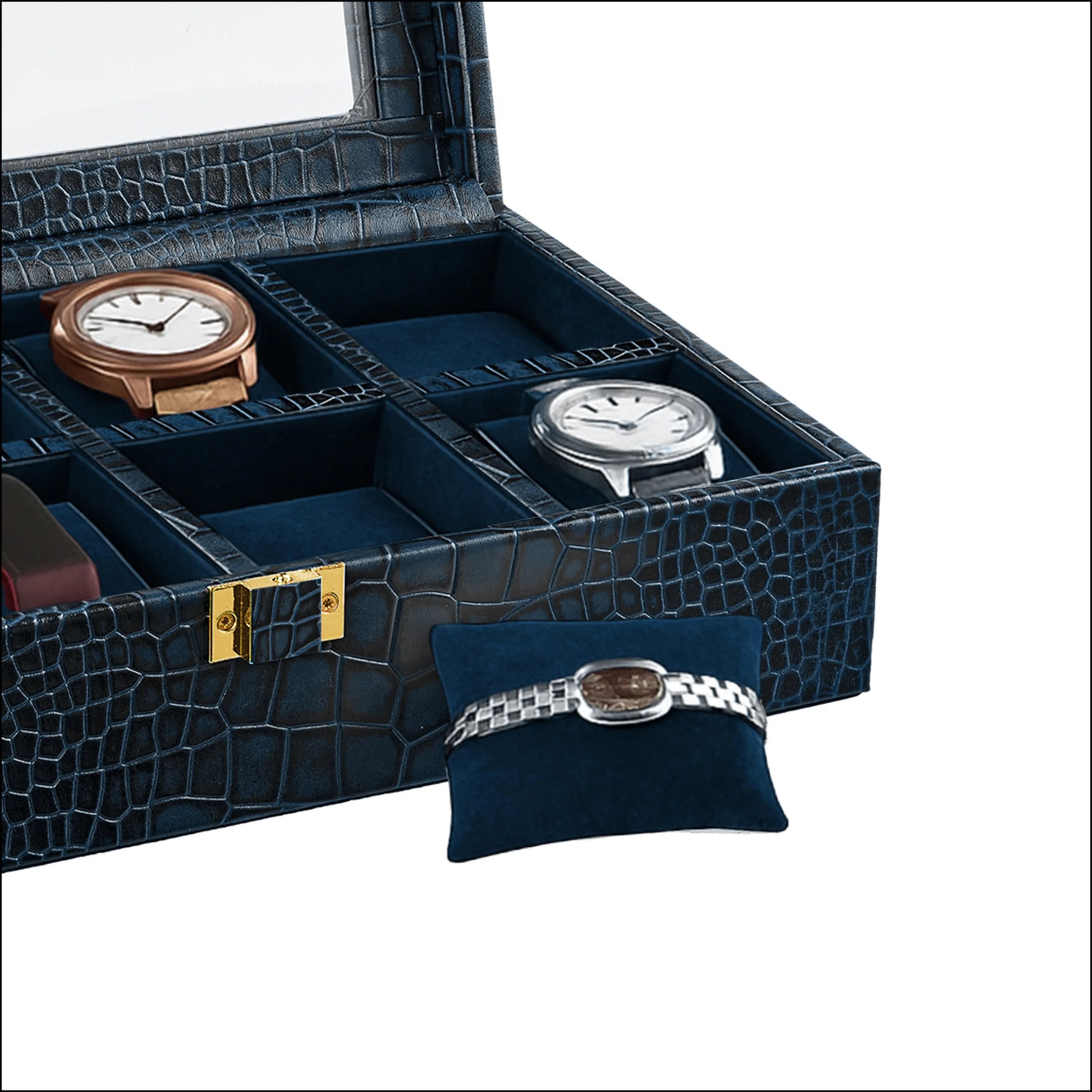 Bronx II Genuine Leather Watch Box for Men | 8 Slot Luxury Watch Organizer | Croco Embossed Premium Watch Case | Color: Blue