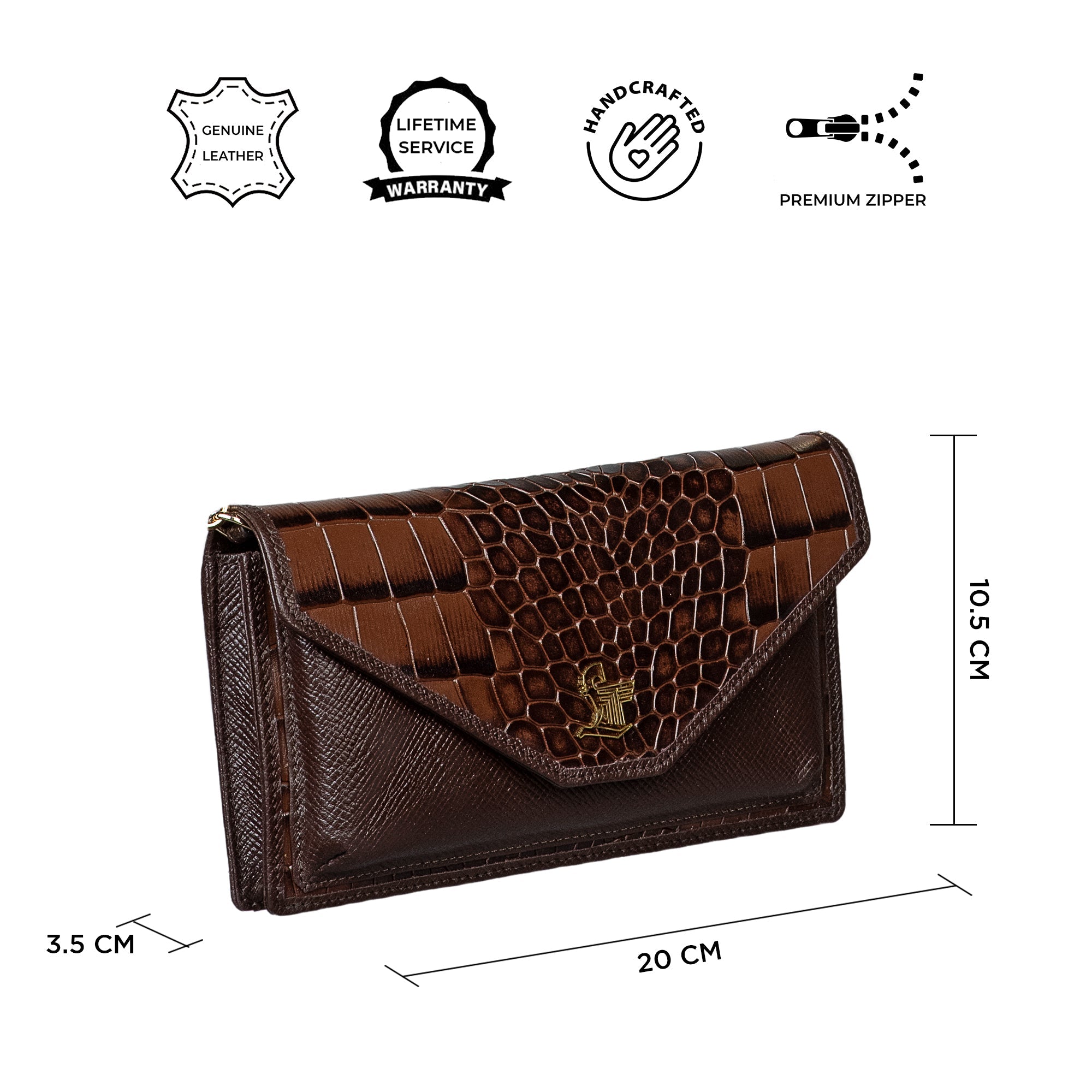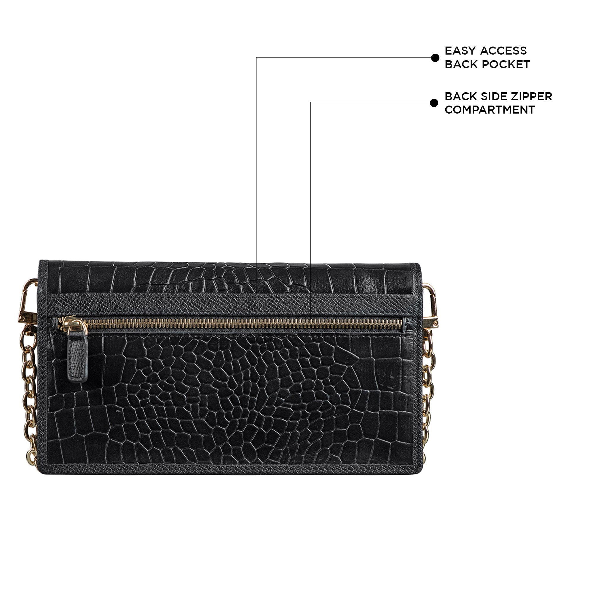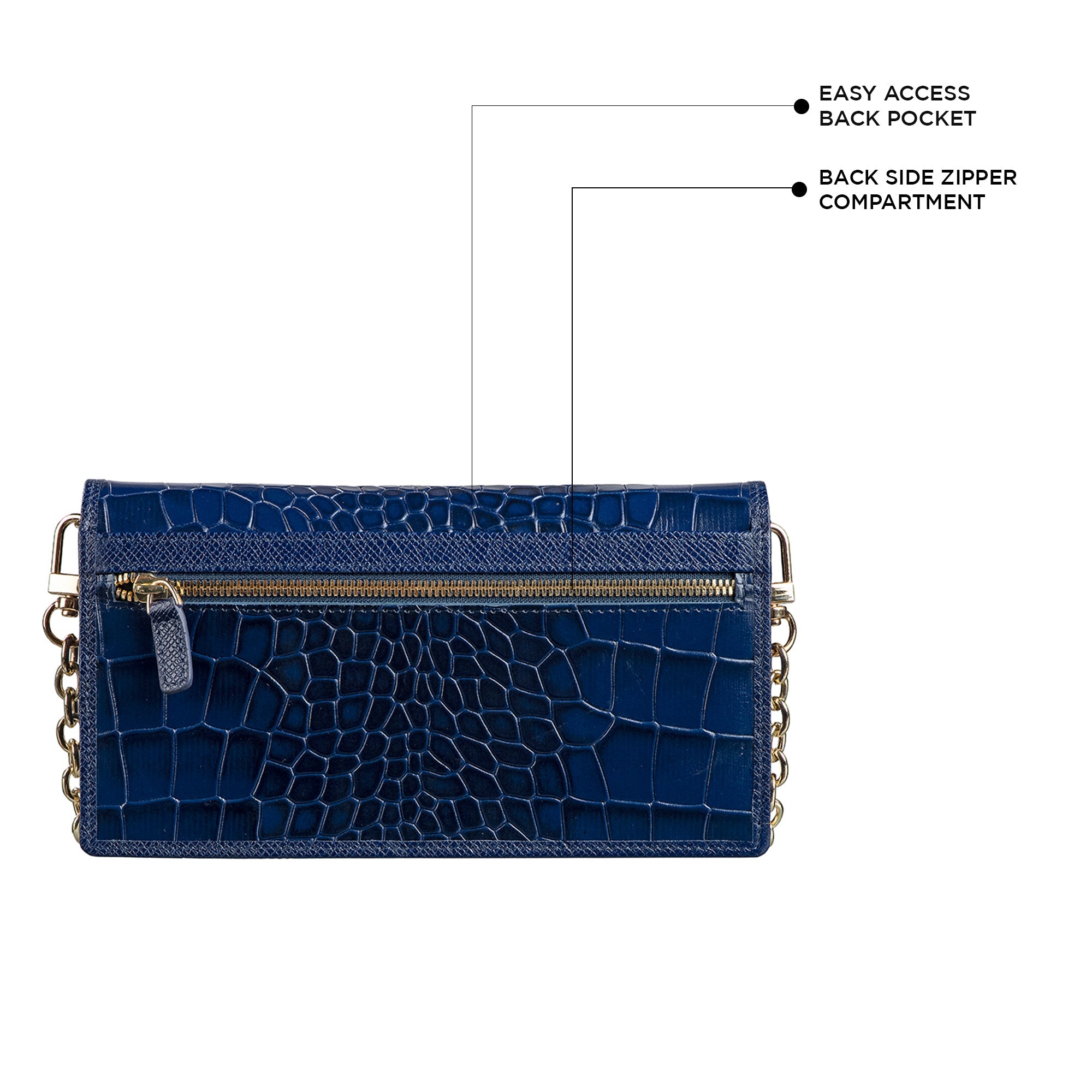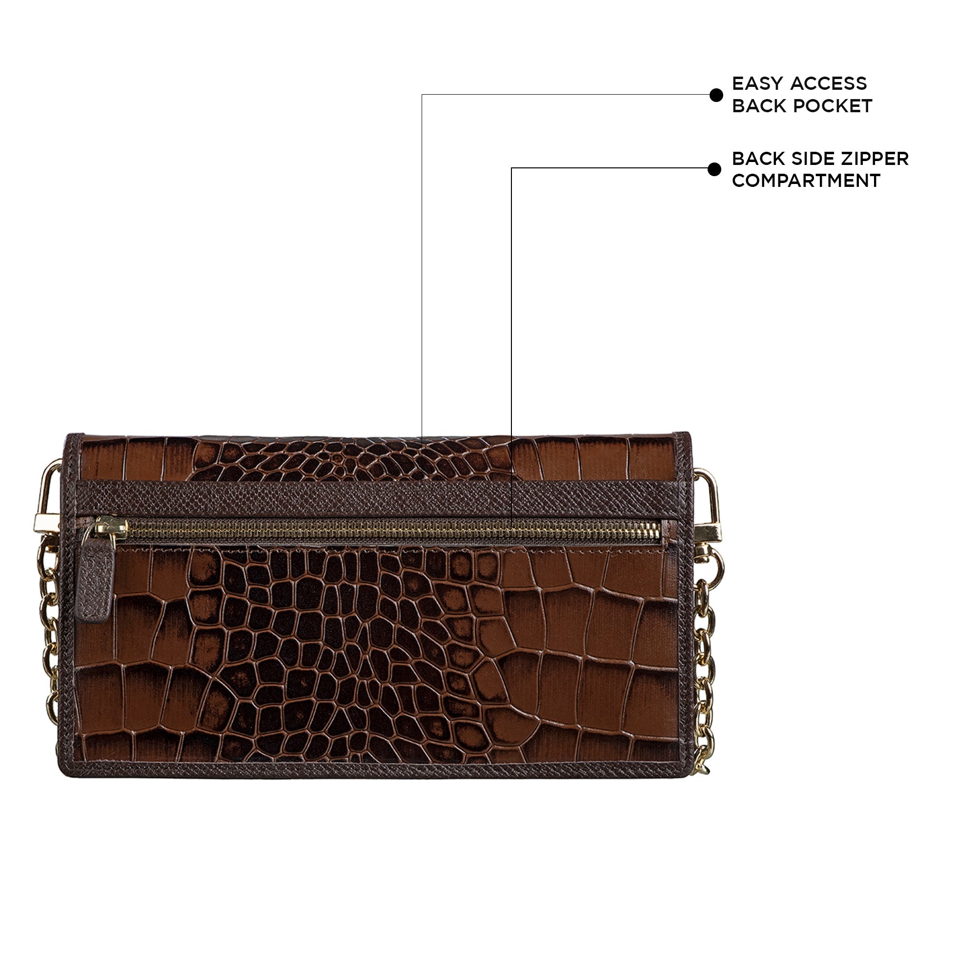 The Clara Ladies Wallet by Leather Talks is the ultimate blend of elegance, security, and versatility—crafted for the modern woman who values style with substance. Designed as a clutch cum sling bag, it transitions effortlessly from day to night. Made from deep-cut croco embossed genuine leather, this RFID-safe wallet offers both security and a luxurious texture. Clara is not just a wallet—it’s a fashion statement backed by functionality.