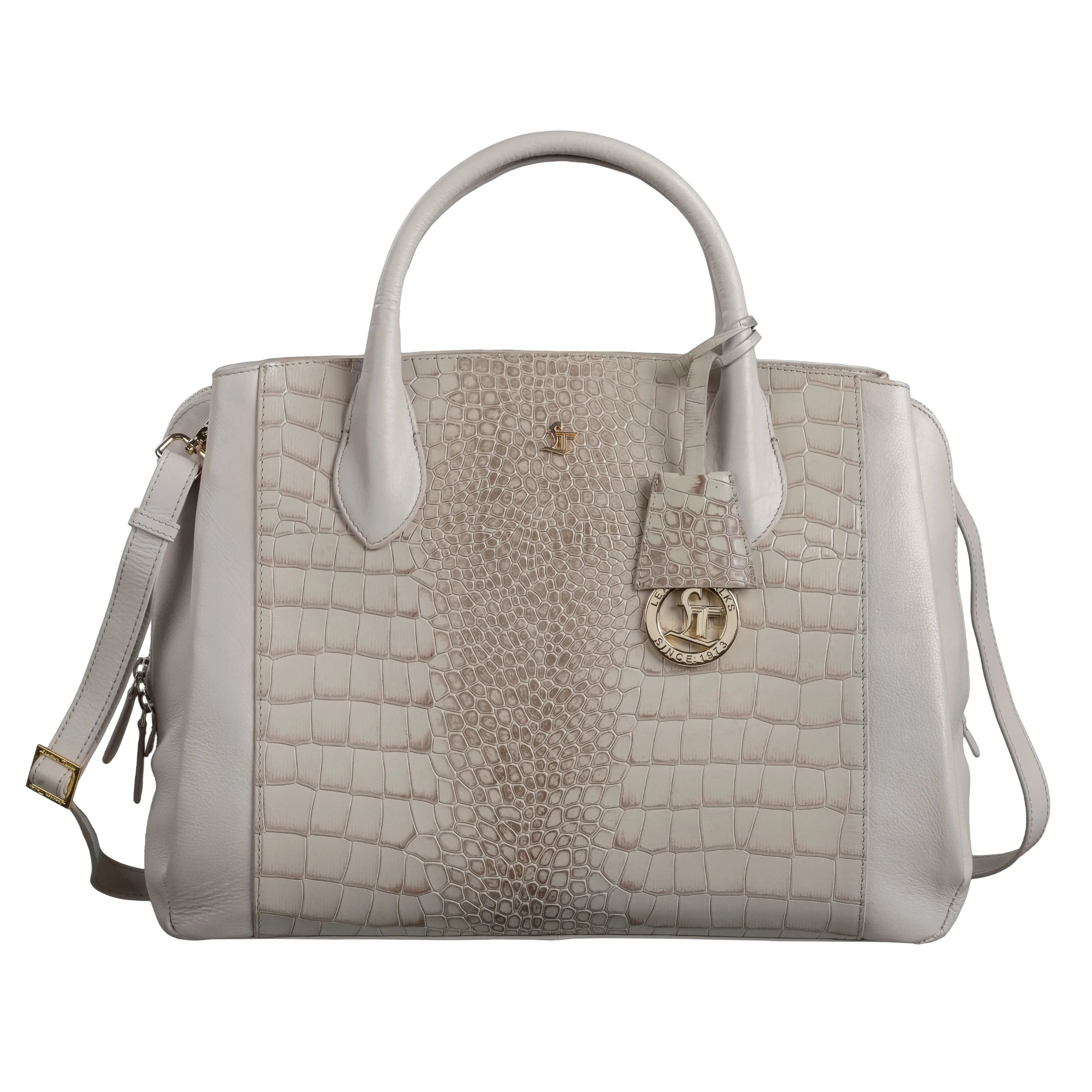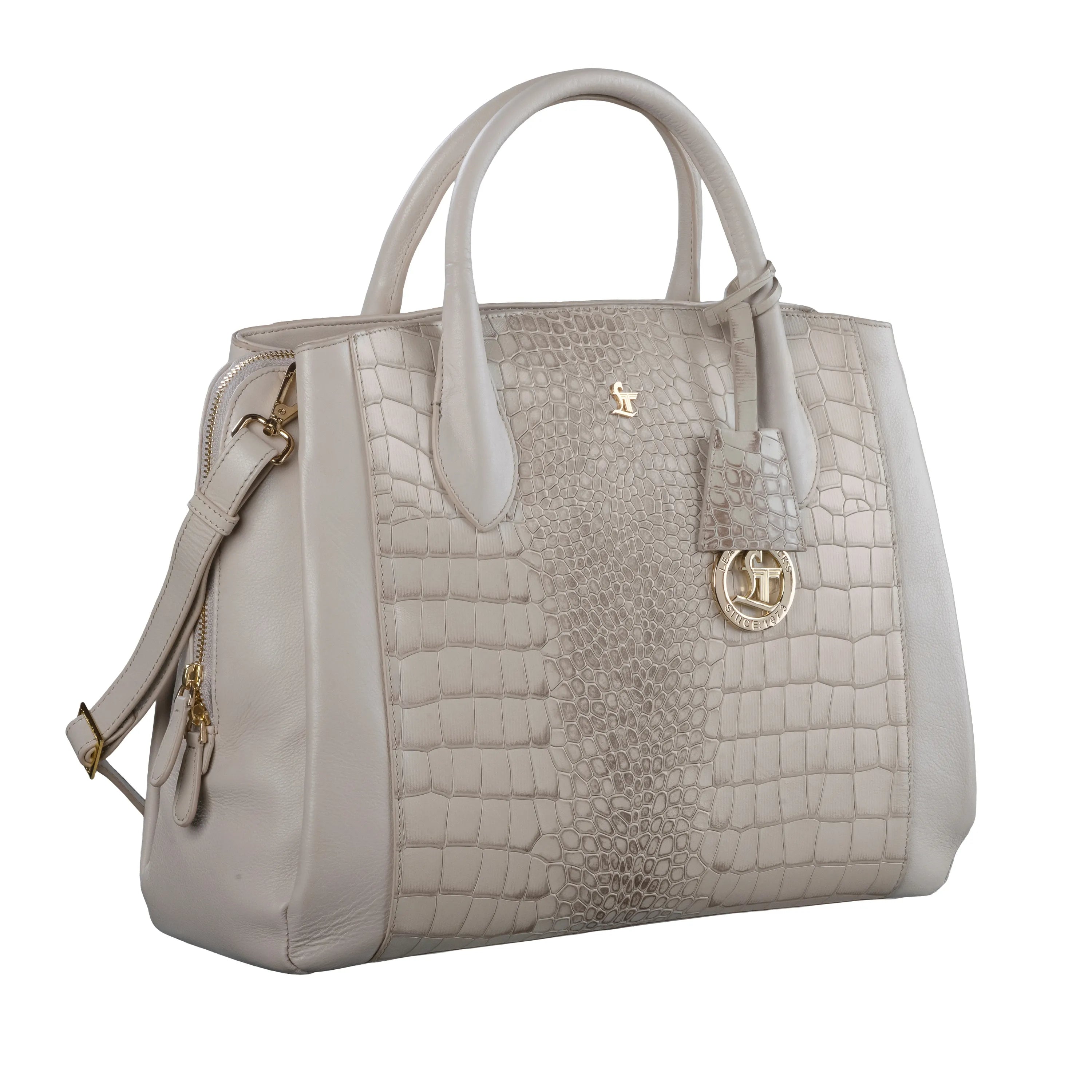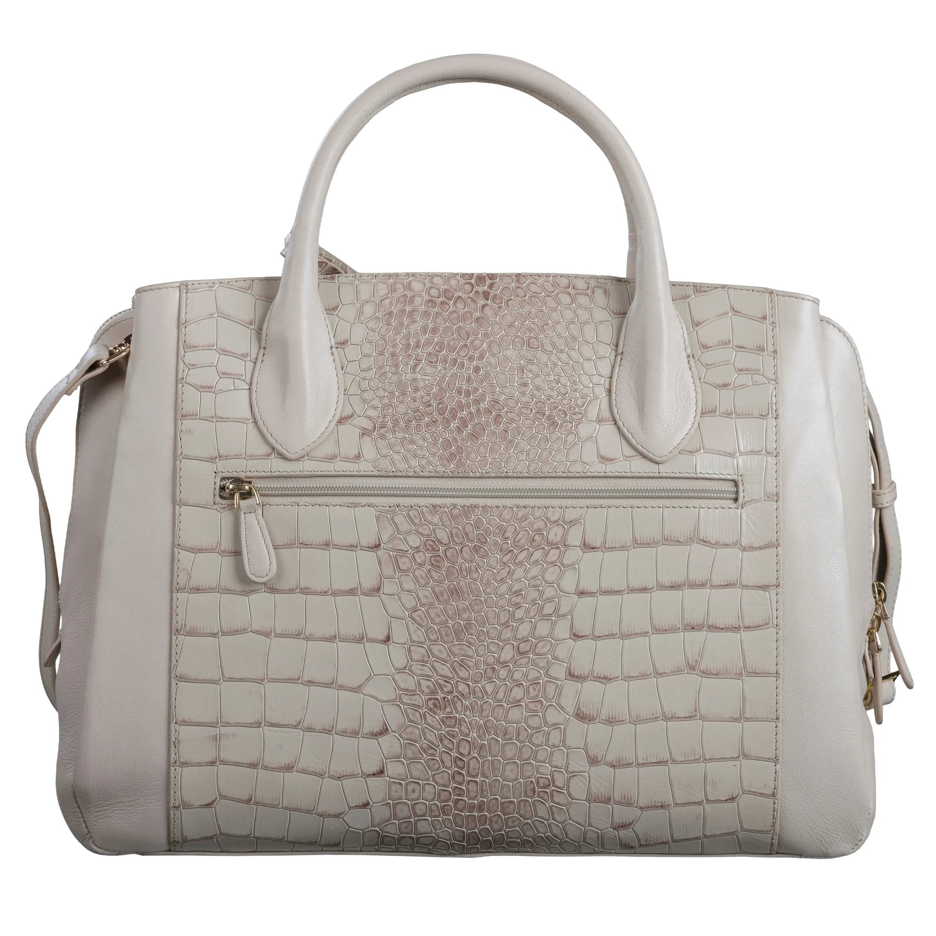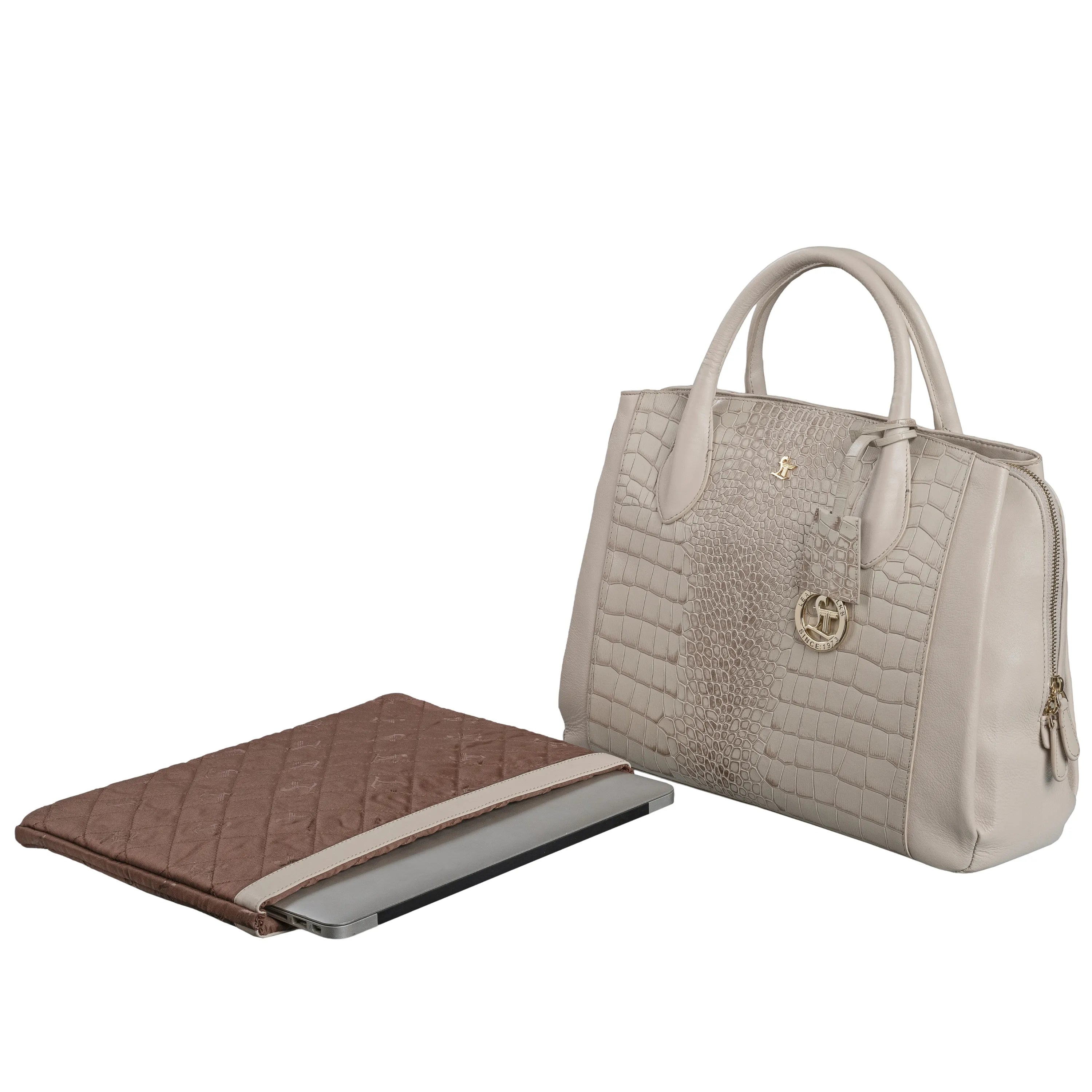 Clara Sr. Beige Leather Handbag for Women with Detachable Laptop Sleeve | Large Genuine Leather Handbag | Croco Embossed Shoulder Bag for Office, Travel & Everyday Use