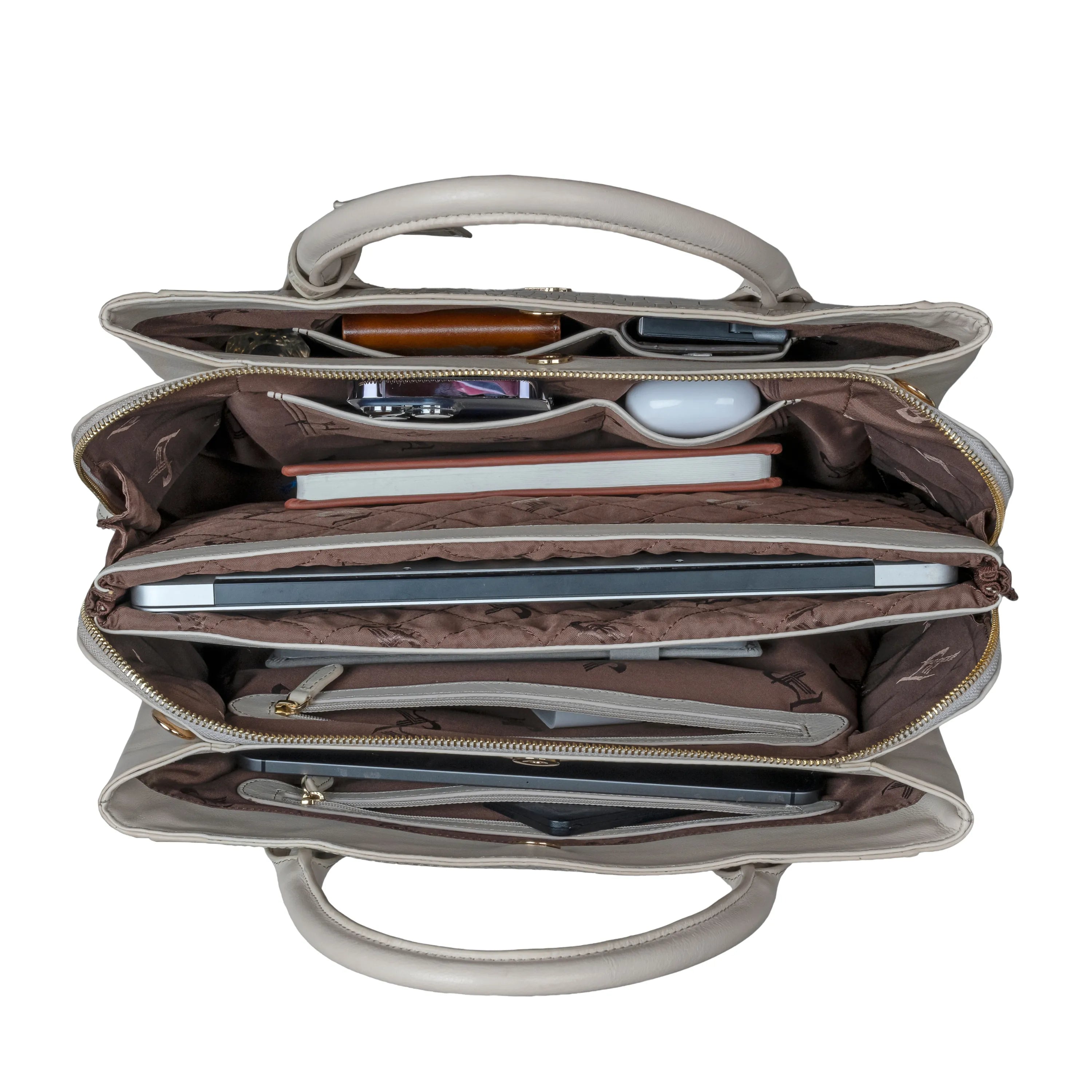 Made with impeccable craftsmanship, the Clara Sr. is an investment in both style and functionality. Its versatile compartments and thoughtful design allow you to keep all your essentials neatly organized, whether you're storing office documents, makeup items, or a 13.5-inch laptop. From the structured handles to the customizable carrying options, every detail of the Clara Sr. Handbag reflects an impeccable balance of luxury and practicality.