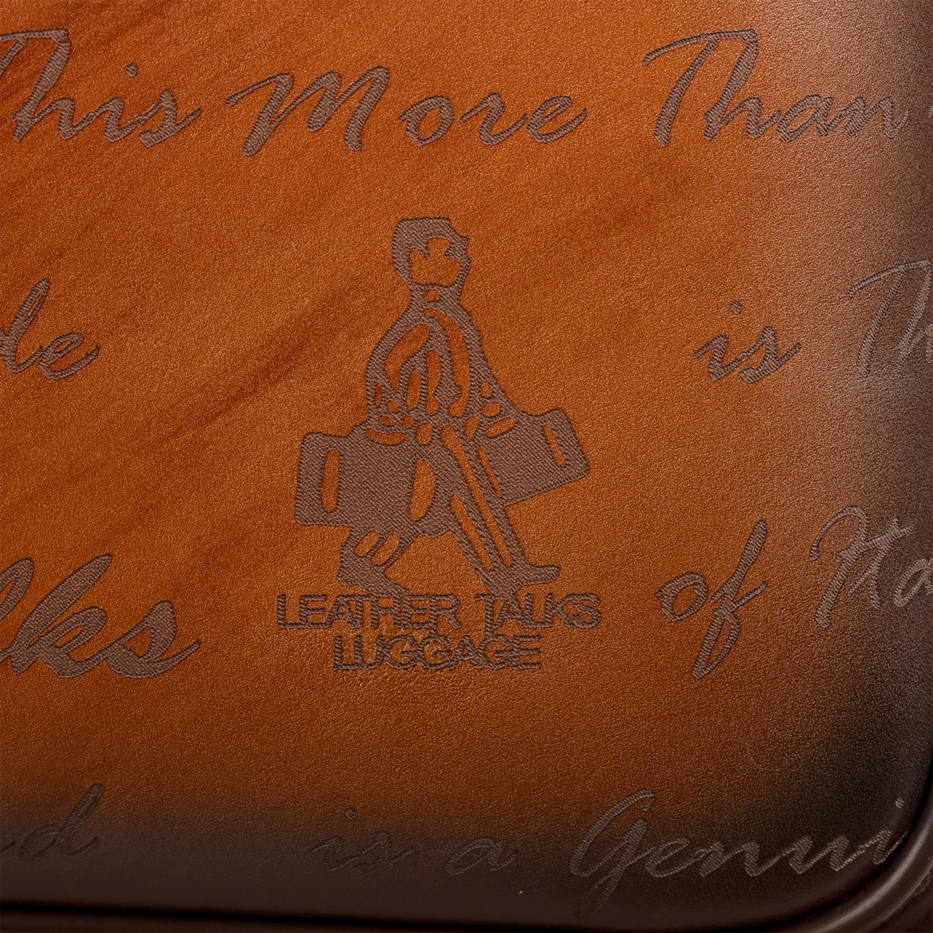 Made from premium genuine leather in a rich tan finish, the Condorium features a distinctive horizontal trunk-style silhouette. Signature touches—like Laser-themed engravings, the Leather Talks logo, and a travel compass emblem—reflect a spirit of refined adventure.