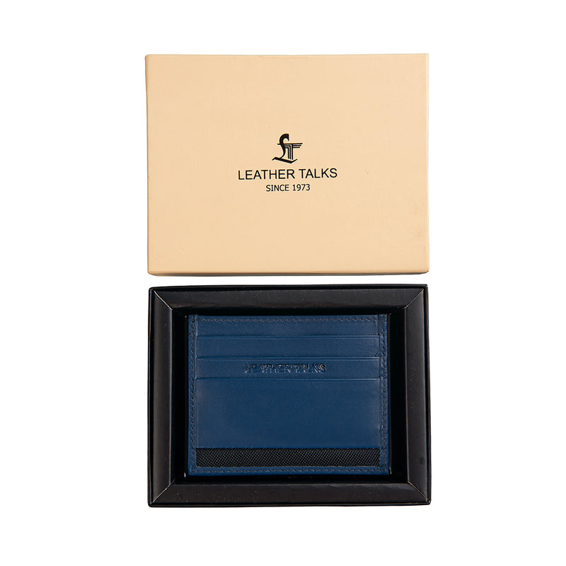 Cruze II Genuine Leather Card Holder Wallet – Slim & Compact Design, 6 Card Slots, Cash Holder | Colour: Blue