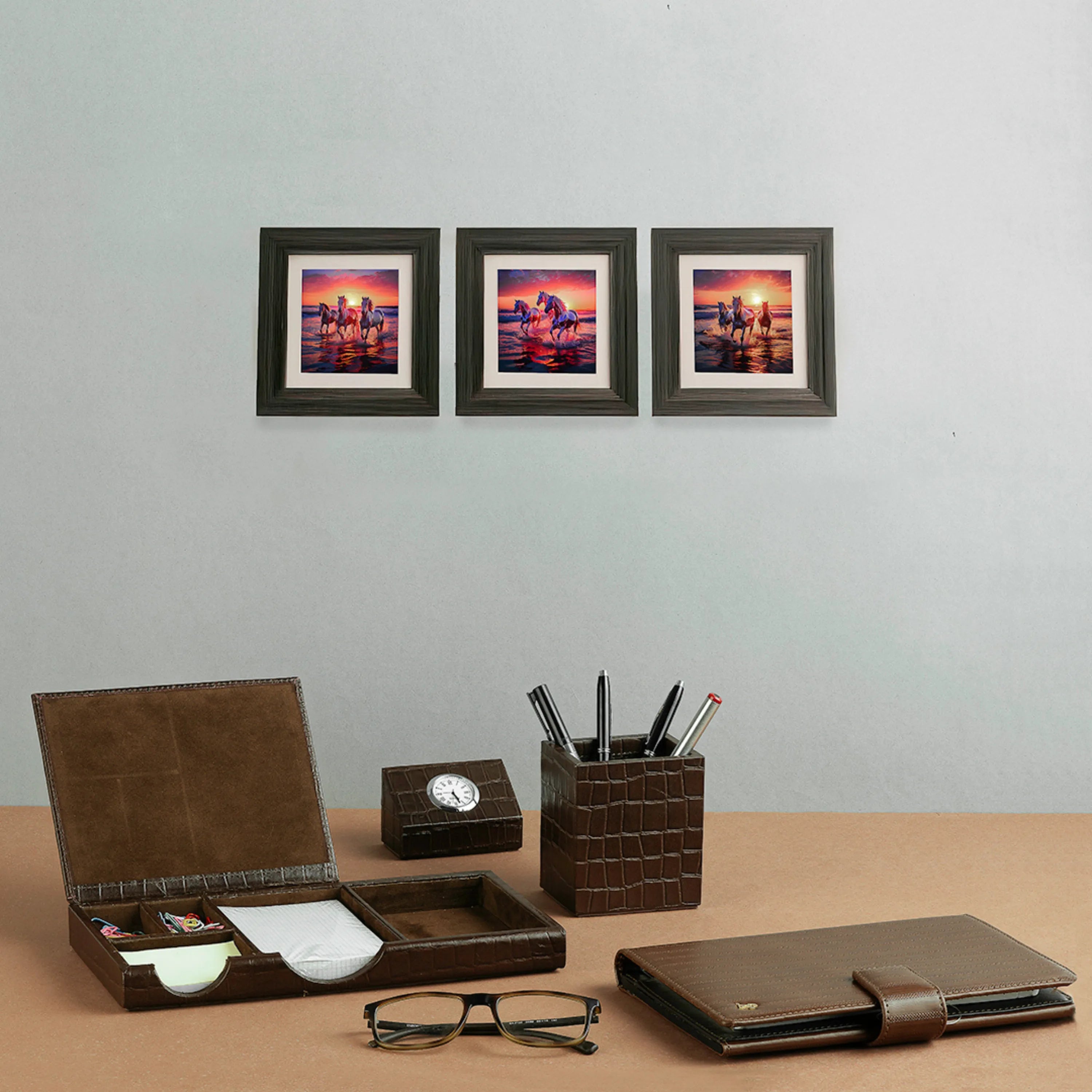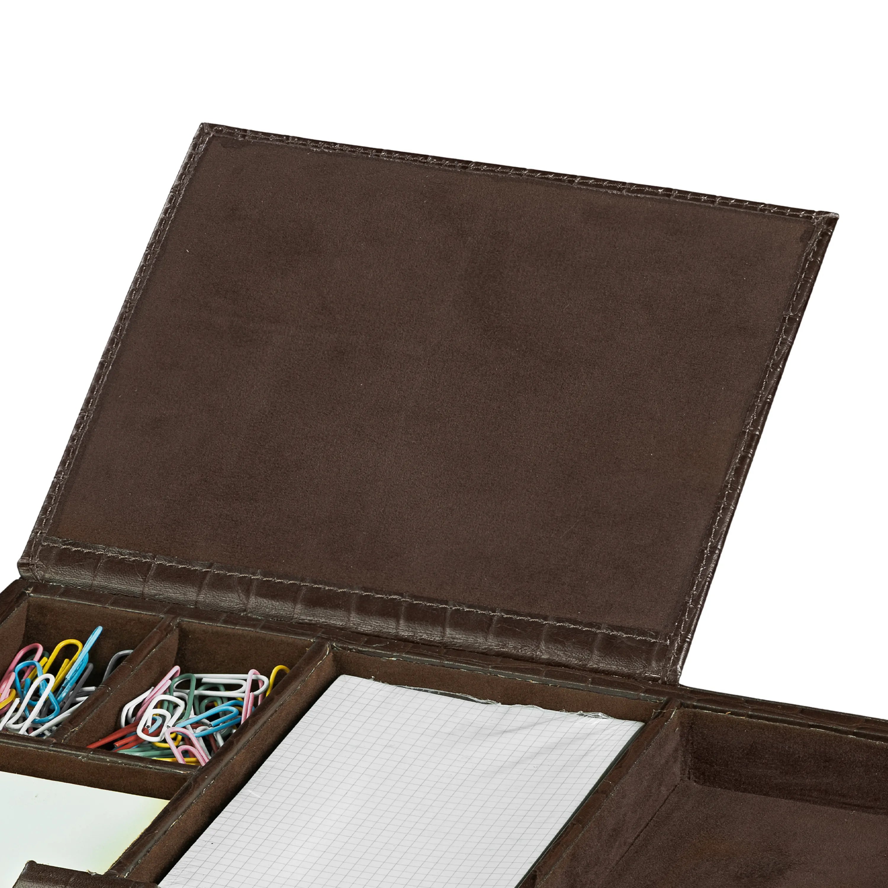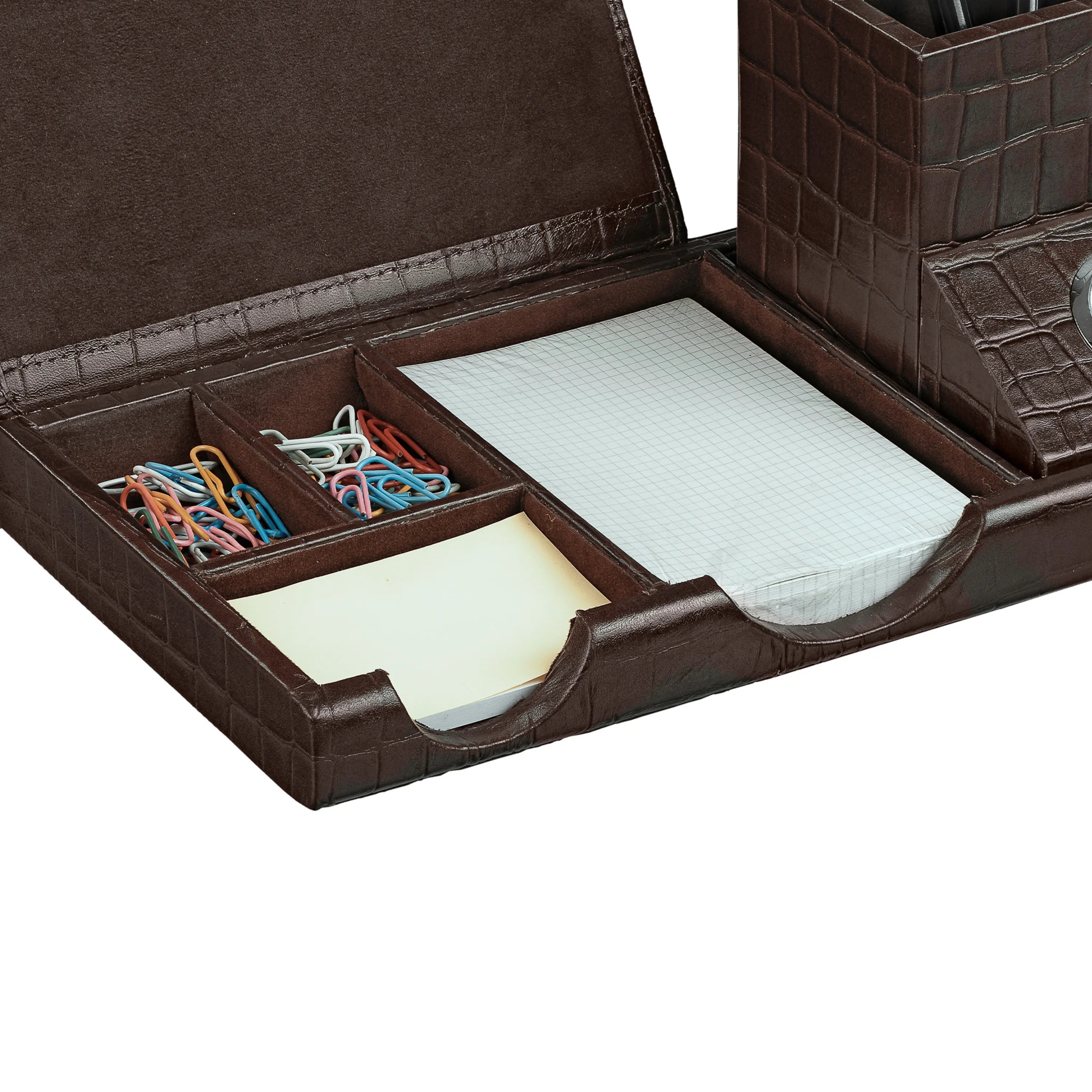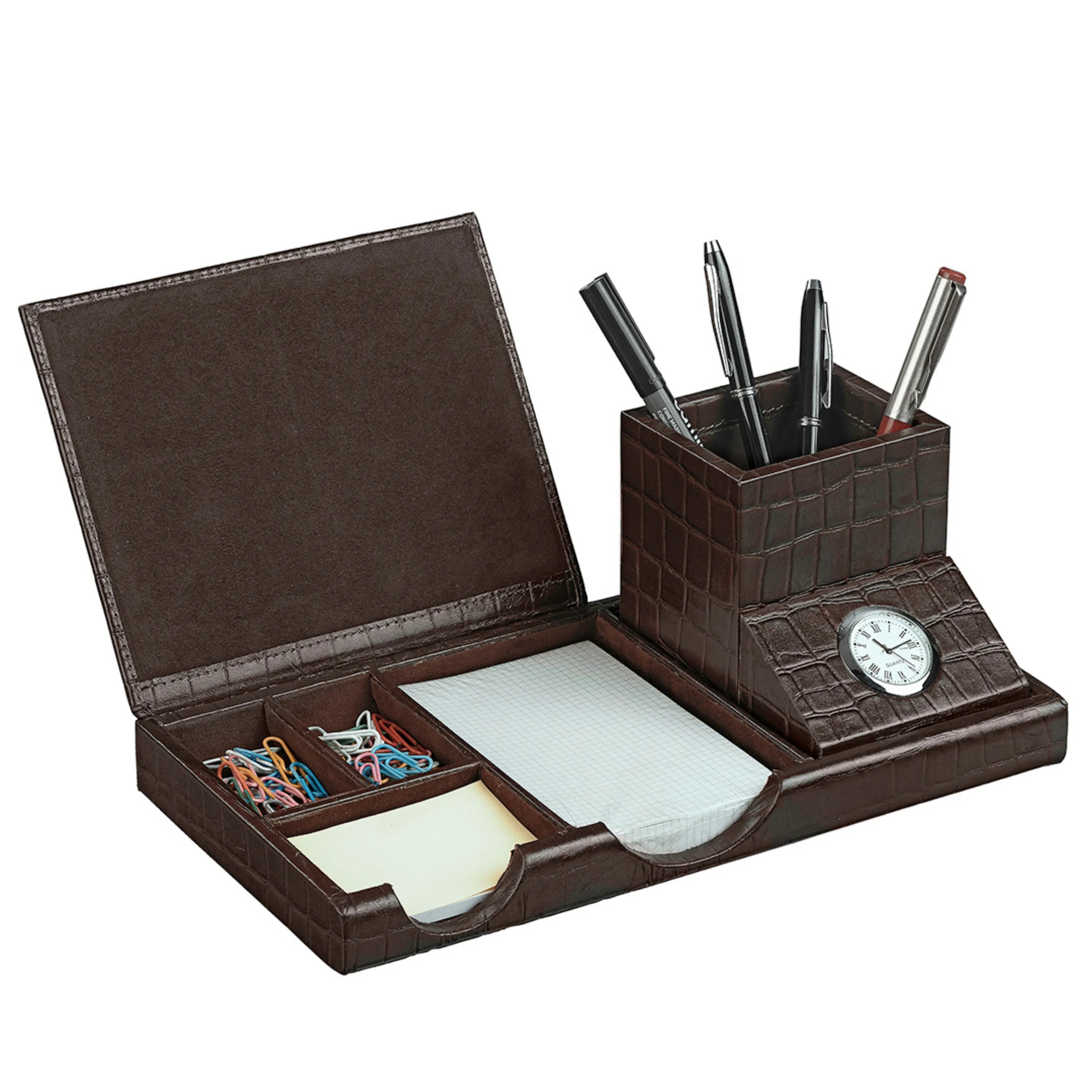 Desktop Accessory Set I | Desk Organizer | Leather Desk Accessories | Croco Embossed Genuine Leather | Color - Brown