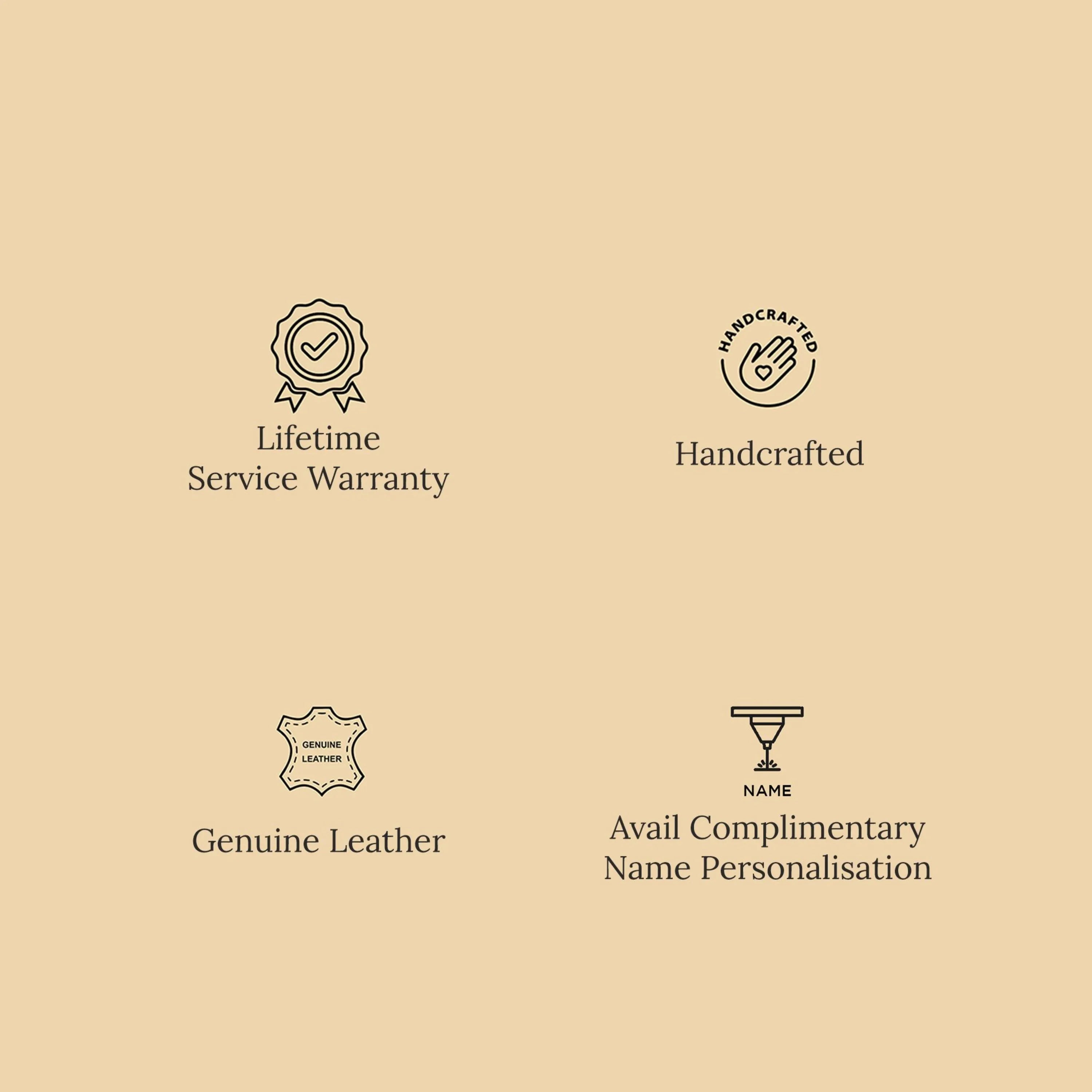 We are proud to offer a Lifetime Service Warranty on our genuine leather bags and accessories, ensuring the highest level of satisfaction and support for our valued customers. Our warranty covers a range of services to keep your investment in top condition.