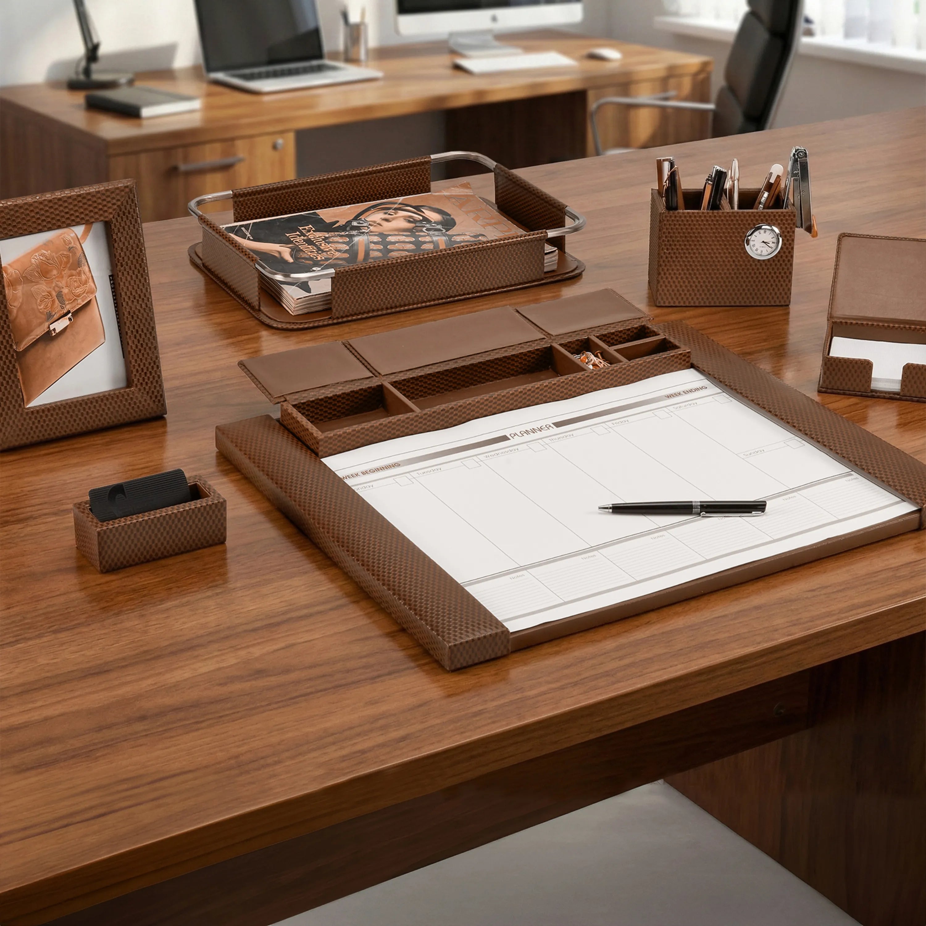Desktop Planner Set I | Office Table Accessories| Color- Brick Brown