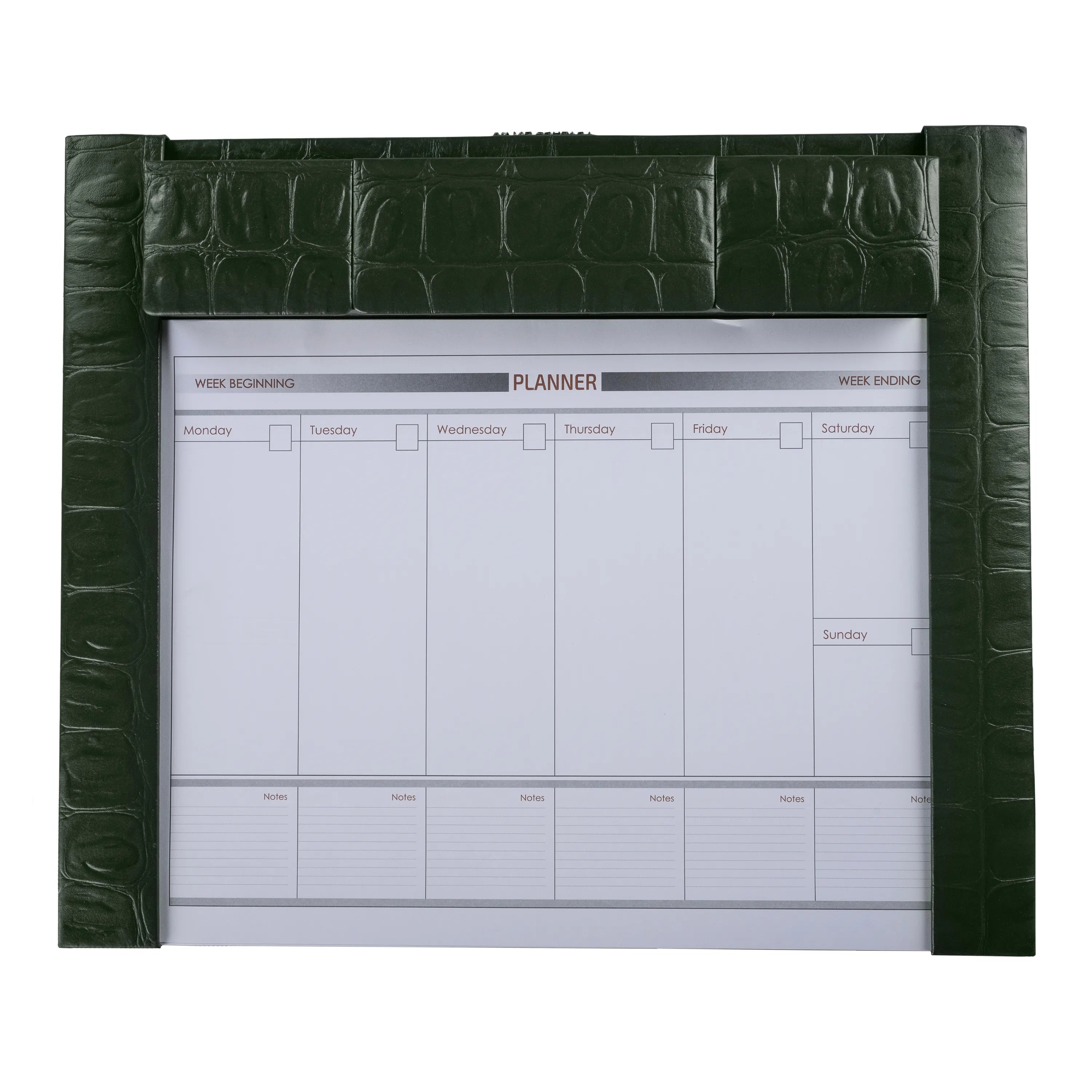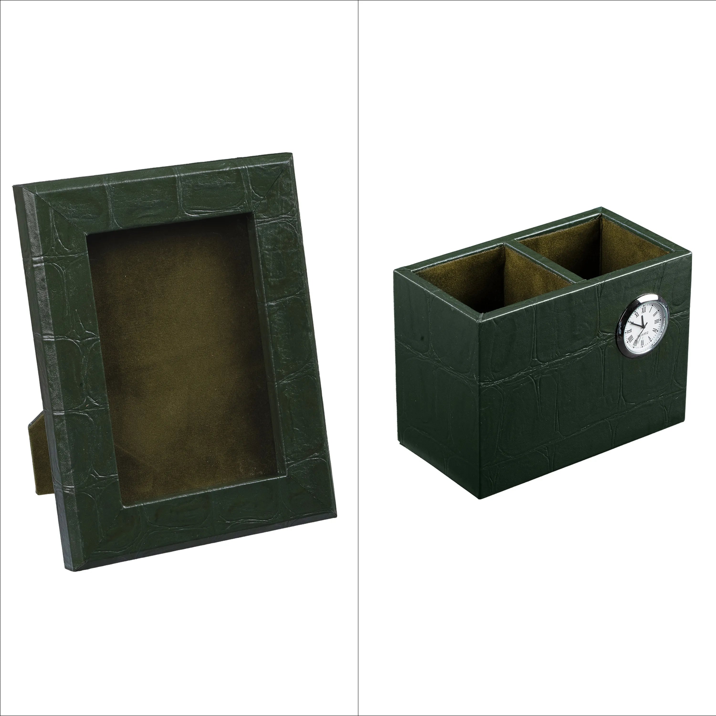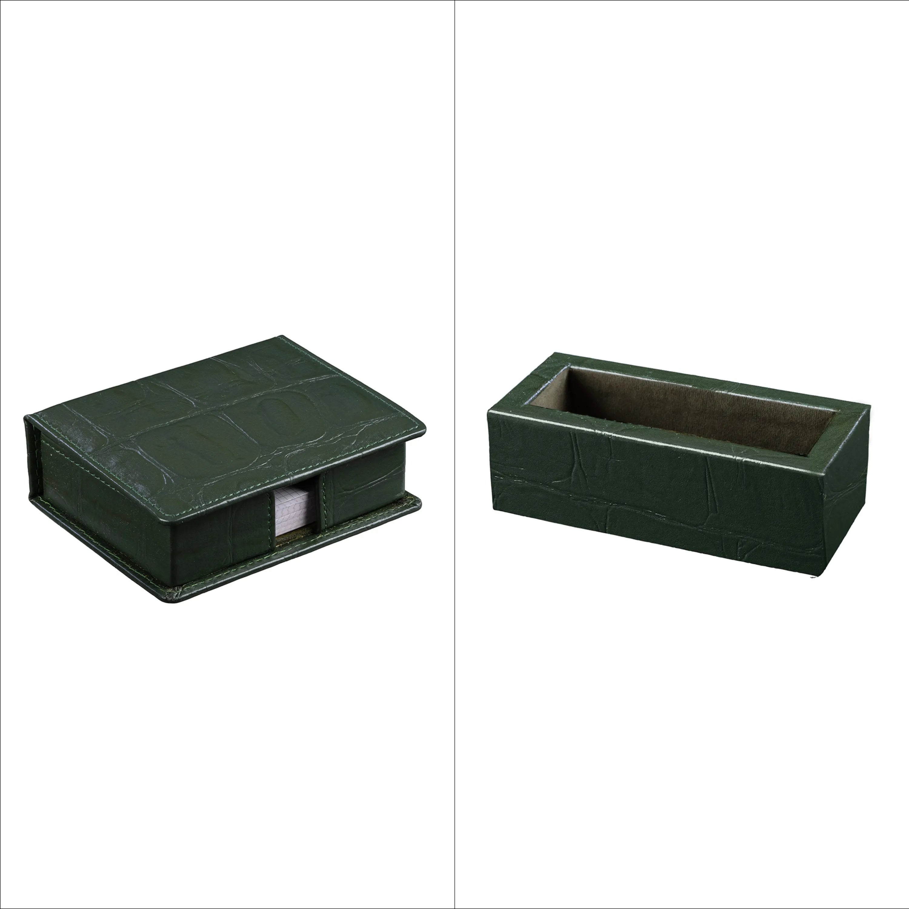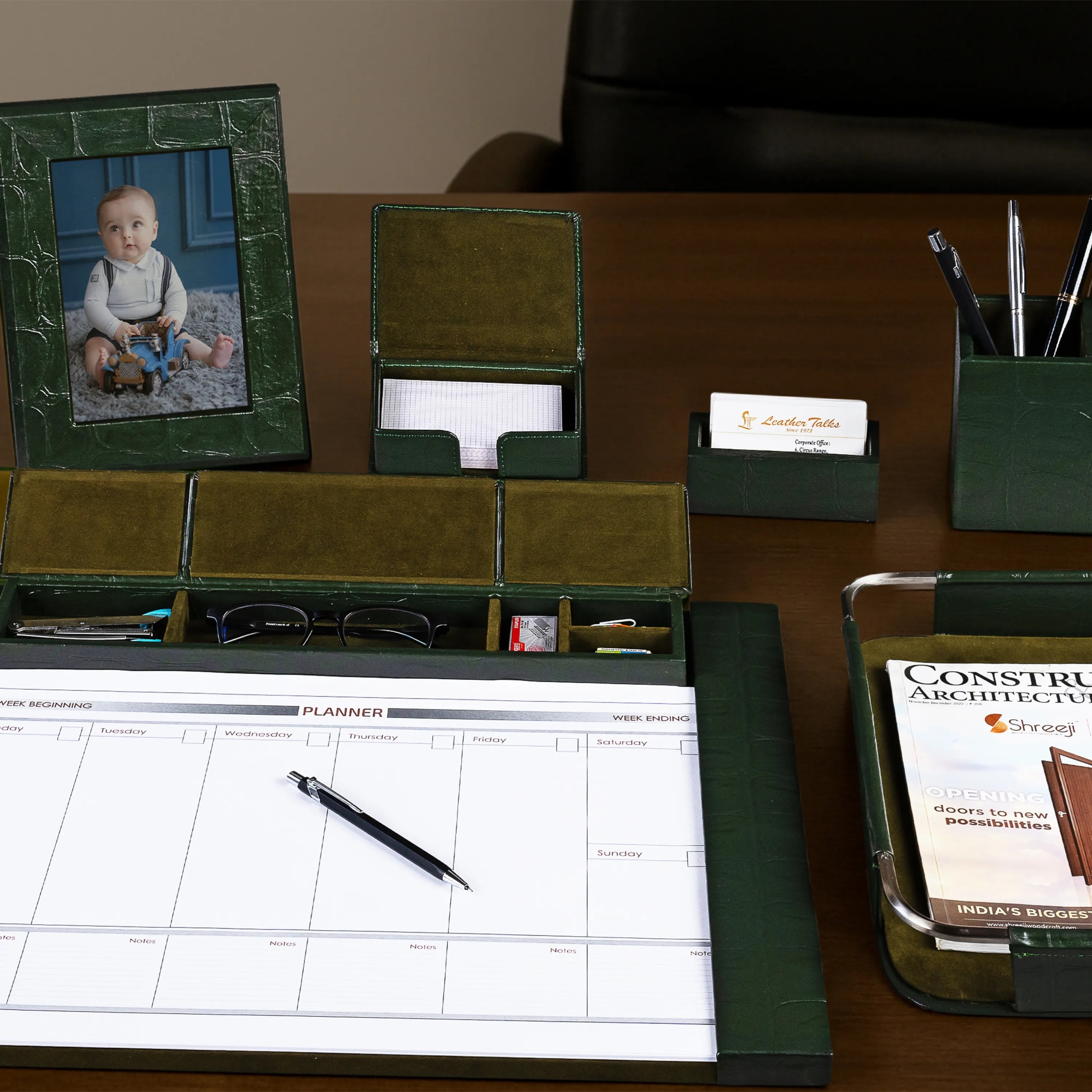 Desktop Planner Set I | Office Table Accessories | Croco Embossed Genuine Leather | Color- Crocotail Green