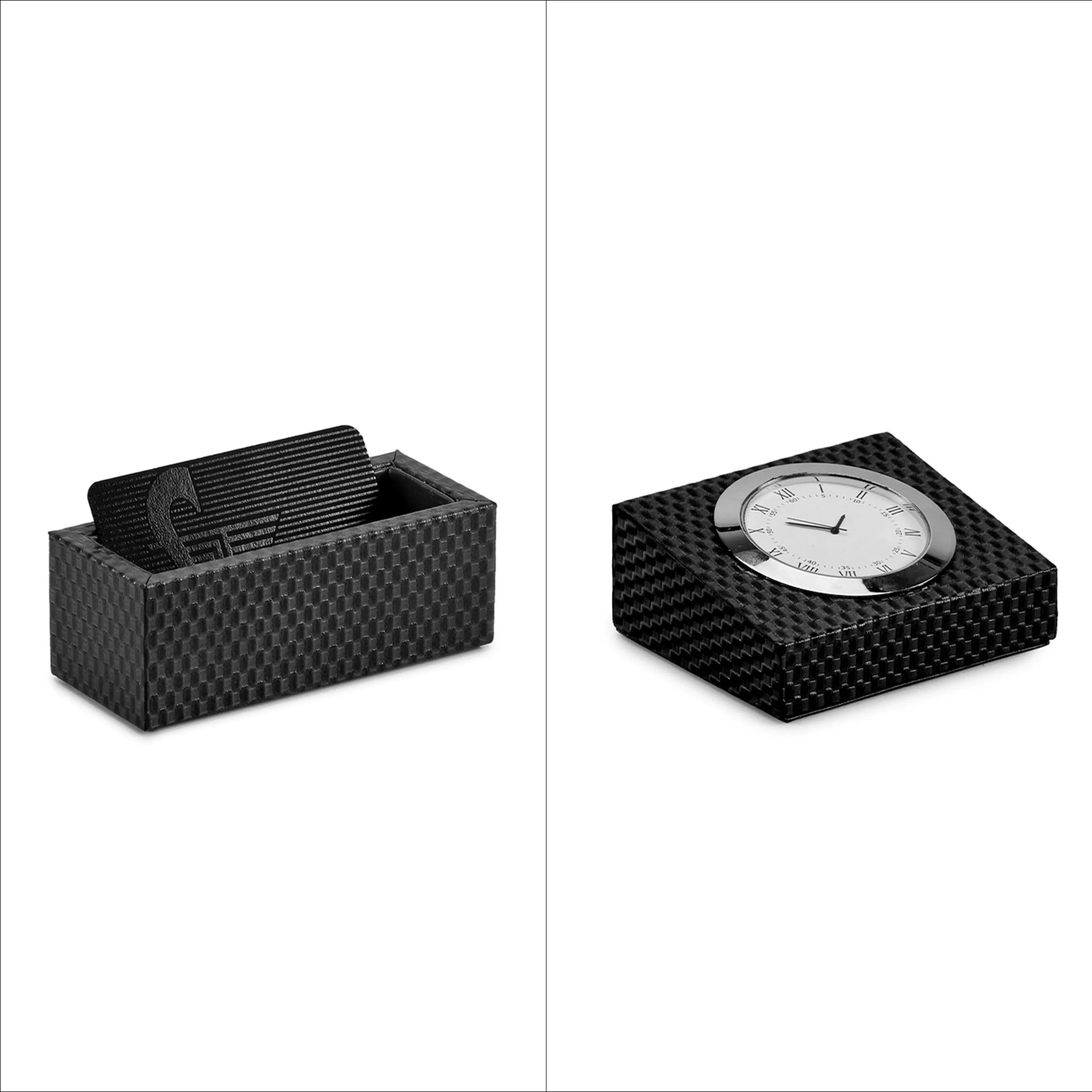 Desktop Planner Set II | Office Table Accessories | Embossed Genuine Leather | Color- Brick Black