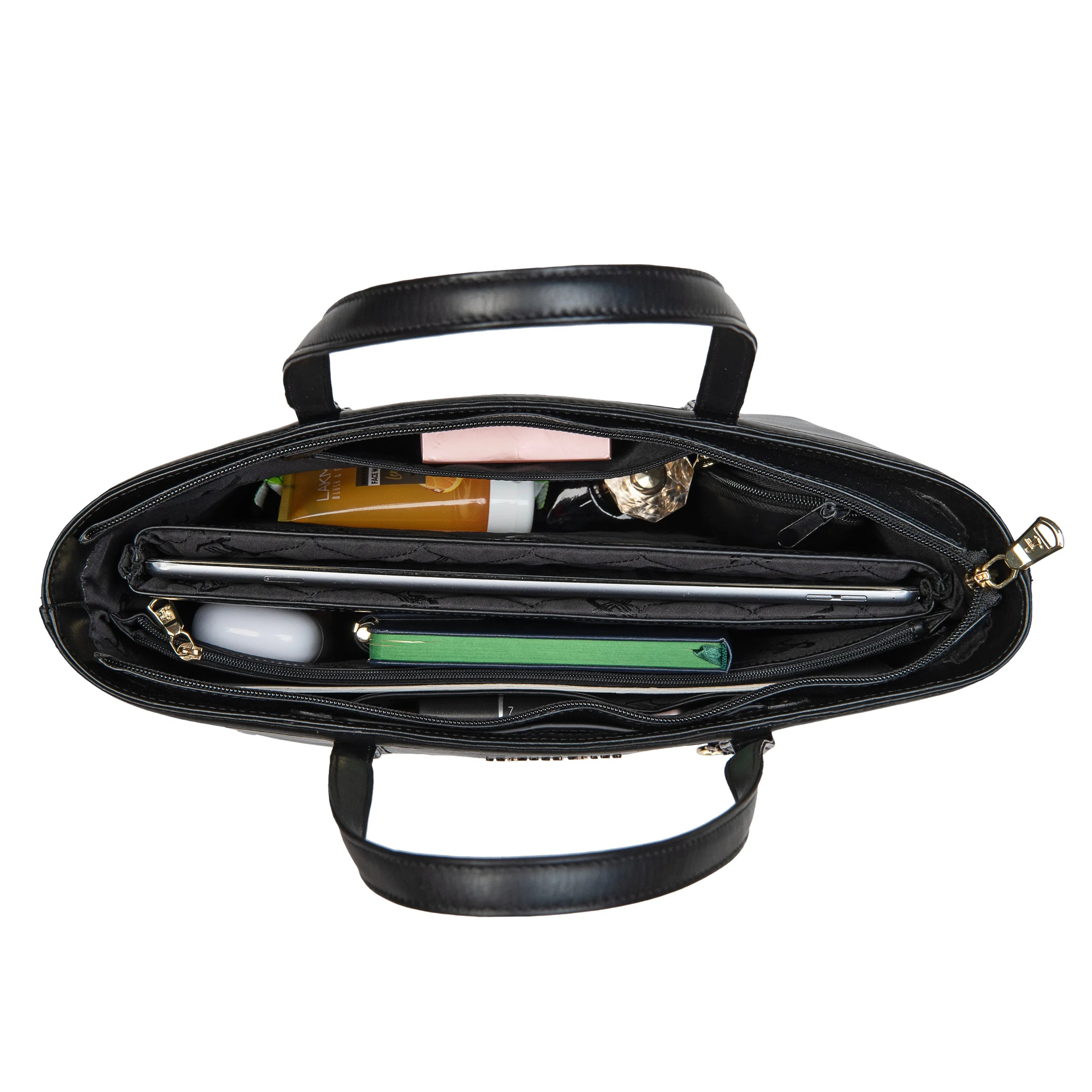 Elegant Tote Bag For Woman | 100% Genuine Leather | Ideal For Office & Travel | Color: Black