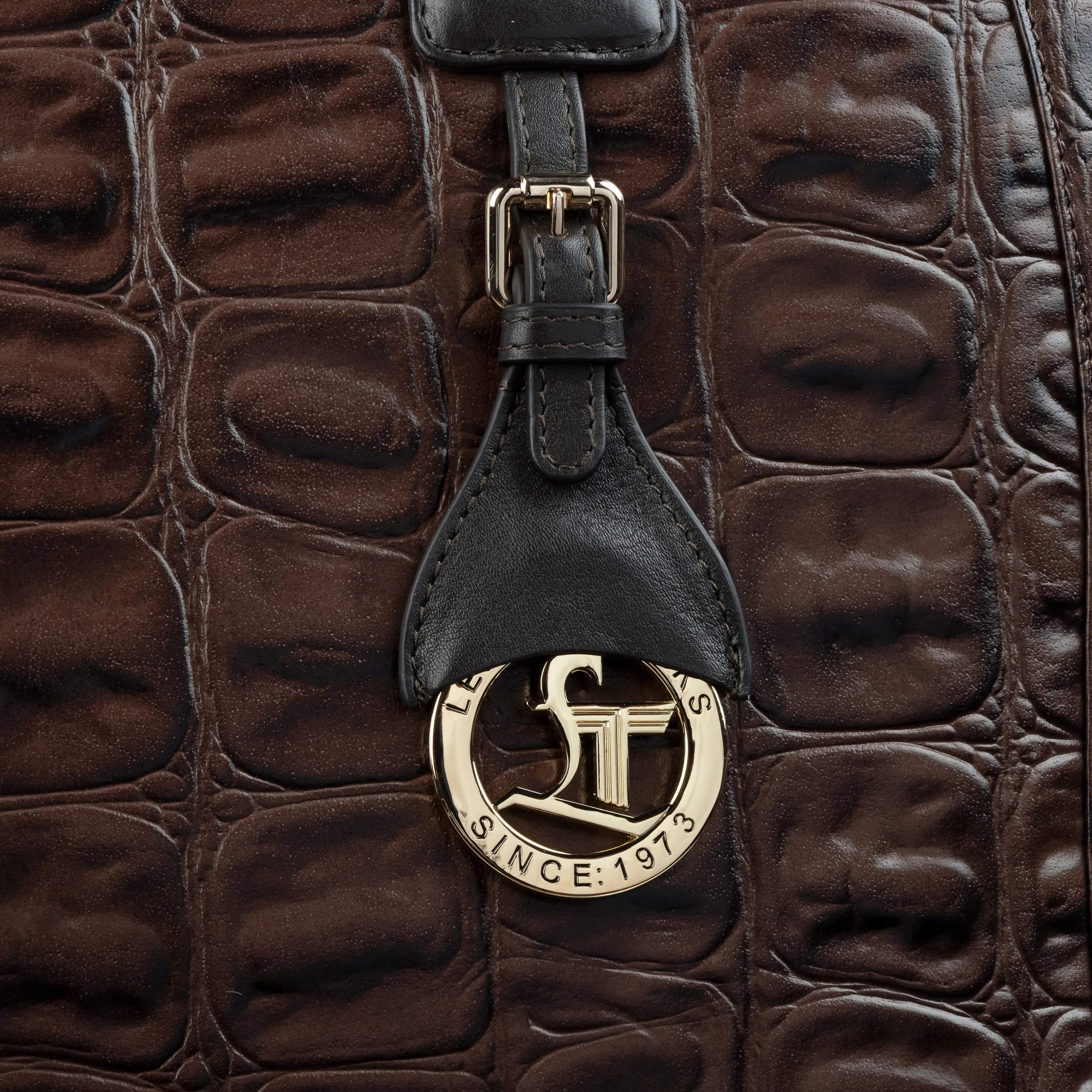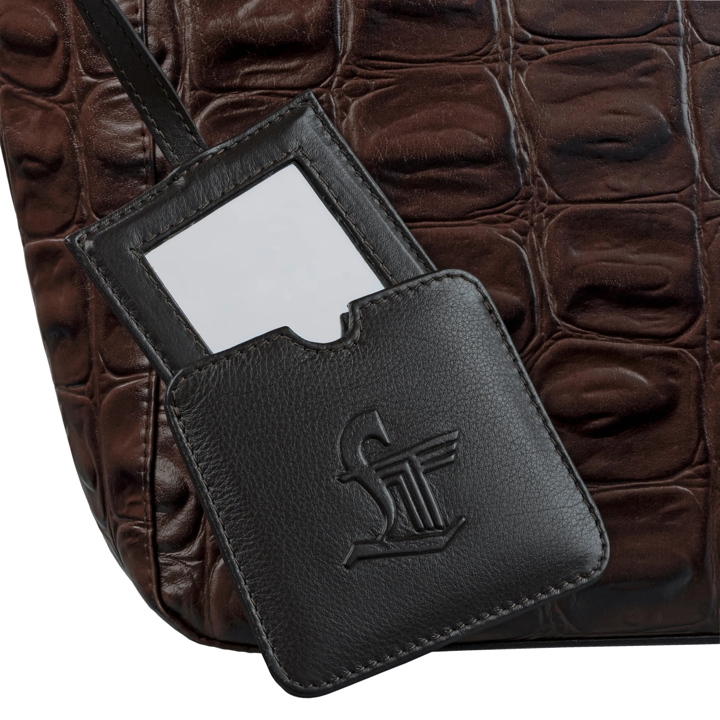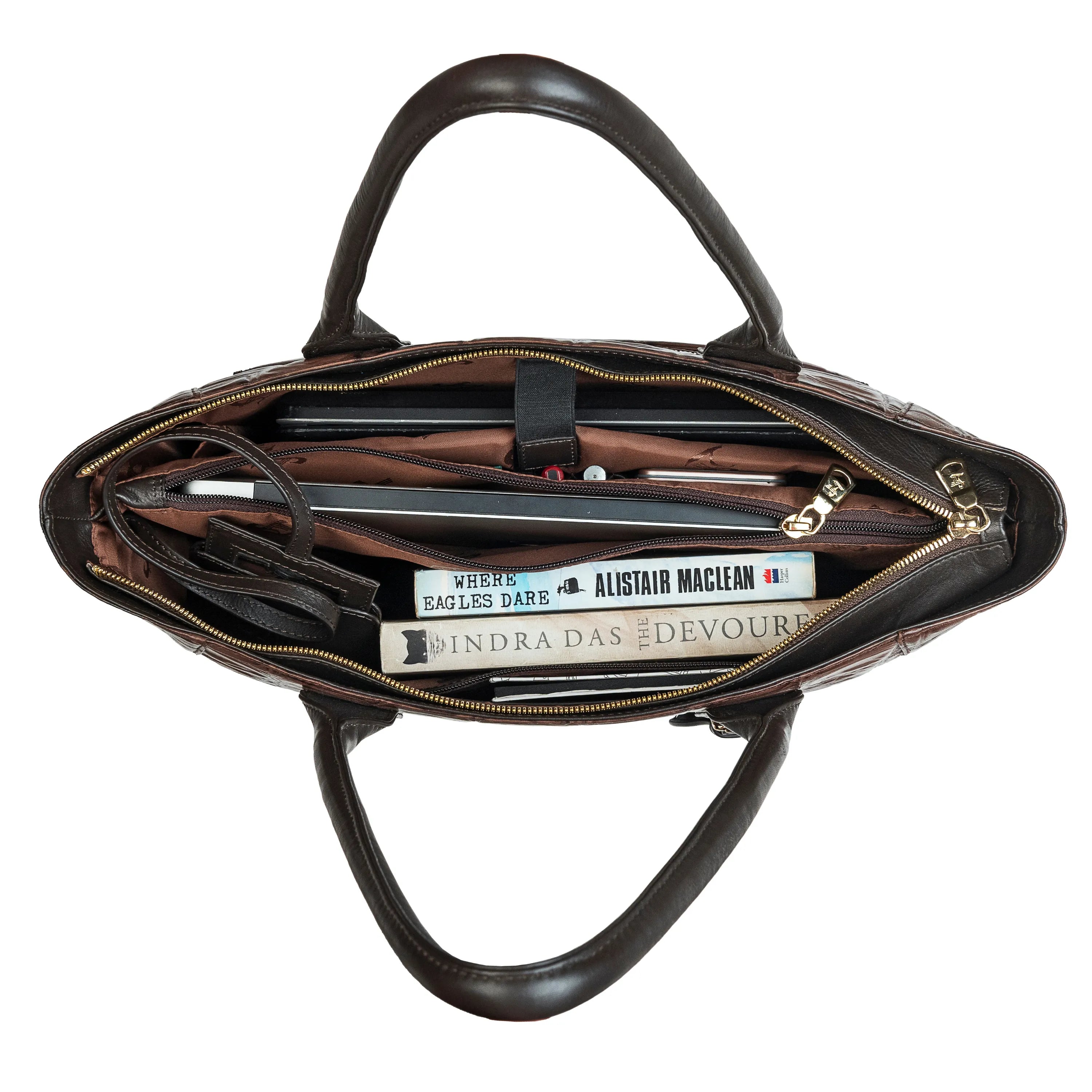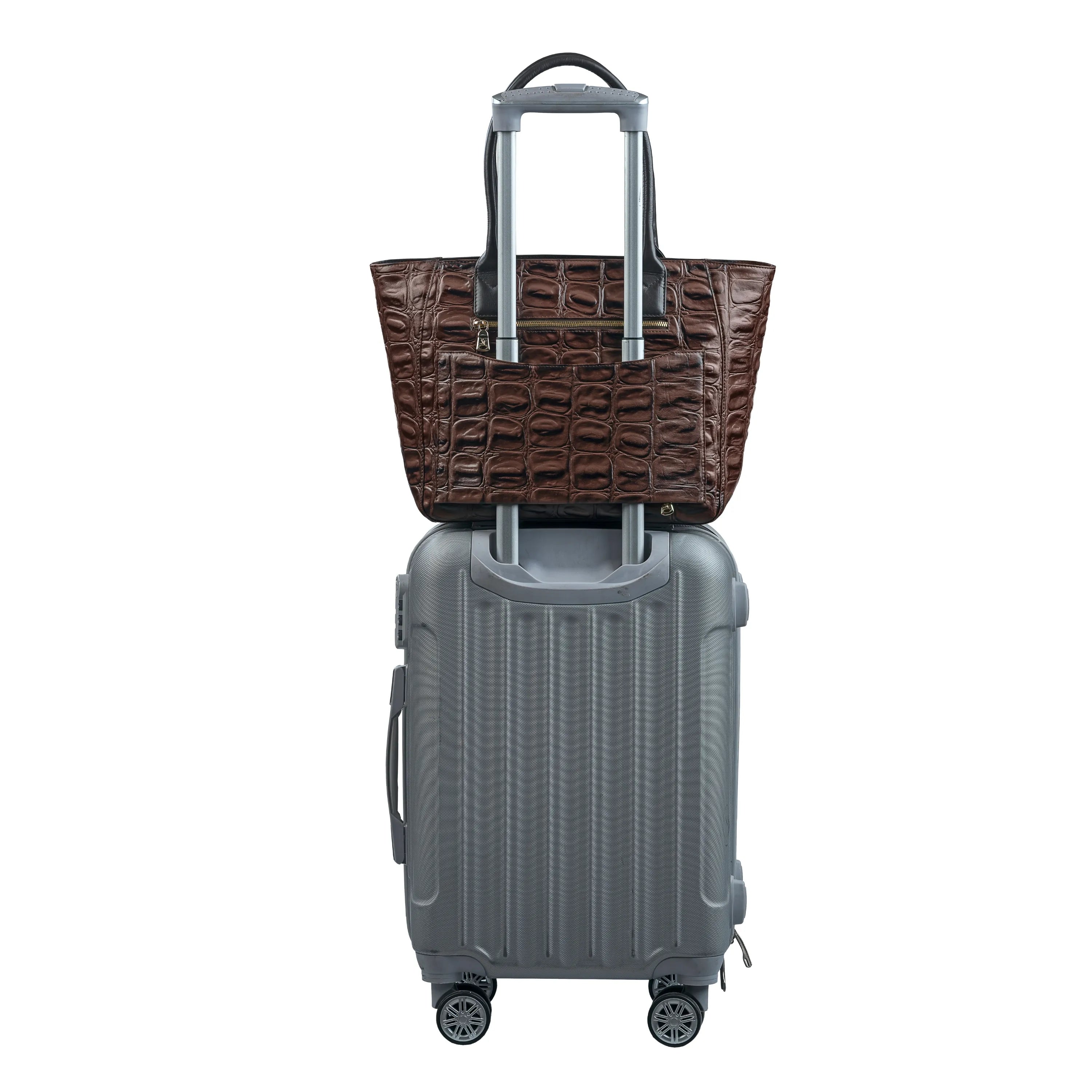 Elvis Tote | Leather Tote Bag for Women | Croco Embossed Genuine Leather Shoulder Bag with Trolley Strap | Color: Brown