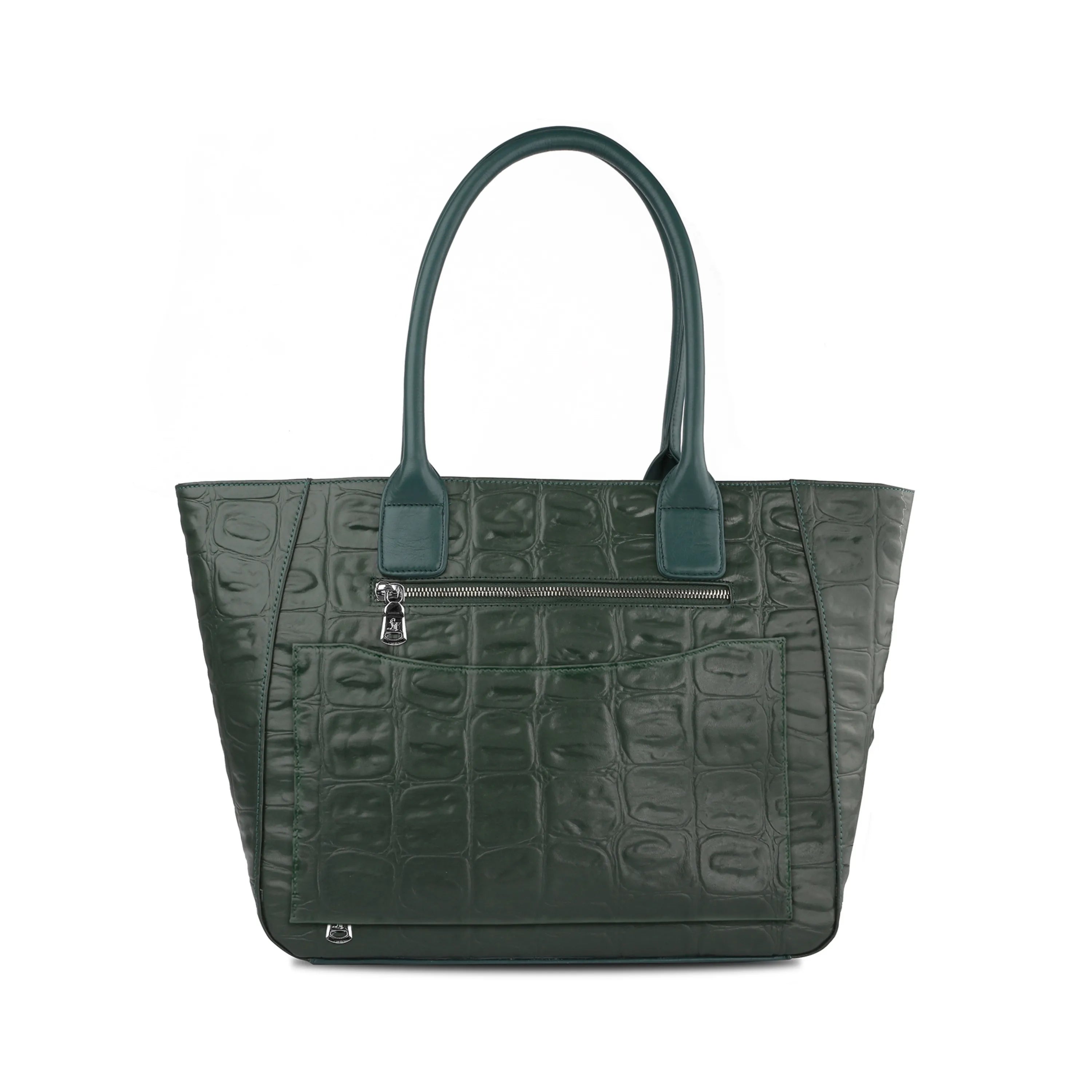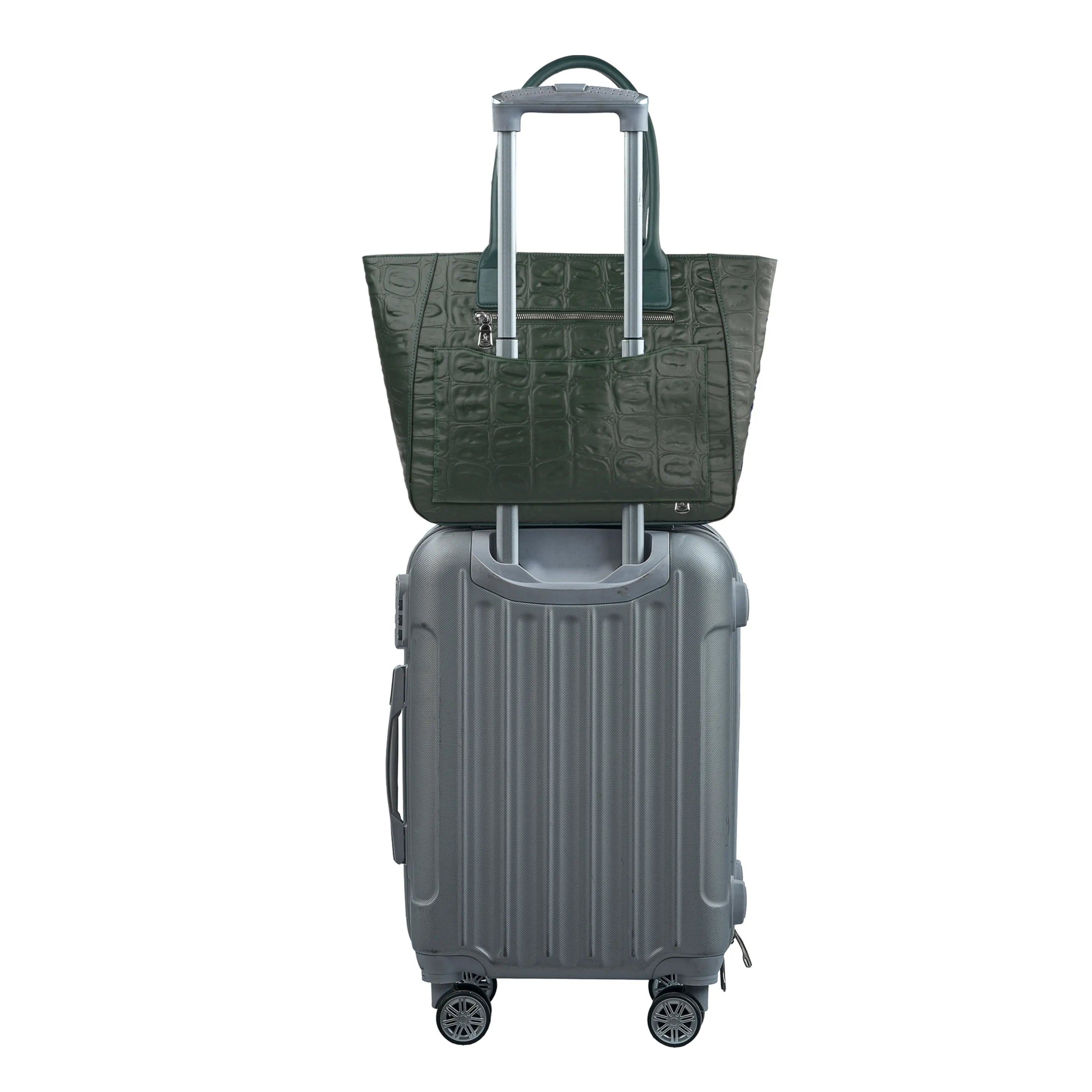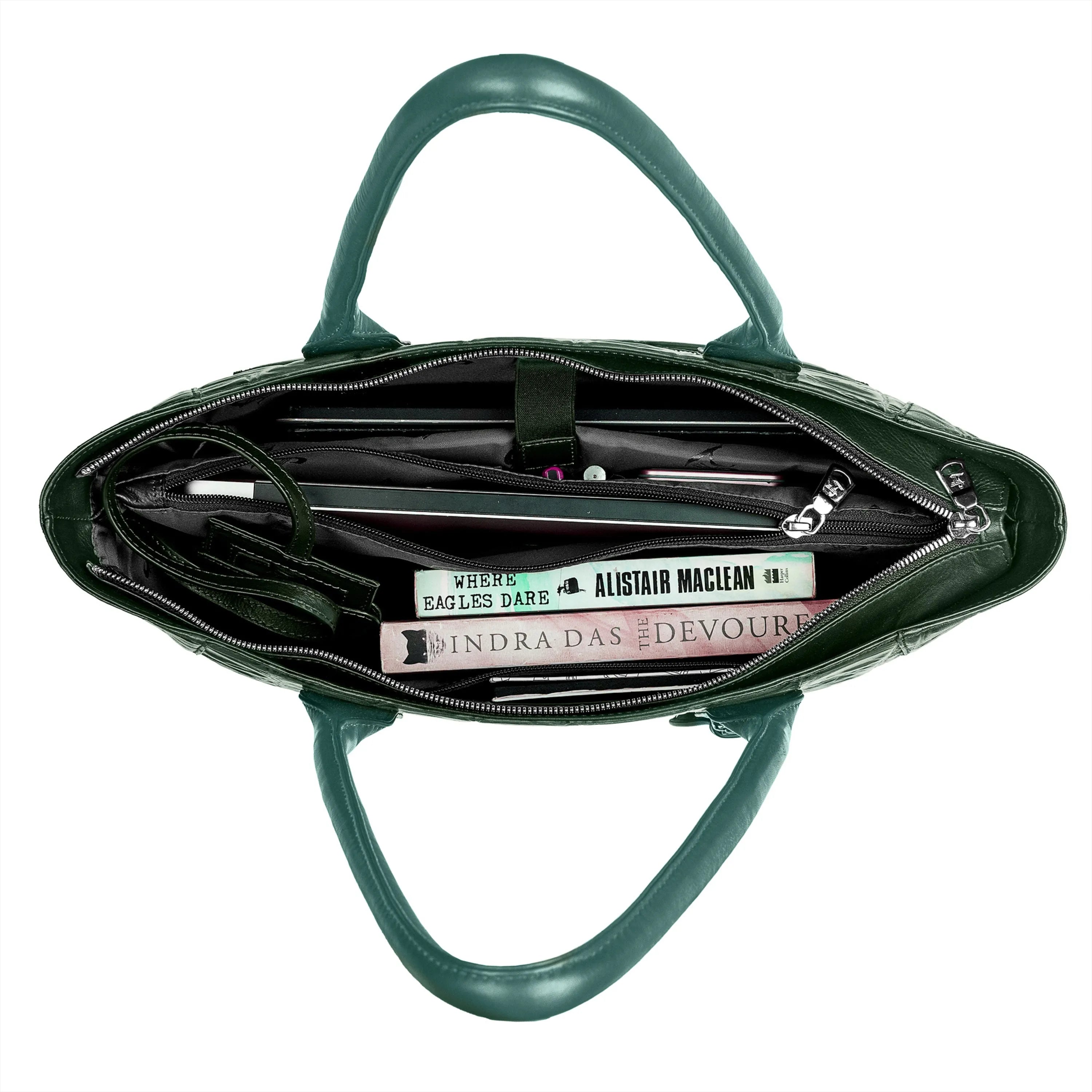 Elvis Tote | Leather Tote Bag For Women | Croco Embossed Genuine Leather | Shoulder Bag | With Trolley Strap | Color: Green