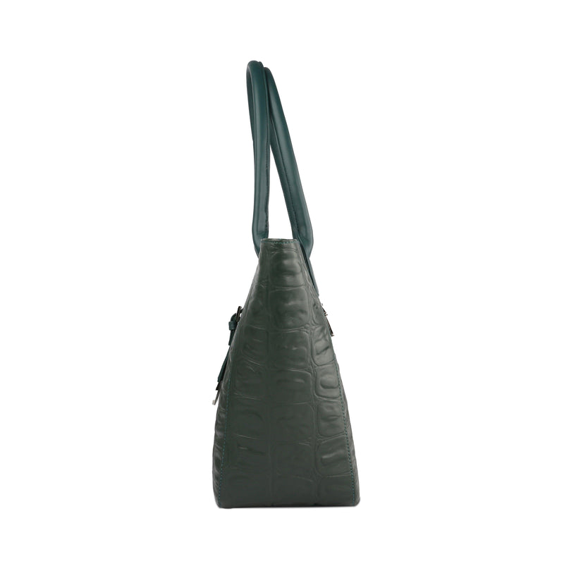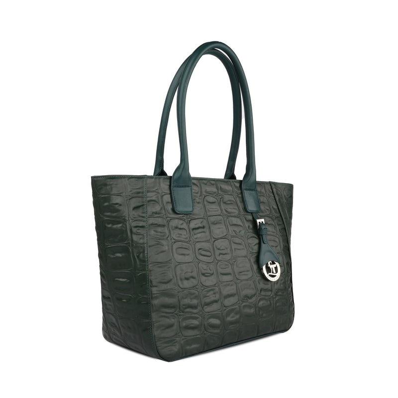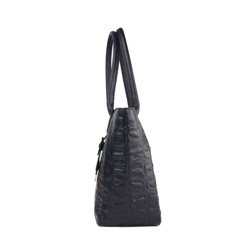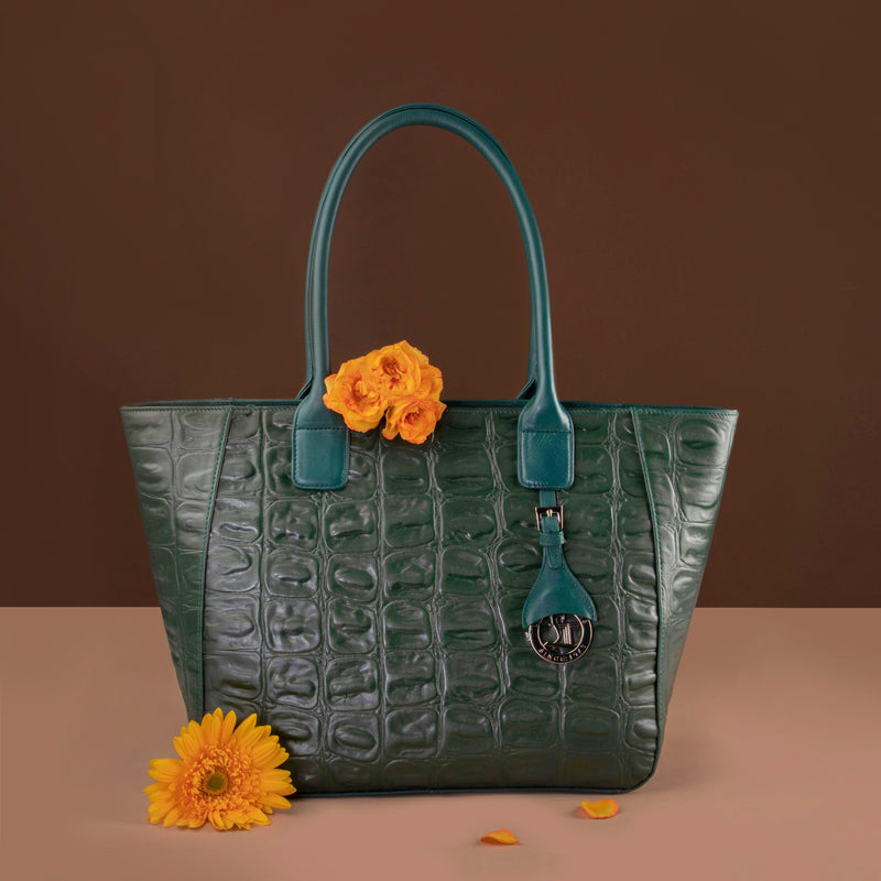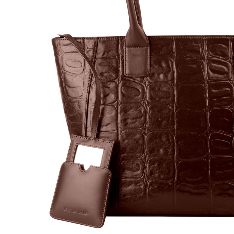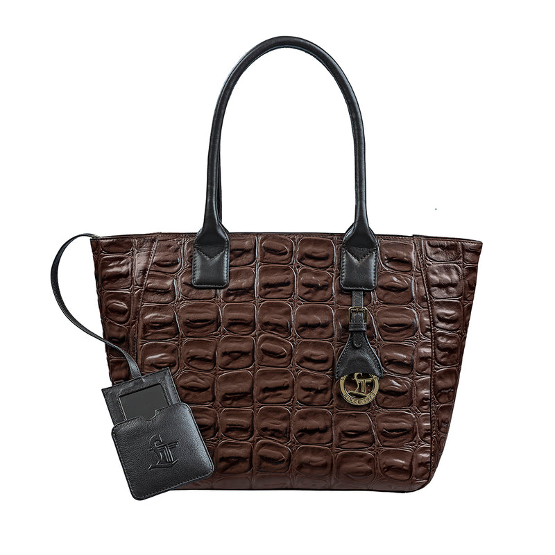 Elvis Tote | Leather Tote Bag for Women | Croco Embossed Genuine Leather Shoulder Bag with Trolley Strap | Color: Brown
