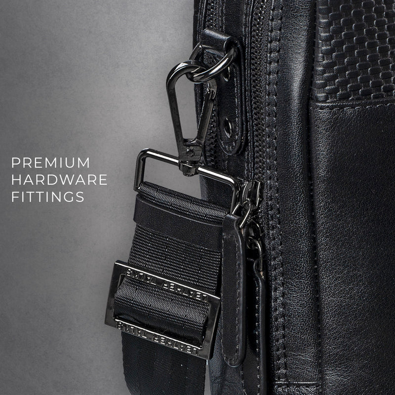 Fortune Series Double Zipper Leather Portfolio Bag for Men | Genuine Leather Laptop Bag | Color: Black