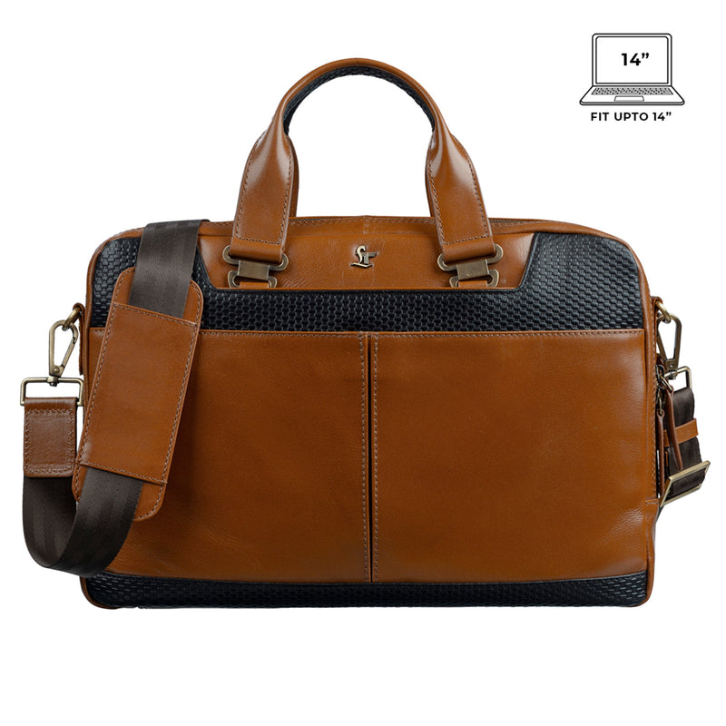 Fortune Series Double Zipper Leather Portfolio Bag for Men | Genuine Leather Laptop Bag | Color: Tan