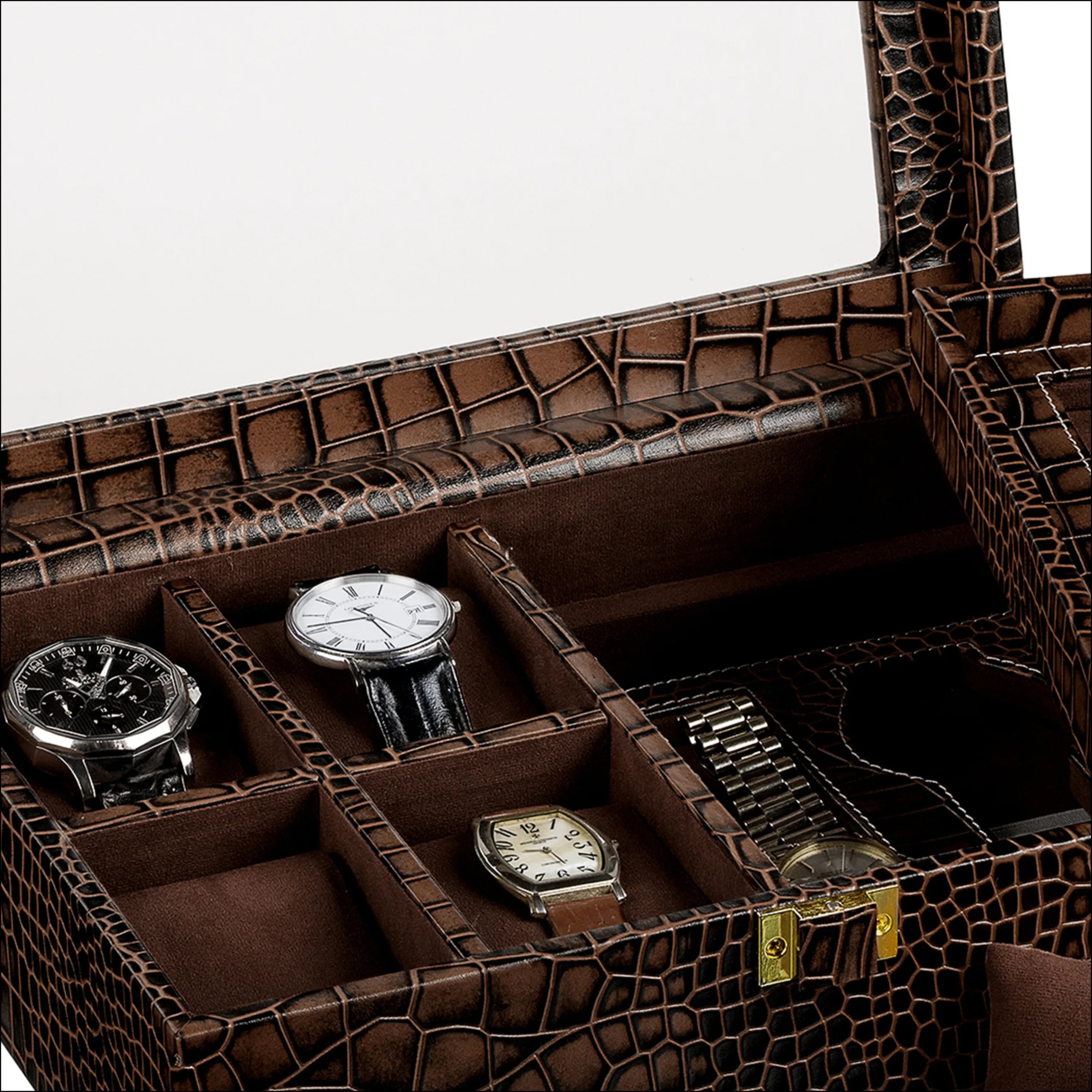 Galio Premium Watch Box 8 Watches | Genuine Leather Watch Storage Case for Men | Color: Croco Brown