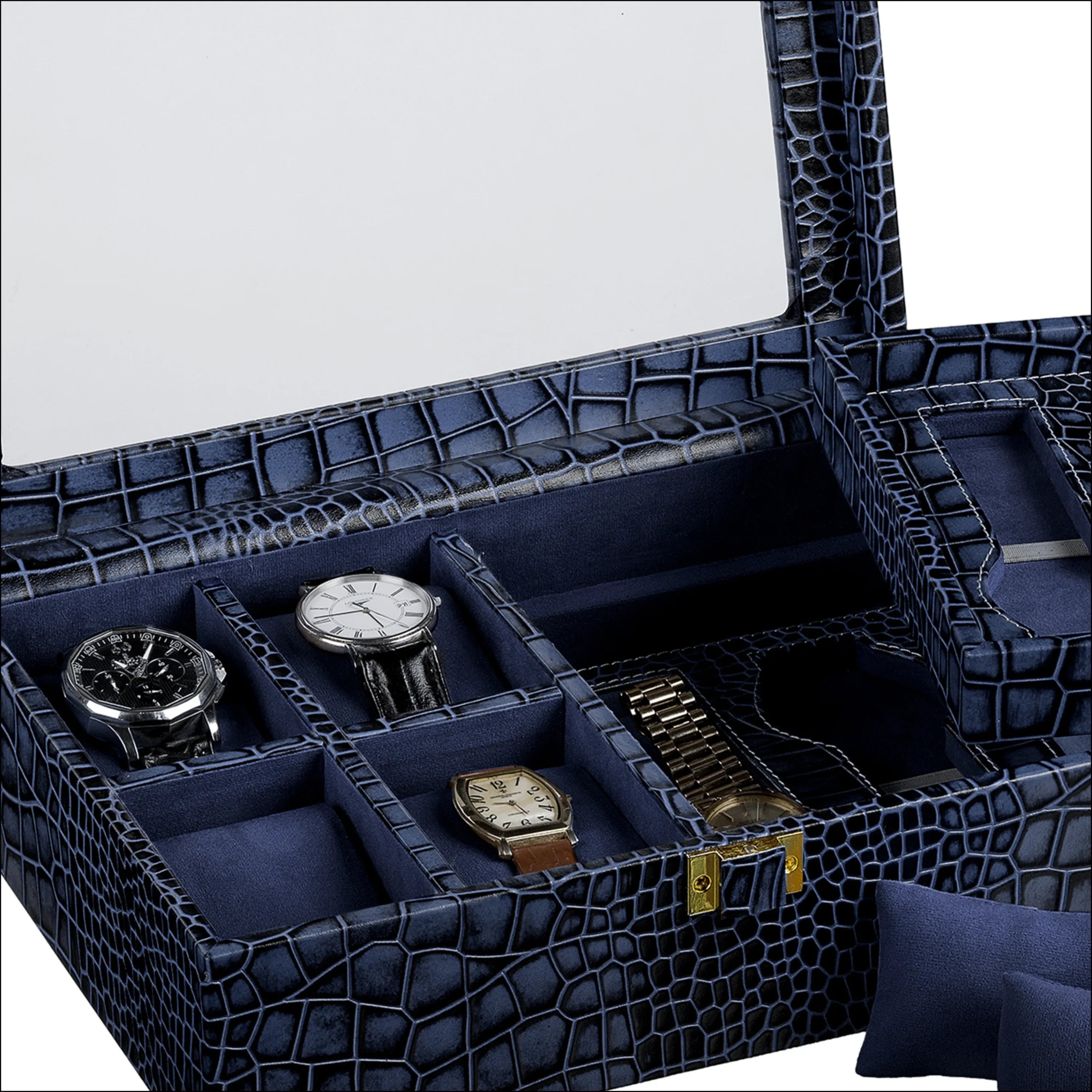 Galio Premium Watch Box 8 Watches | Genuine Leather Watch Storage Case for Men | Color: Croco Blue