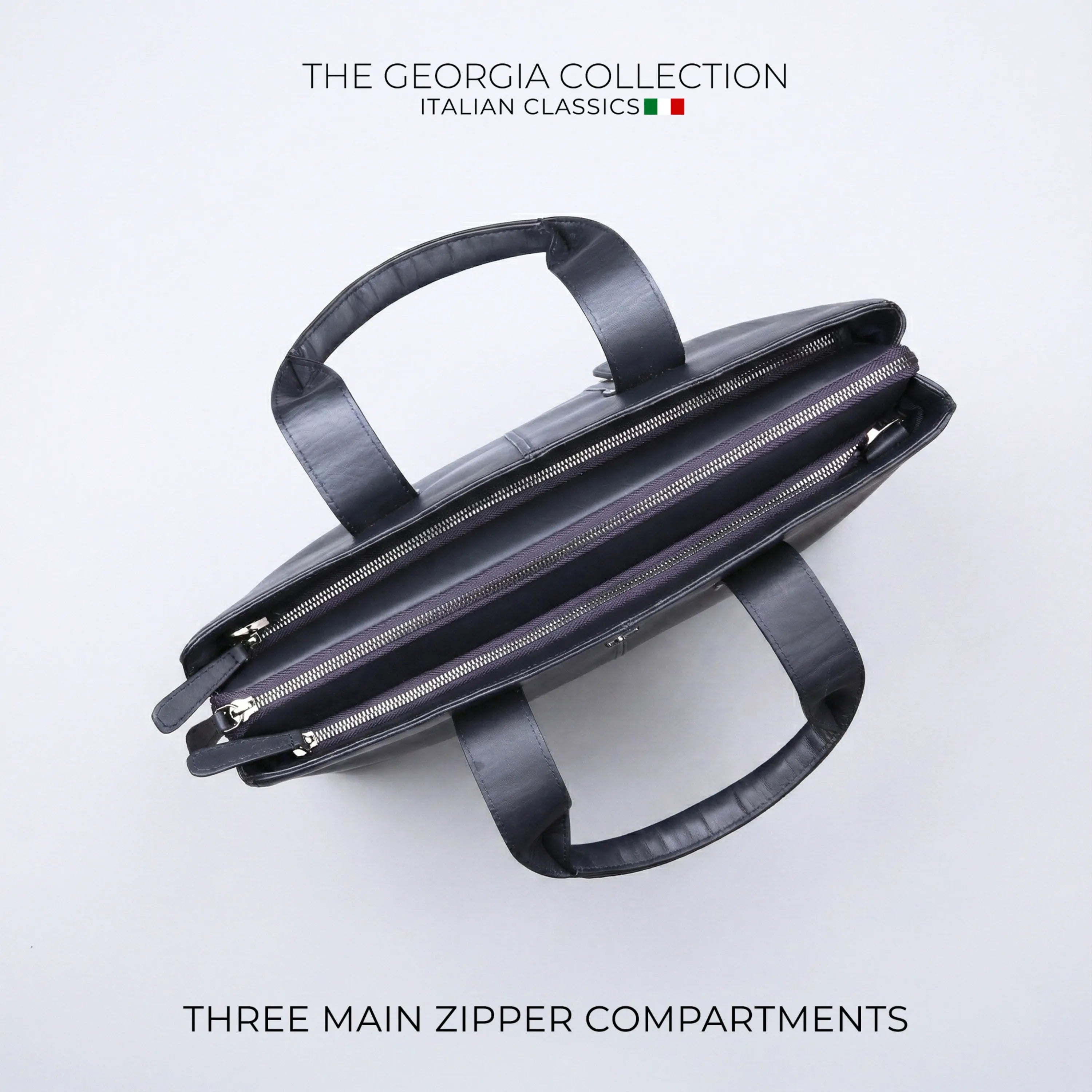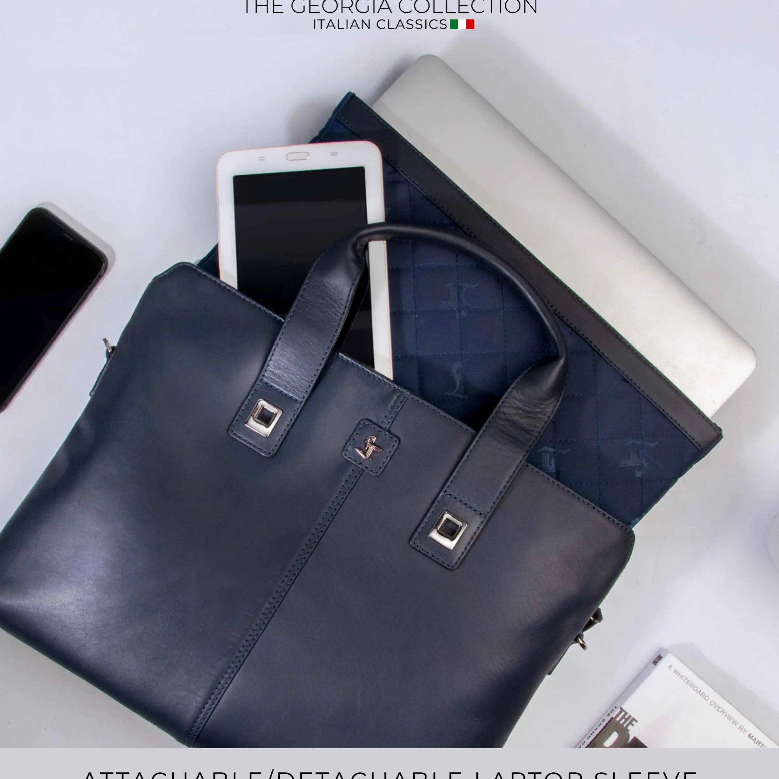 The Georgia Collection-Italian Classics is a Luxury Leather Laptop bag that combines timeless sophistication with modern functionality. It is handcrafted to be elegant and practical, catering to professional needs while making a style statement. Made from the finest quality Italian Leather, this bag is both opulent and durable. It goes beyond mere functionality, seamlessly blending luxury and utility to elevate your work ensemble.