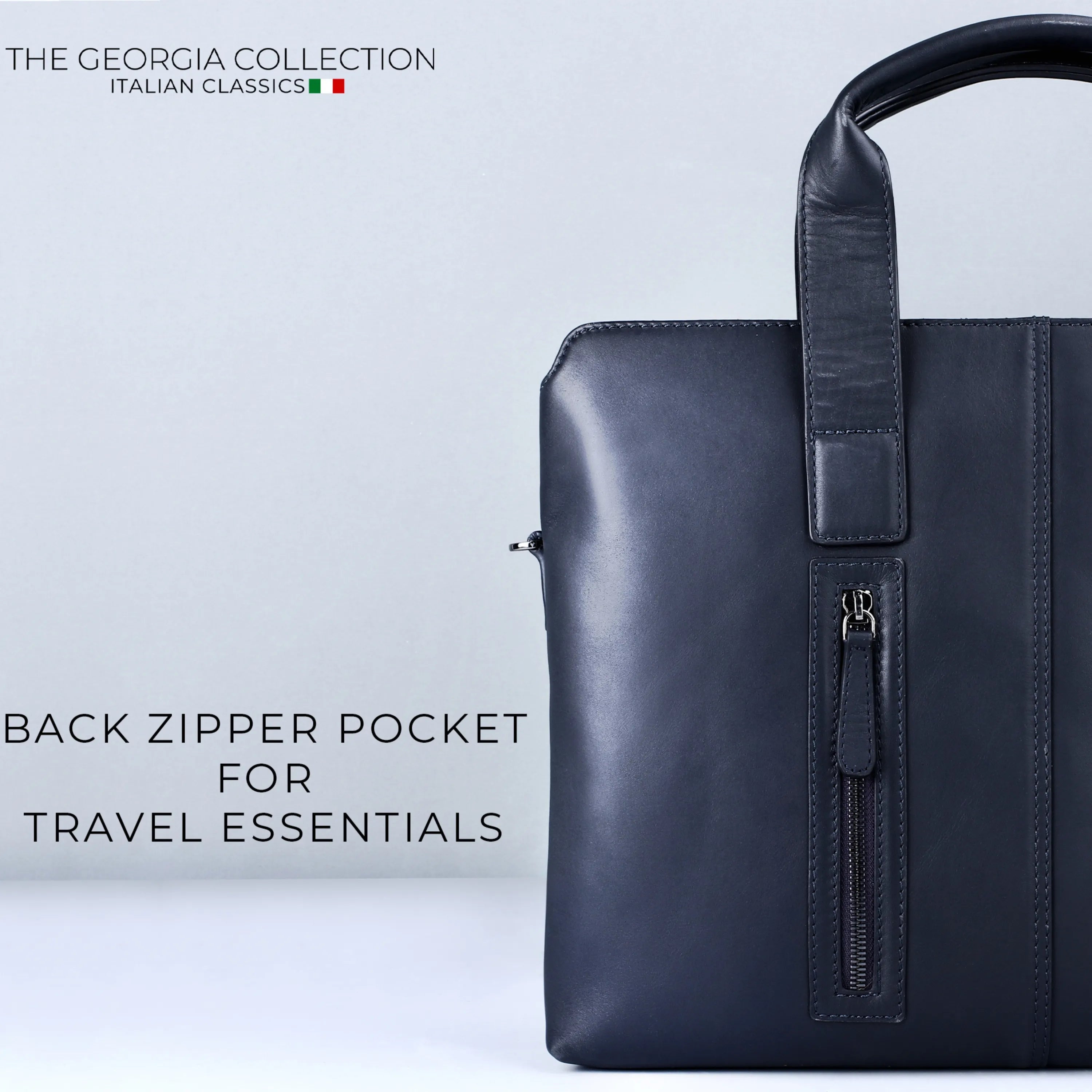 Georgia Collection | Genuine Leather Laptop / Folio Bag For Men | Office Bag | Color: Navy Blue