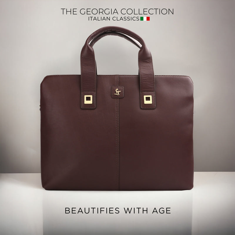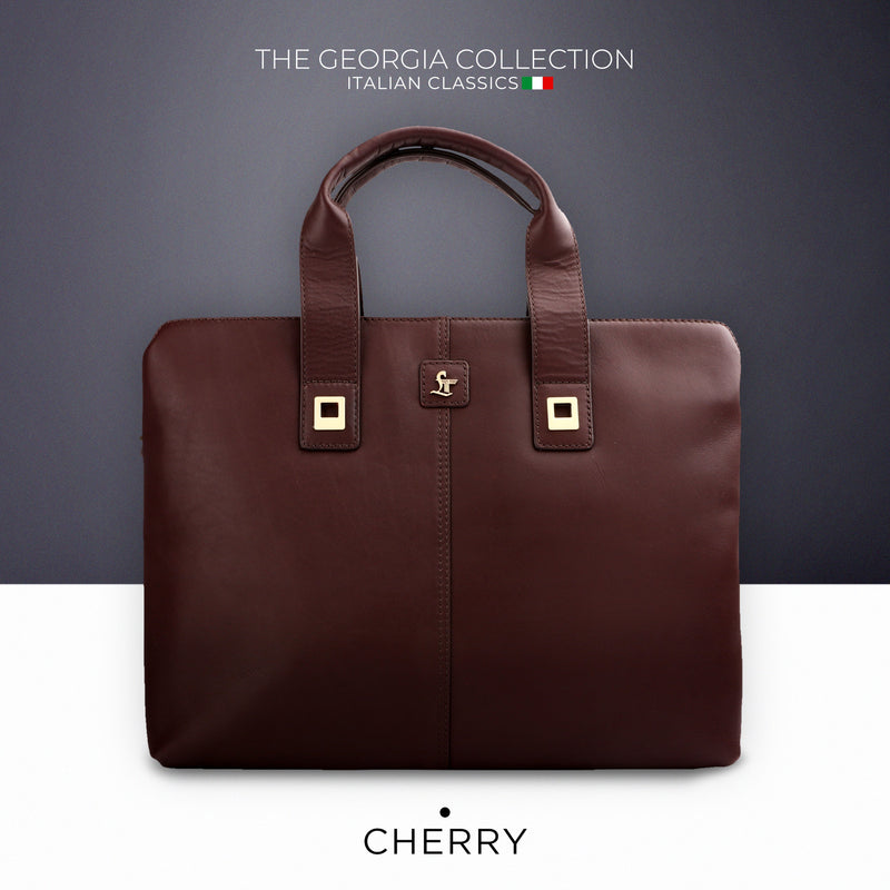 Georgia Collection Leather Laptop Bag for Women | 100% Genuine Leather | Cherry | Fits 15.5" laptops