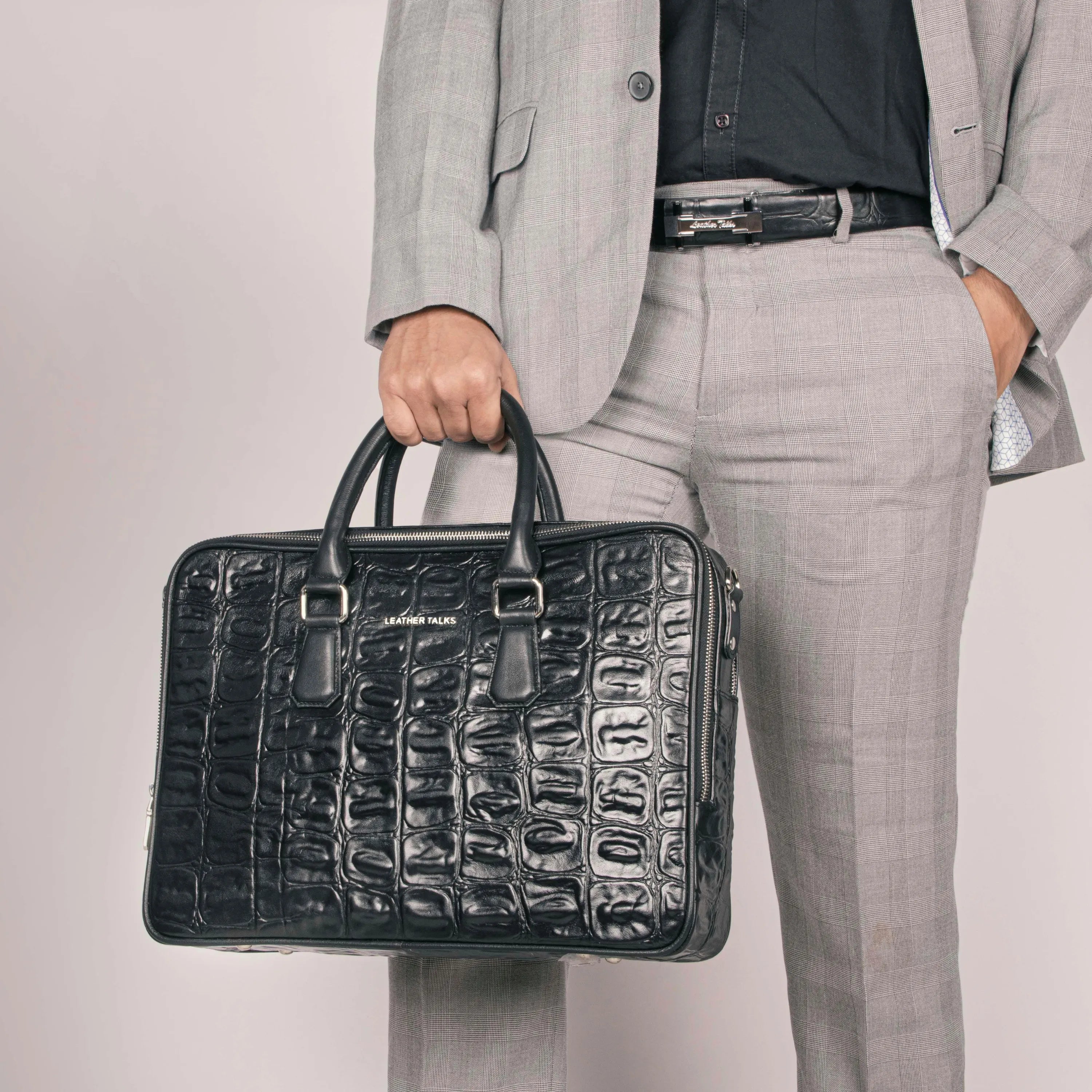 The Great Dane Leather Laptop Bag for Men from Leather Talks—an epitome of luxury and functionality. Crafted from the highest quality genuine leather, this premium laptop/folio bag combines elegance with practicality. Featuring a distinctive handcrafted Croco tail print, it’s designed to be both durable and lightweight.