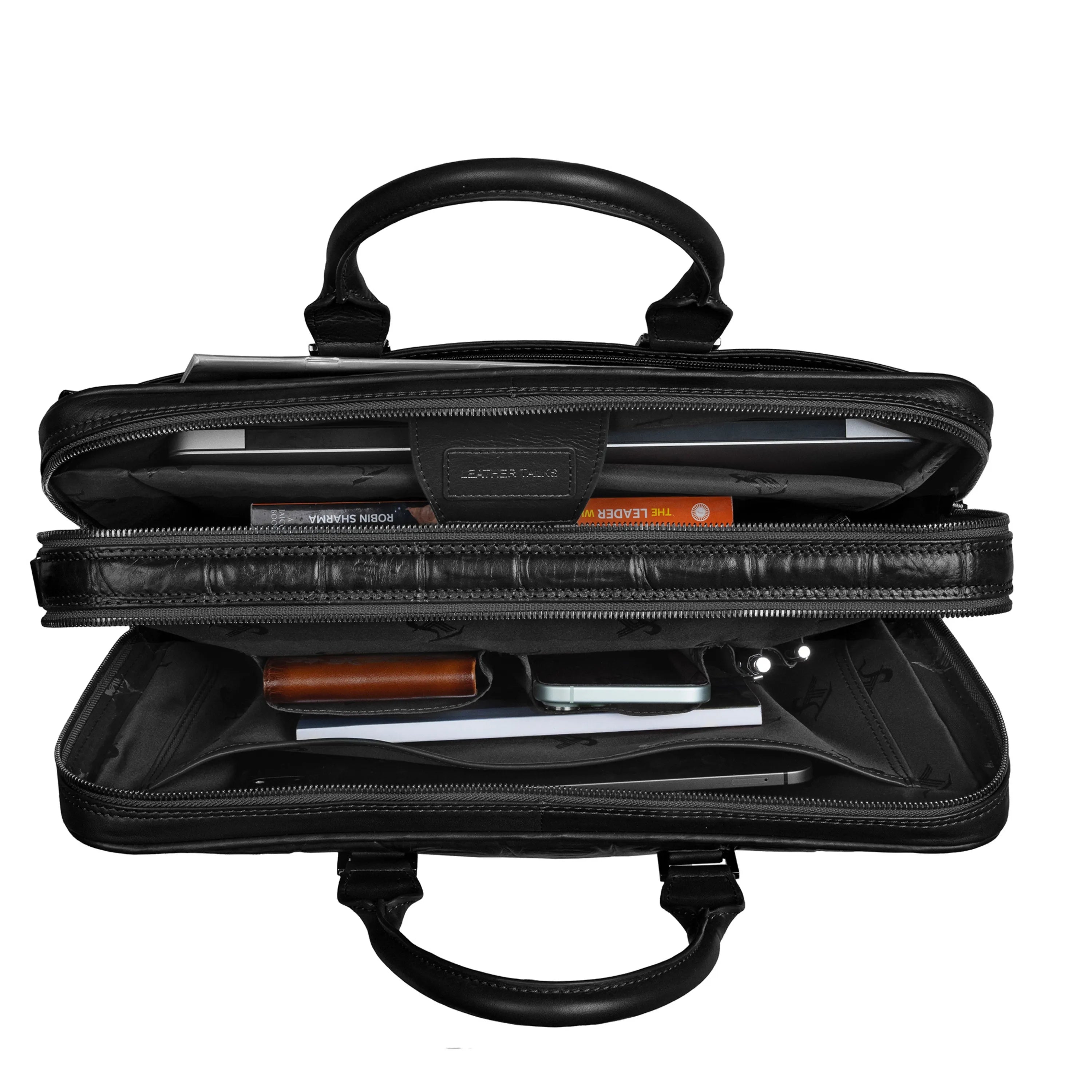 Great Dane | Premium Genuine Leather Laptop Bag for Office | Luxury Folio Work Bag for Men | Color: Black
