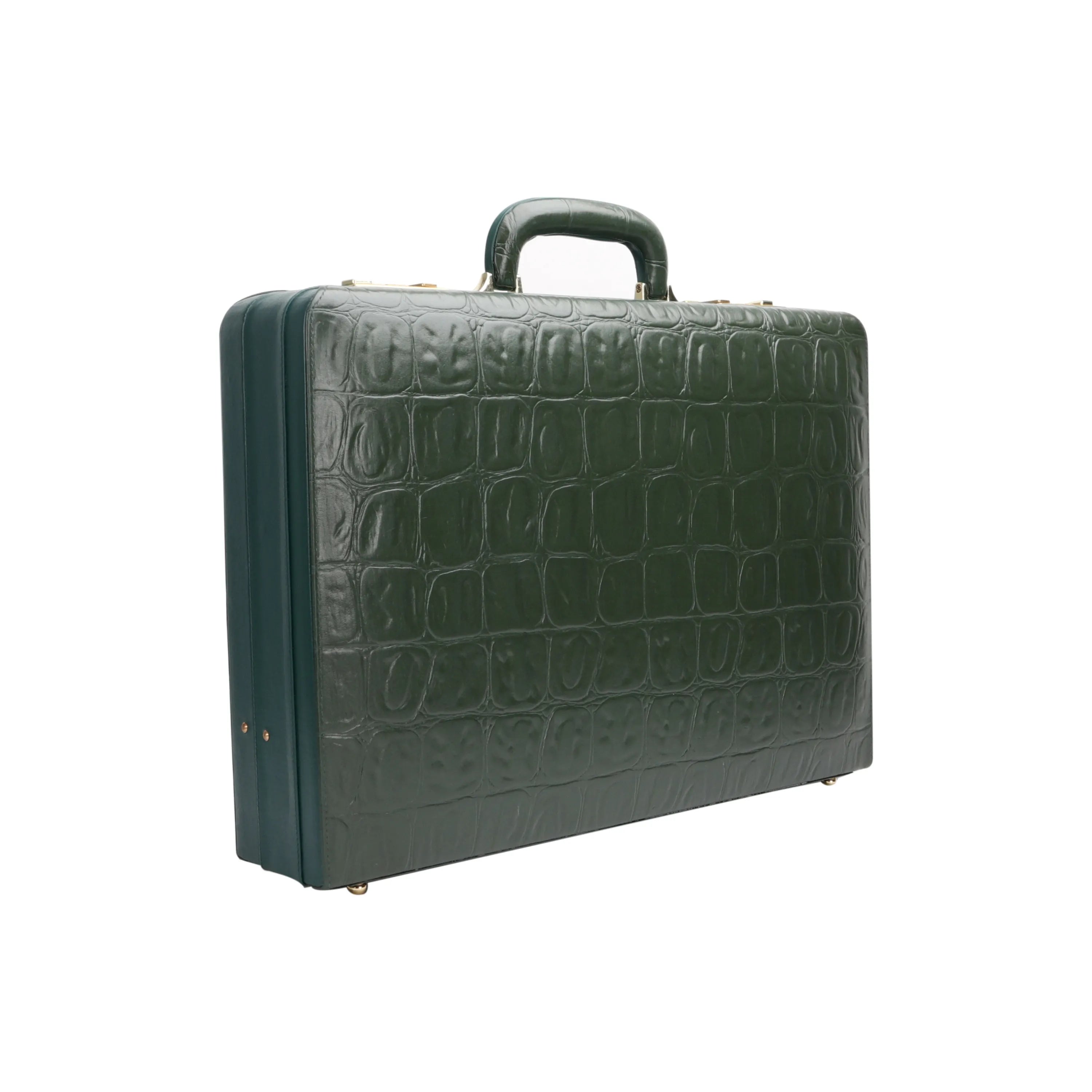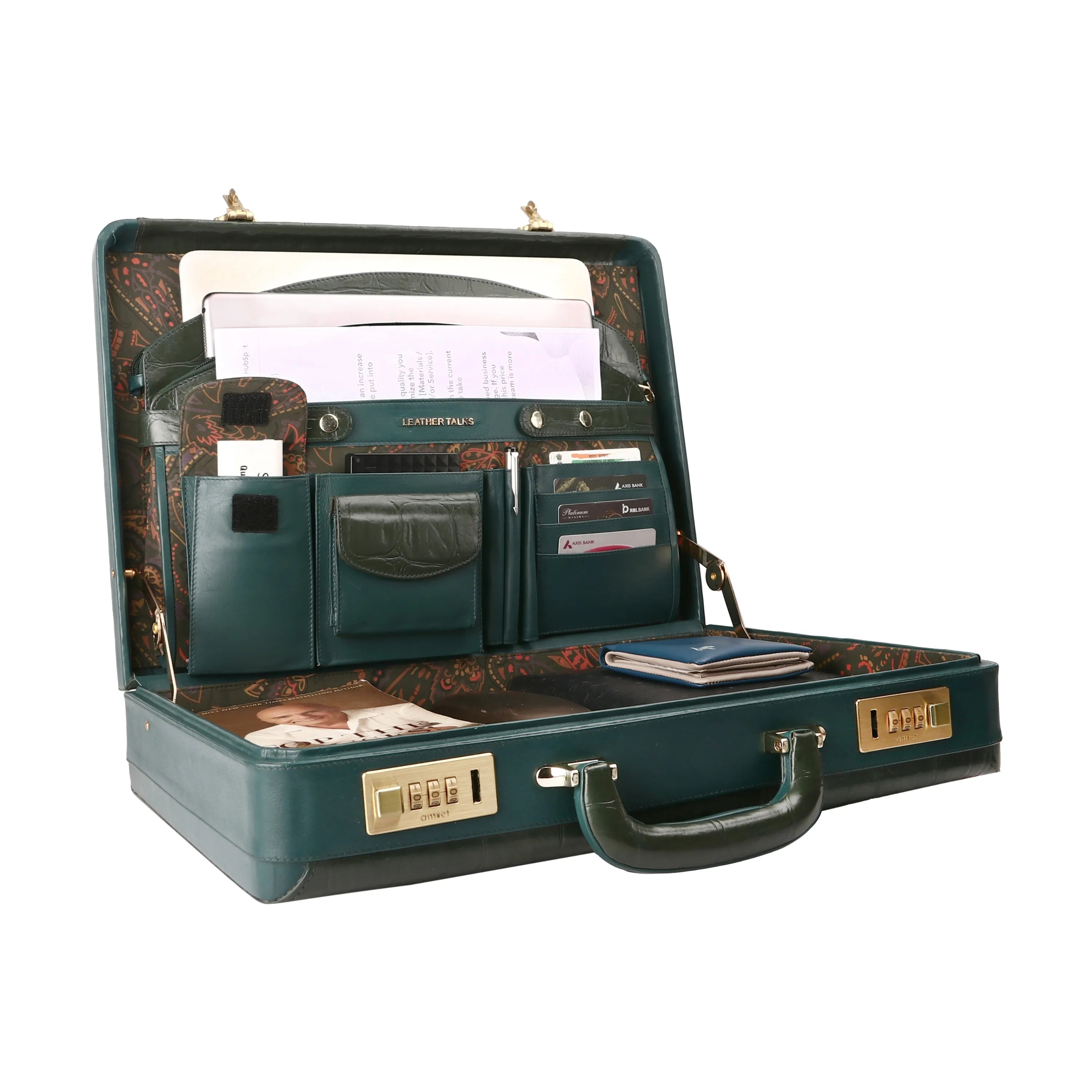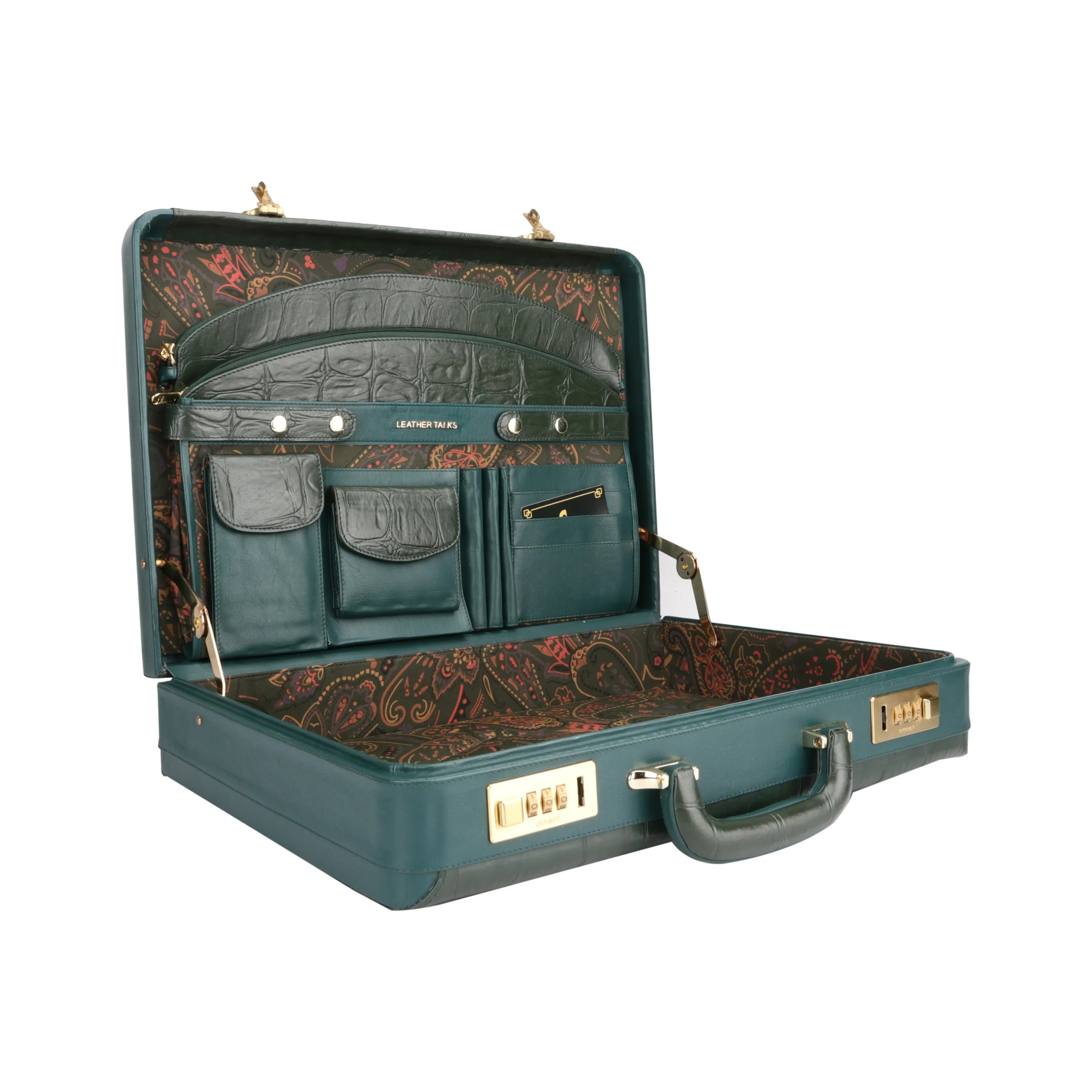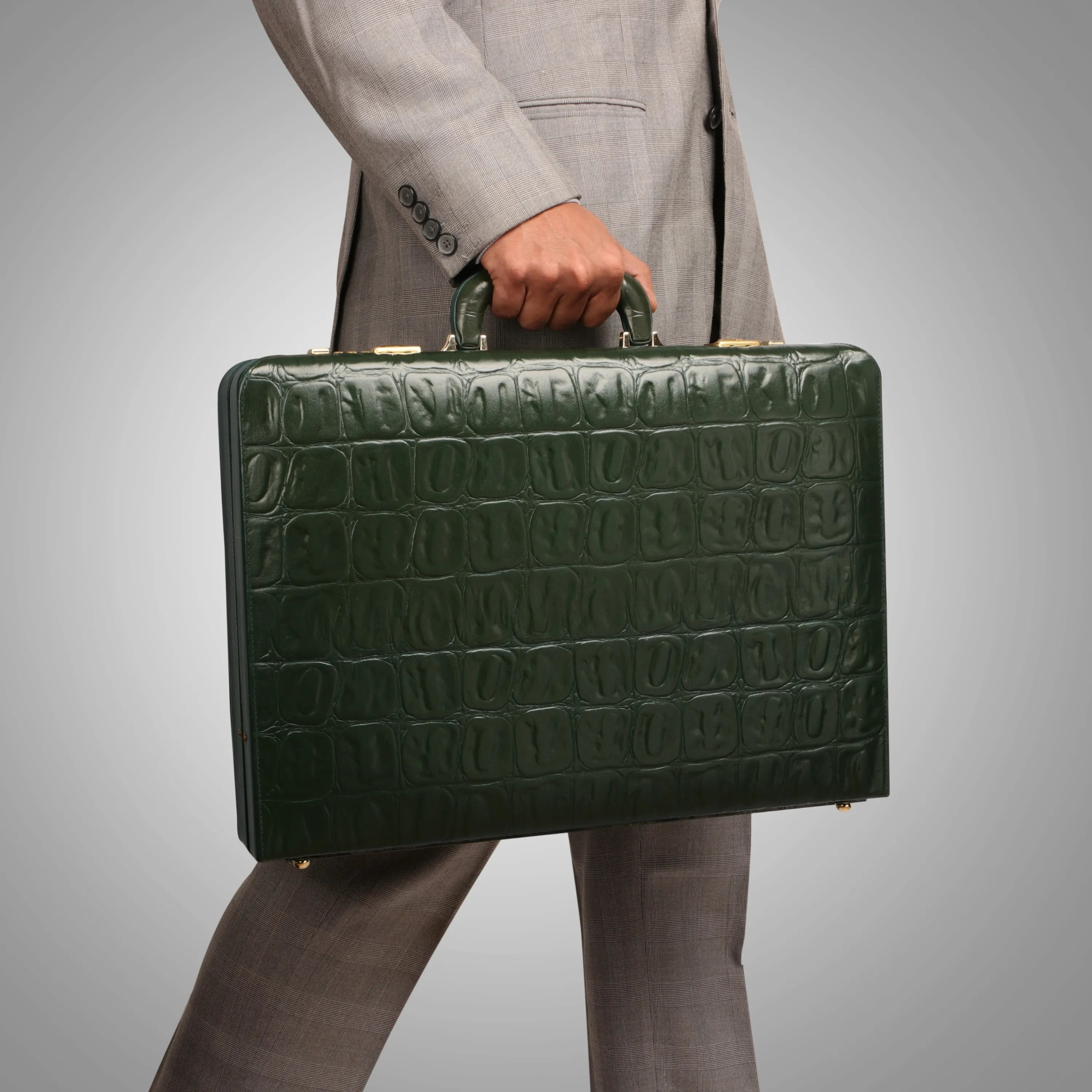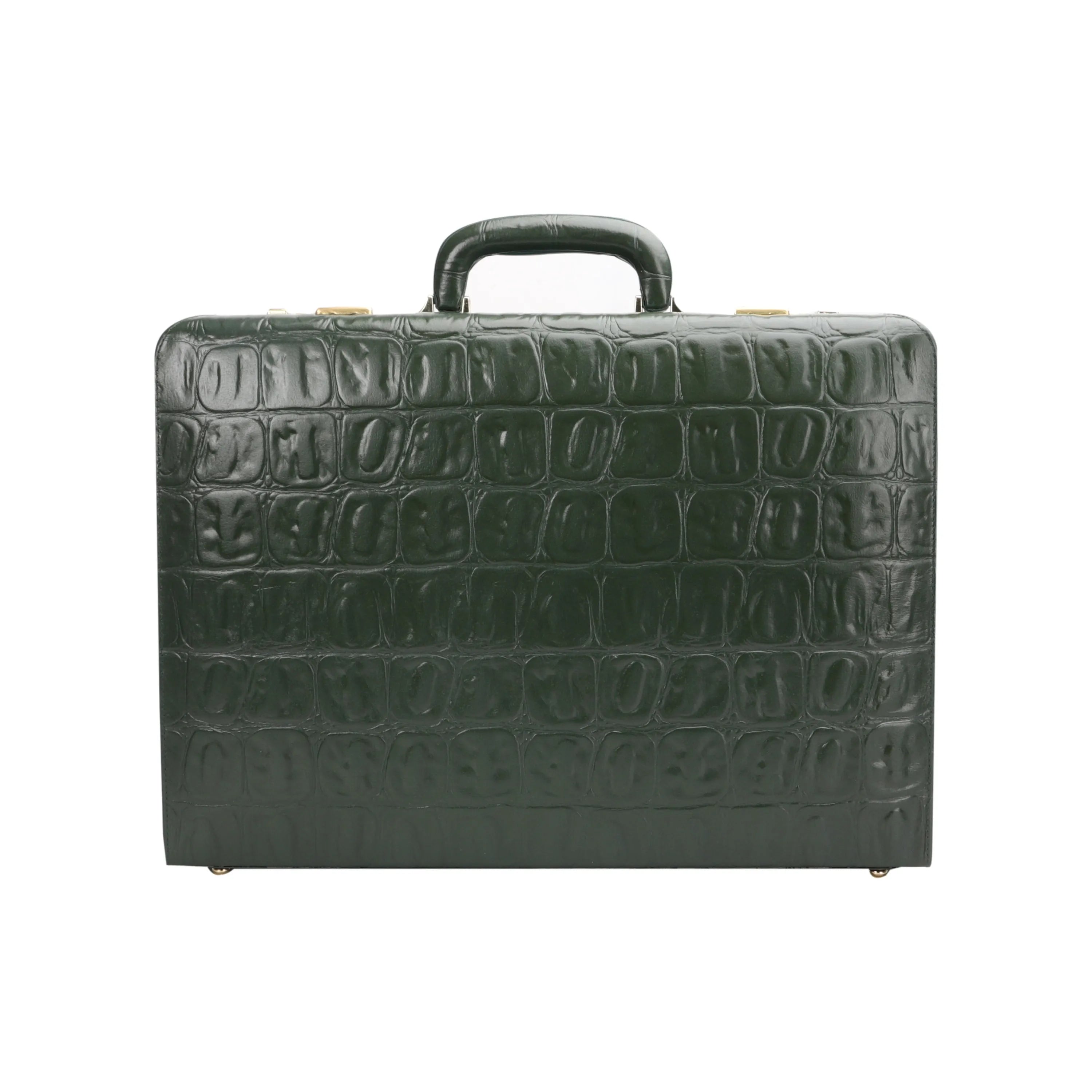 Great Dane Ruvido Double Lock Genuine Leather Attaché | Briefcase for Advocates | Lawyer Briefcase | Security Briefcase | Color: Green